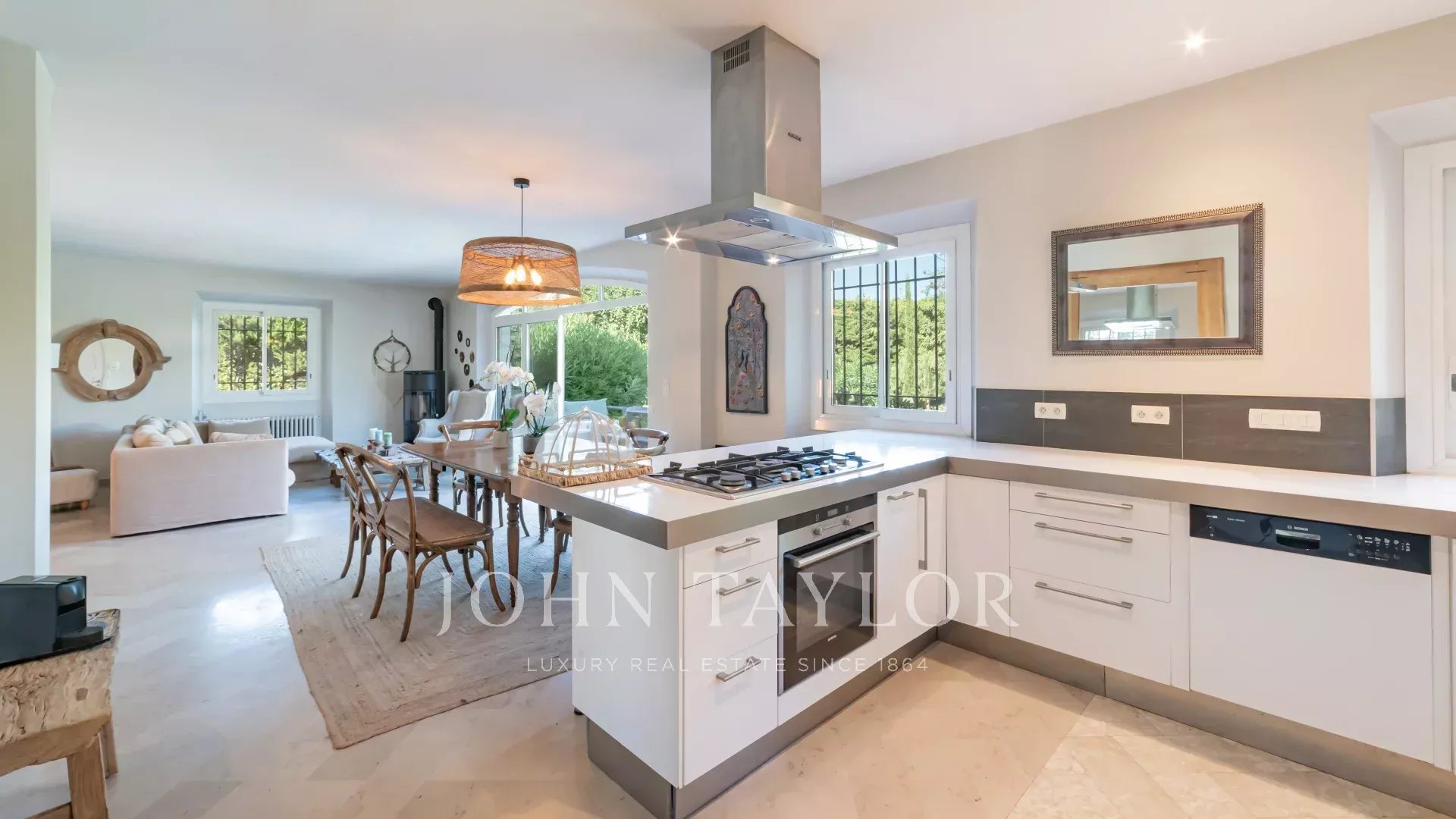En el barrio residencial de l'Étang, esta elegante villa de piedra franca, diseñada por el célebre arquitecto Gridaine, tiene unos 300 m² y se asienta sobre un terreno de 1.746 m² con piscina.