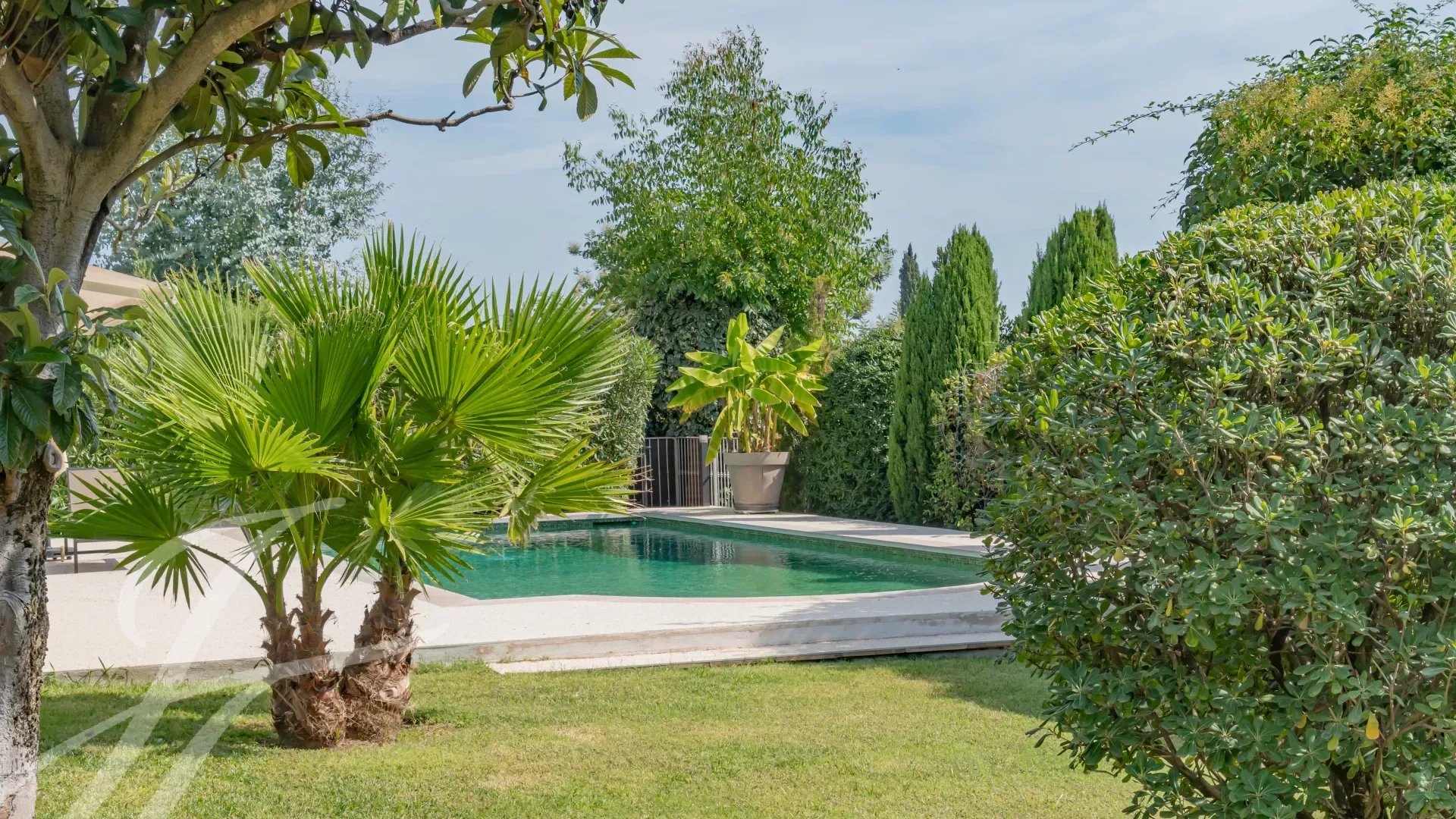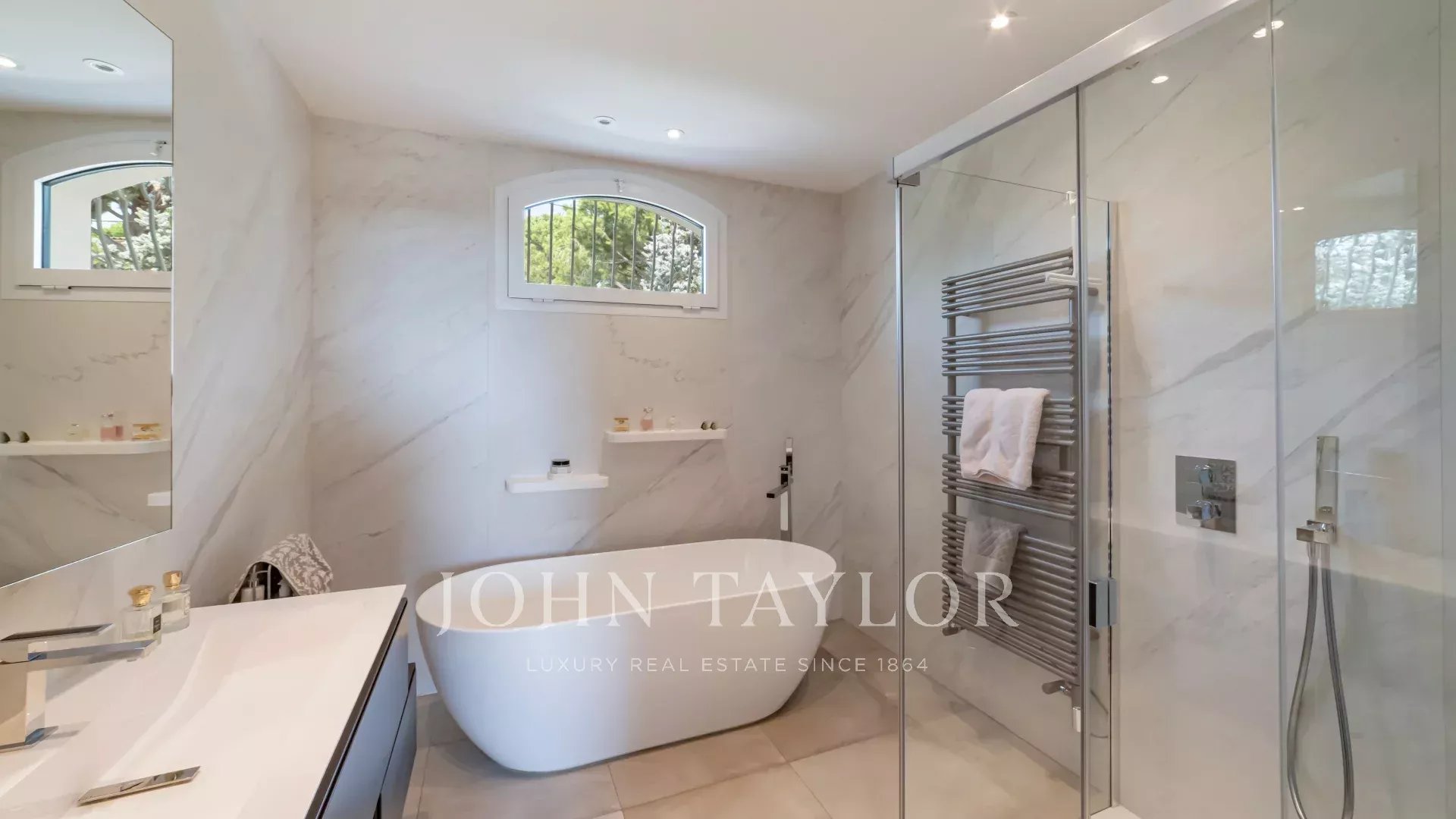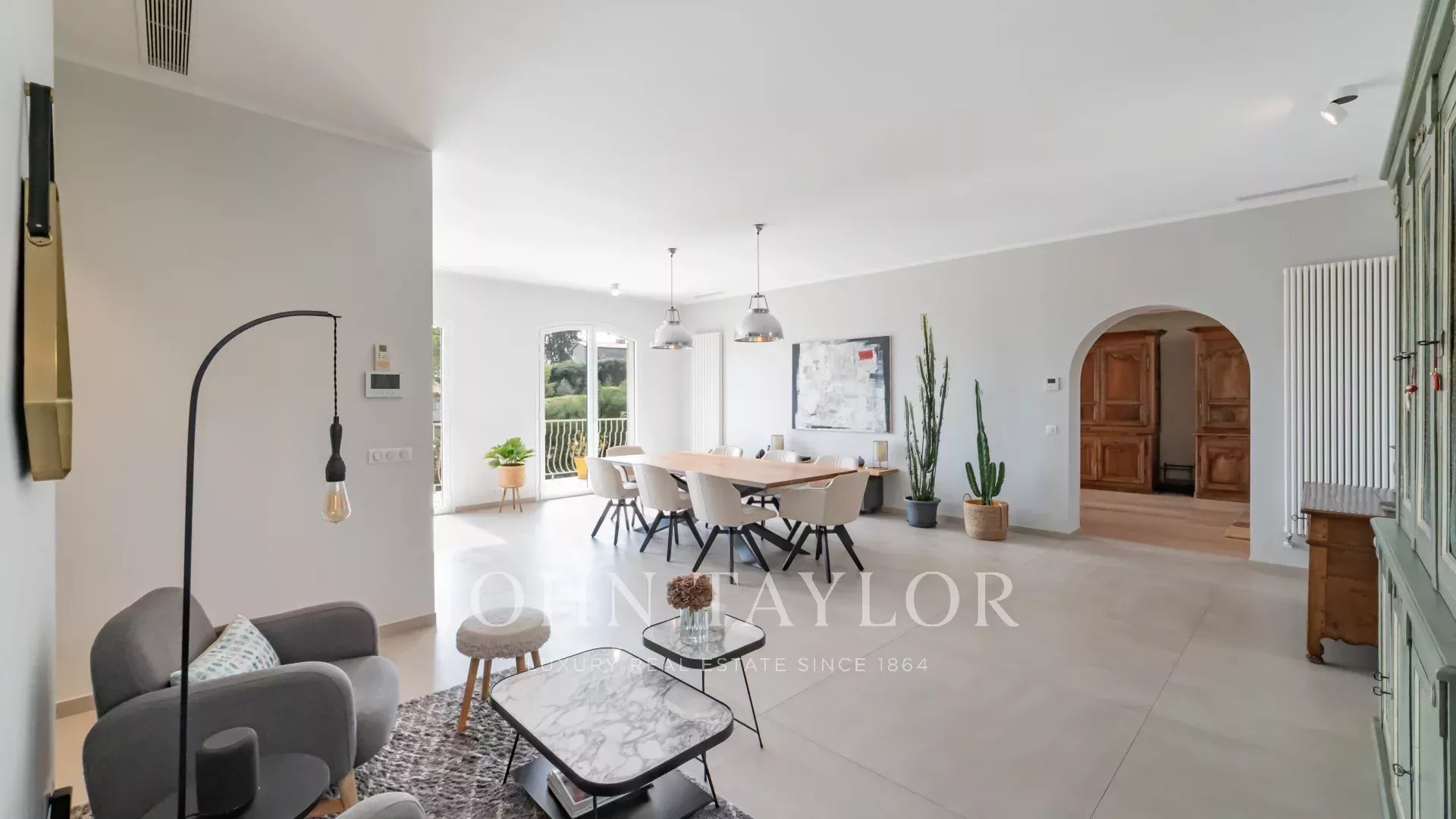 A sólo 5 minutos de Mougins, en una codiciada urbanización de La Roquette-sur-Siagne, esta encantadora villa de 258 m² goza de vistas ininterrumpidas al mar. Completamente renovado a un alto nivel, que ofrece un ambiente de vida tranquilo y refinado. La villa cuenta con cinco amplios dormitorios y cuatro cuartos de baño modernos. El luminoso salón se abre a una amplia terraza que ofrece unas vistas impresionantes. En el exterior, una magnífica piscina acompañada de una casita de piscina de 35 m², una auténtica segunda habitación con cocina de verano, invita a aprovechar al máximo el buen tiempo. Una gran cochera y un amplio espacio que podría utilizarse como gimnasio o despacho independiente completan esta propiedad.