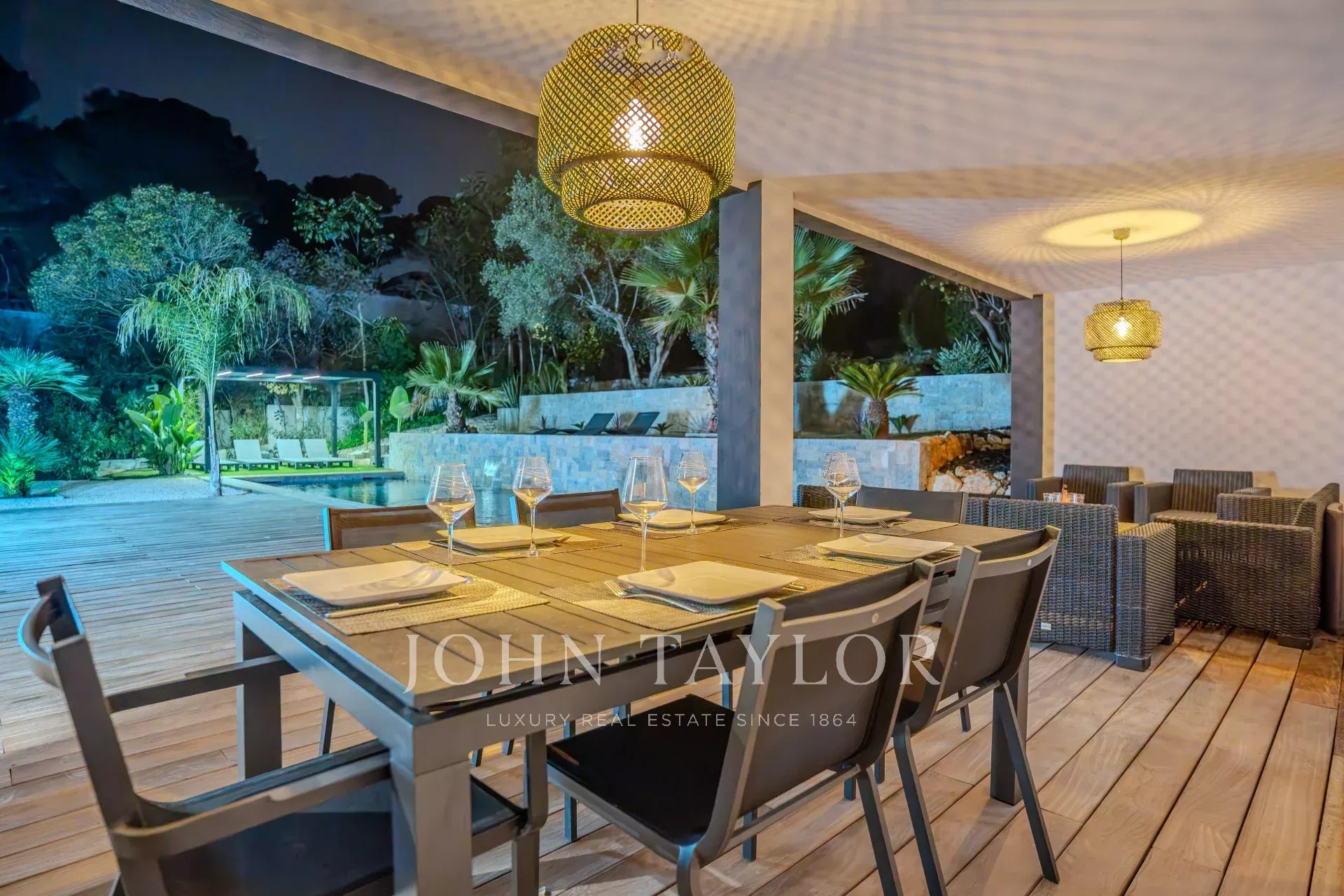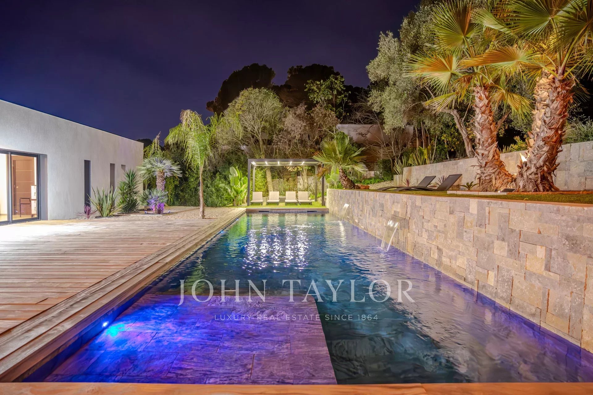 Mandato único: Situada en una urbanización muy solicitada, en posición dominante y en absoluta tranquilidad, esta villa contemporánea se beneficia del máximo soleamiento.