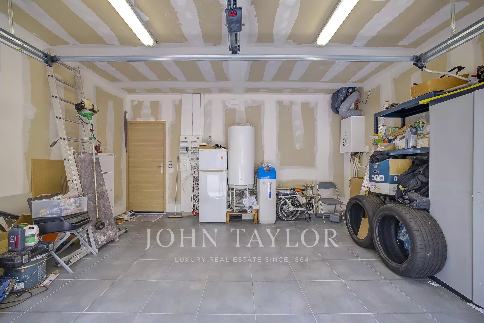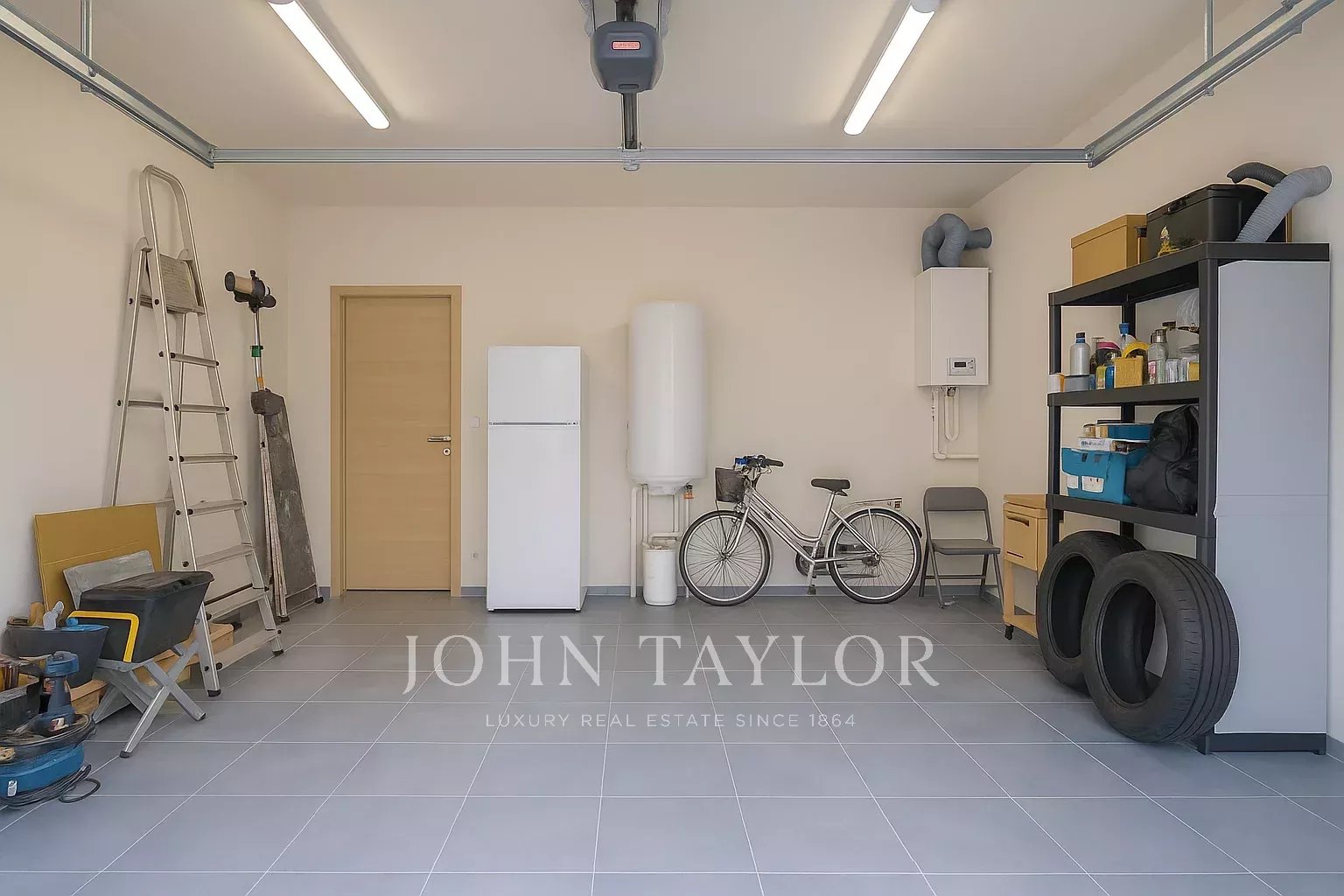 Un amplio garaje y varias plazas de aparcamiento al aire libre completan esta villa.