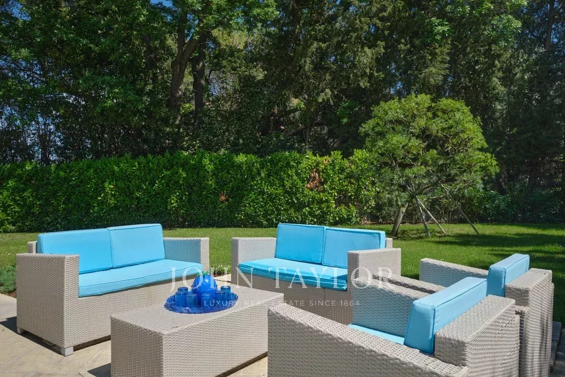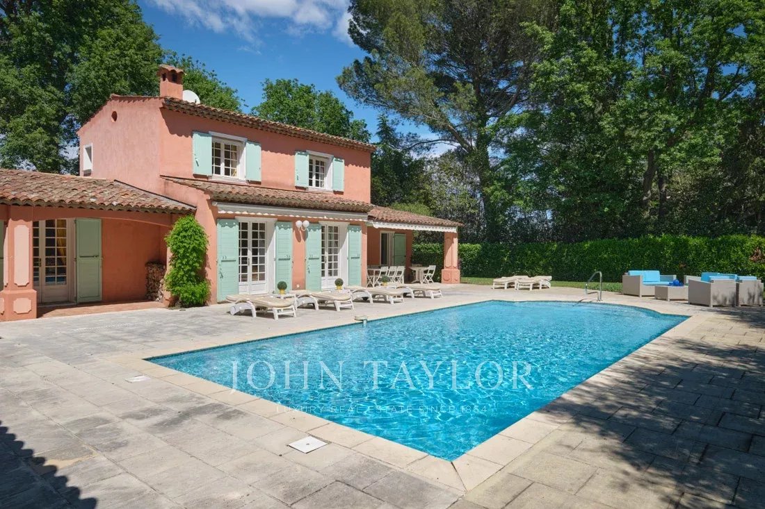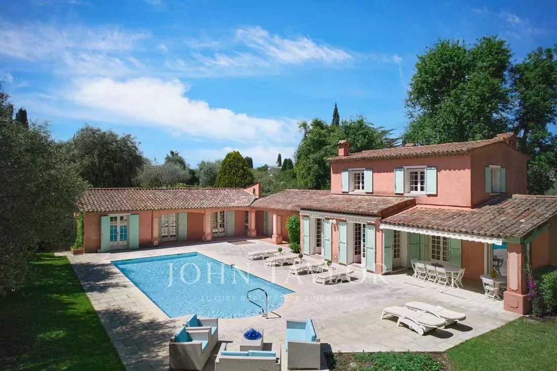 Coexclusividad: En la ladera de Mougins, a dos pasos del encantador pueblo antiguo, esta elegante propiedad provenzal de 234 m² está enclavada en 3.218 m² de terreno llano con un olivar.