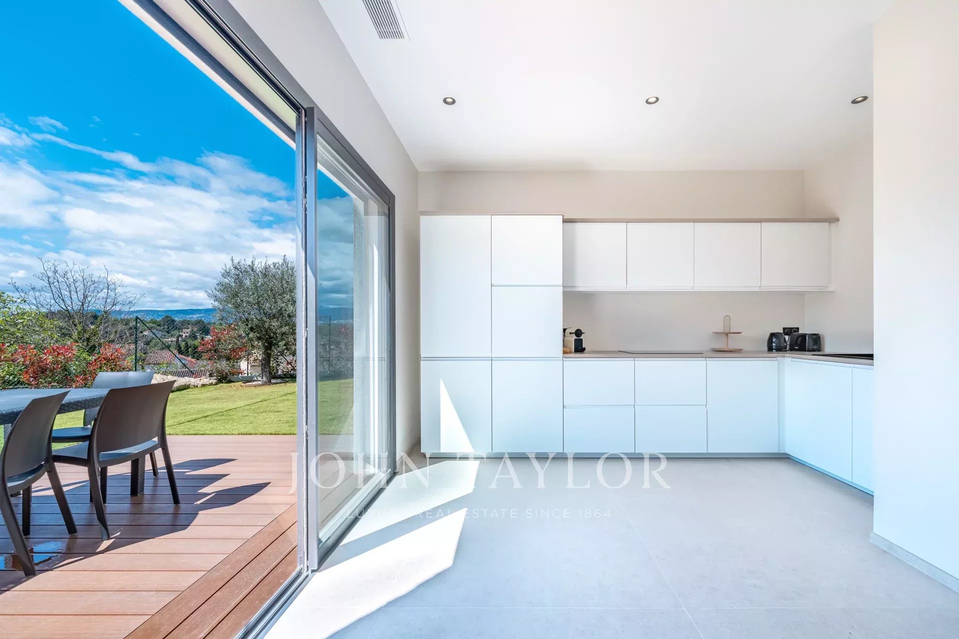 La villa principal, de 230 m² distribuidos en dos plantas, está diseñada para ofrecer el máximo confort. En el nivel del jardín, un acogedor hall de entrada con un gran aseo y un aseo de invitados conduce a un amplio y luminoso salón, una cocina independiente y un lavadero. En la planta superior hay cuatro dormitorios en suite, cada uno con su cuarto de baño privado, incluida una suntuosa suite principal con un amplio vestidor.