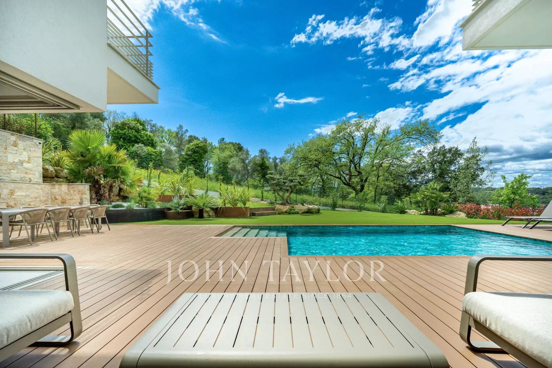 Con aire acondicionado para un confort total en todas las estaciones, la propiedad se asienta en 1.572 m² de terreno, con una elegante piscina y plazas de aparcamiento.