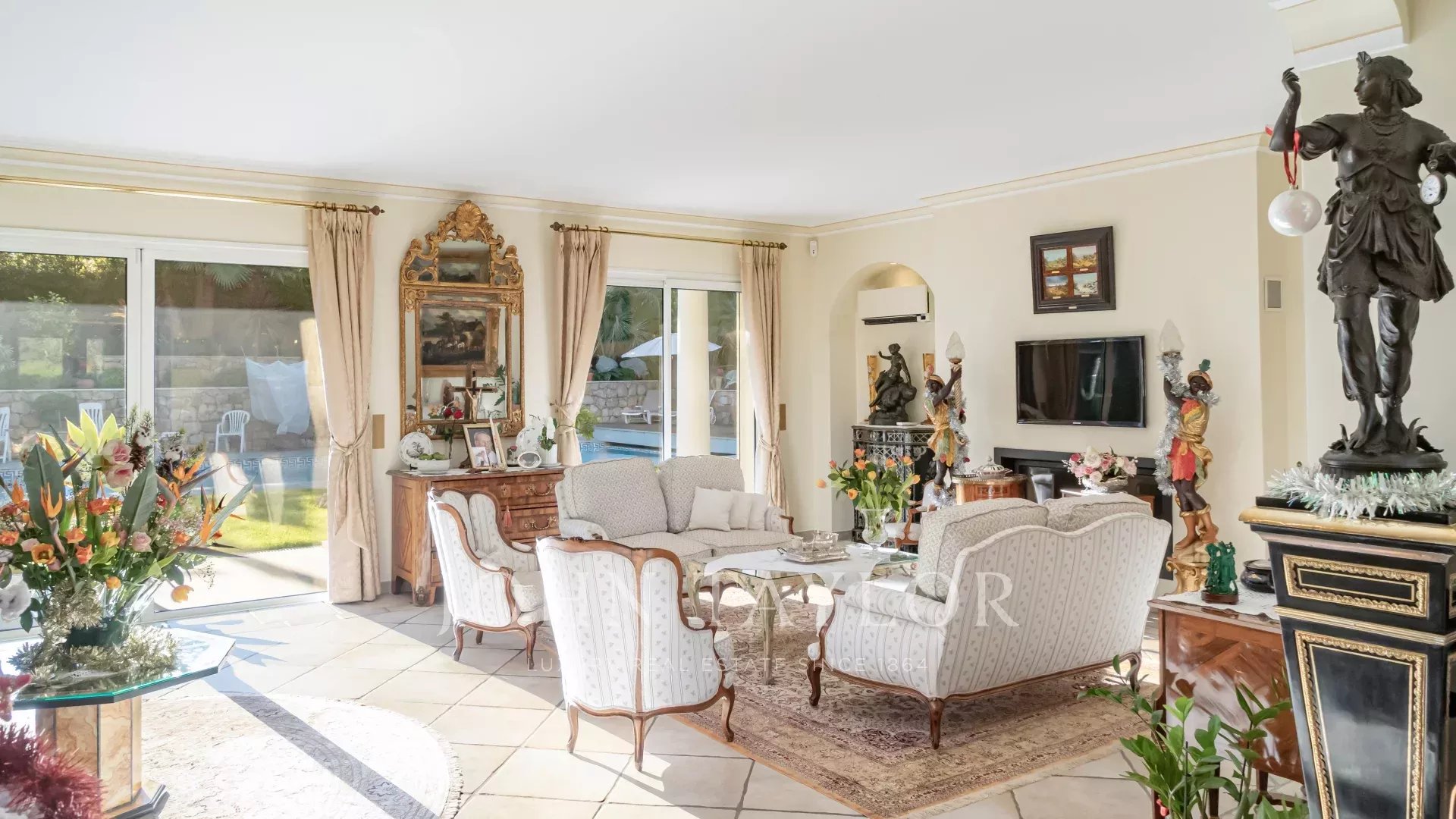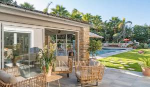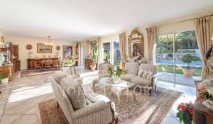 Situada en el corazón de Mougins, en una urbanización cerrada y codiciada, esta elegante villa de 265 m² destaca por su refinamiento y su mantenimiento impecable, perceptibles a primera vista.