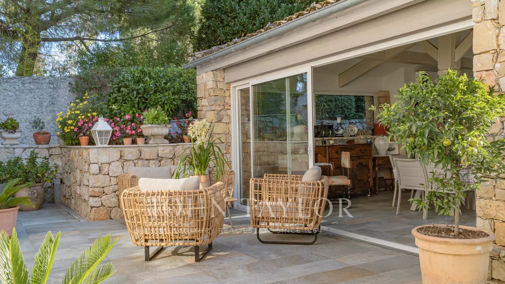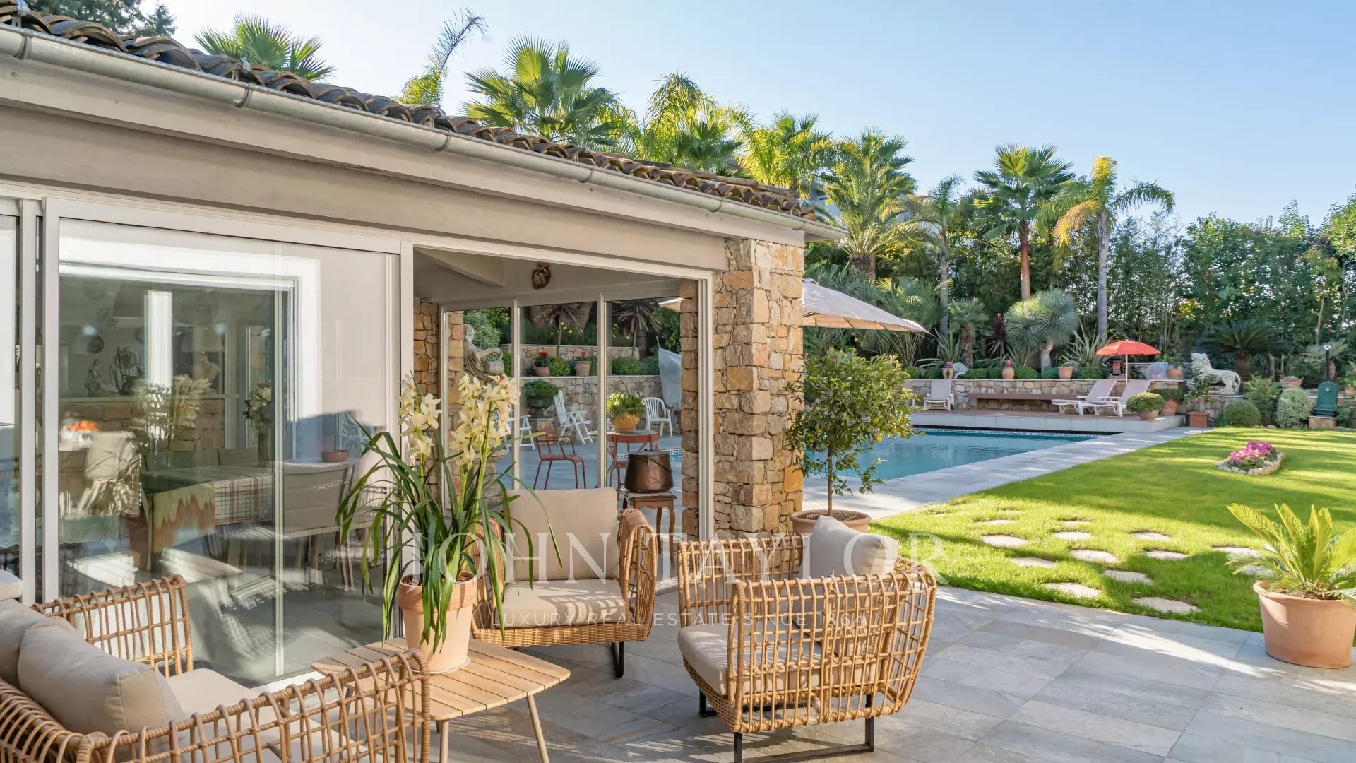 A sólo 10 minutos de la Escuela Internacional de Mougins y a 20 minutos de Cannes y del aeropuerto de Niza, esta villa combina confort, elegancia y proximidad.