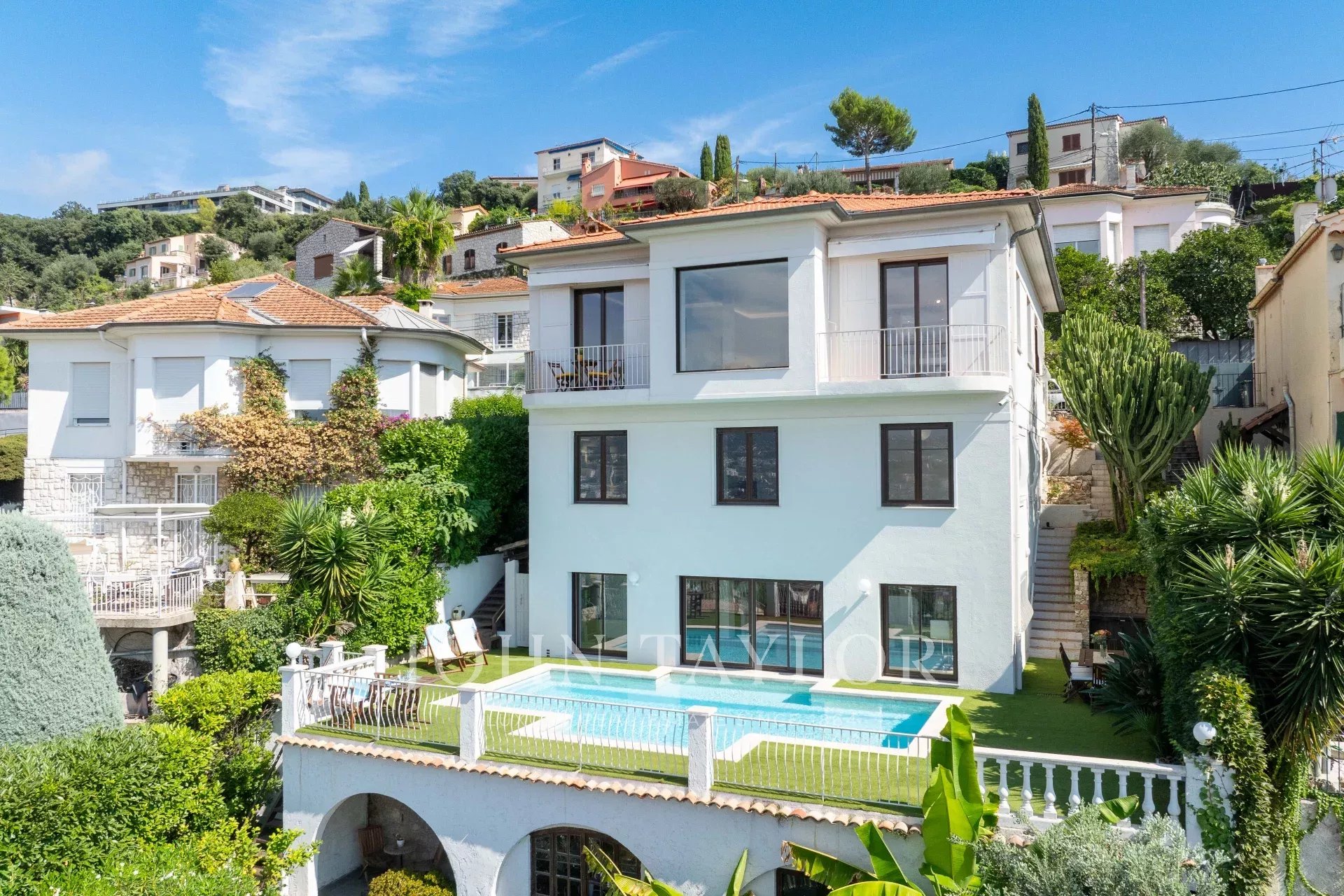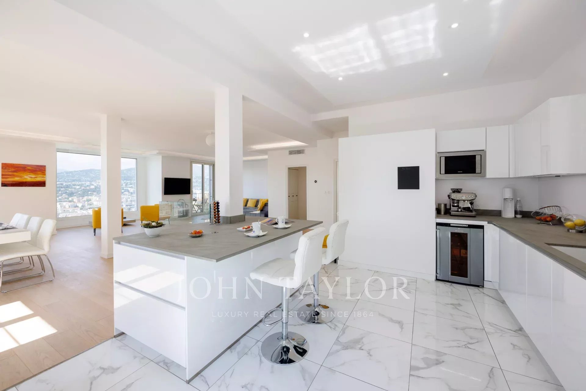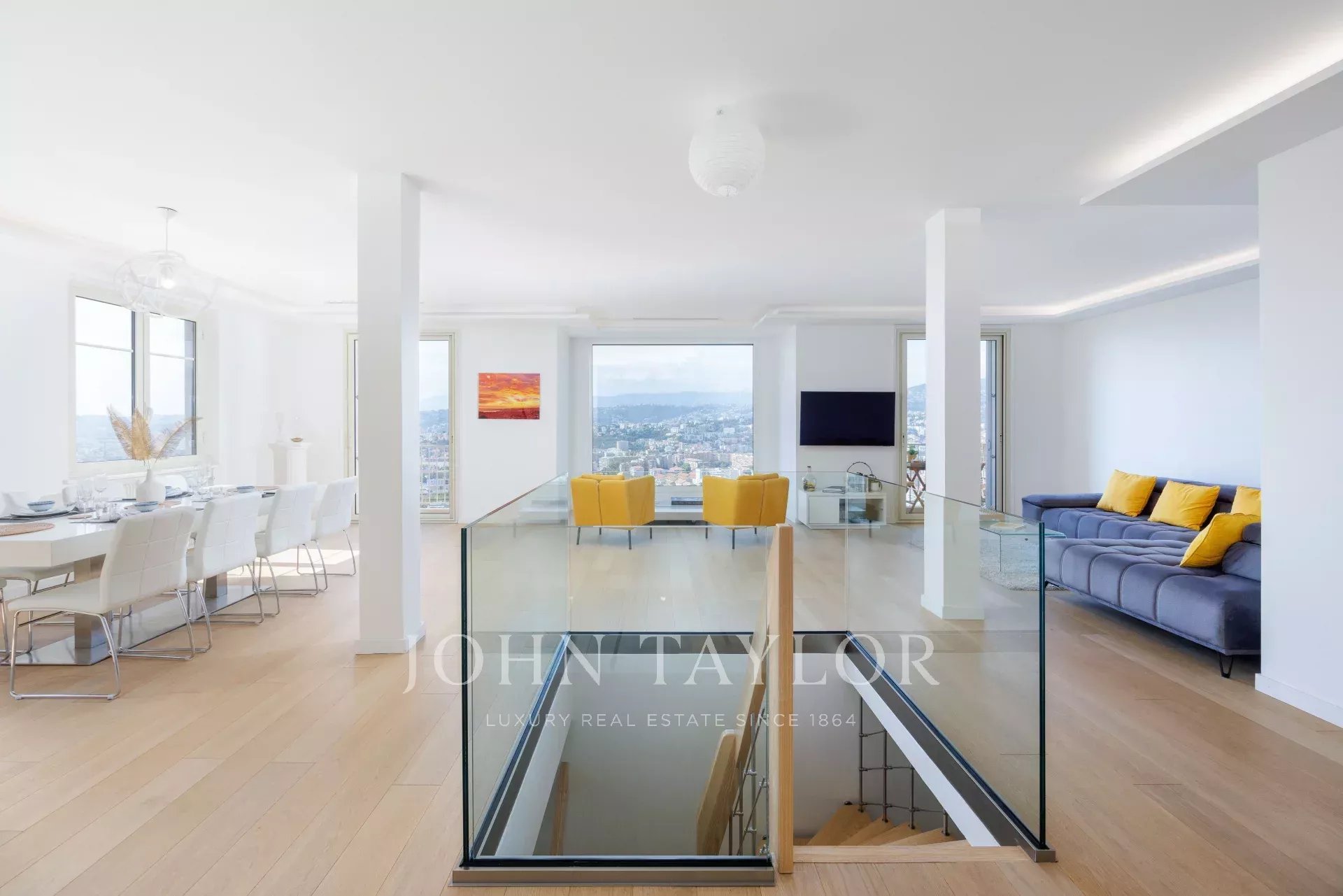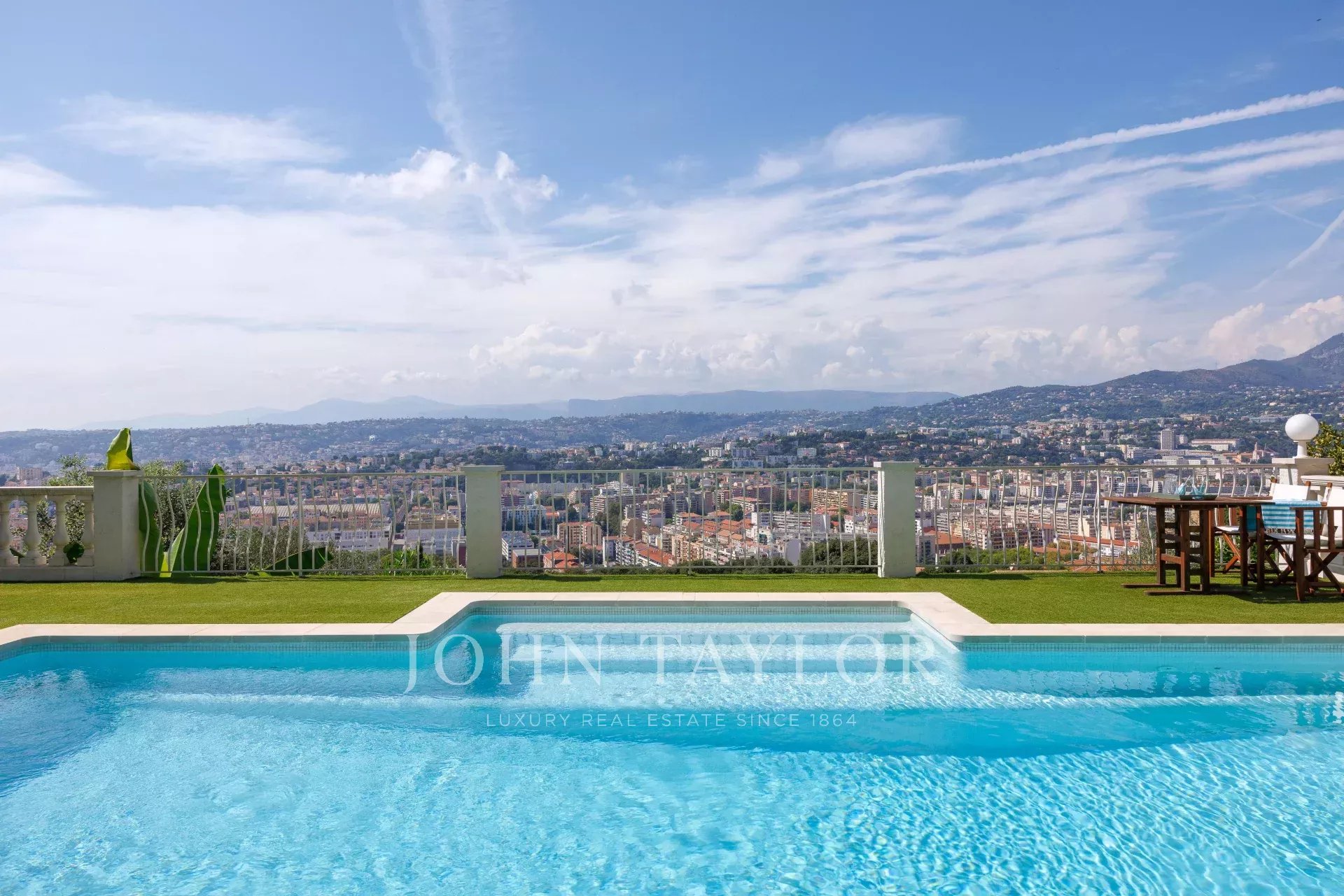 Esta impresionante villa de 261 m² en Niza, Francia, es una joya inmobiliaria. Consta de 7 habitaciones, incluyendo 4 dormitorios, y ofrece un diseño contemporáneo con amplios ventanales y ventanas deslizantes que permiten una abundante entrada de luz natural.
