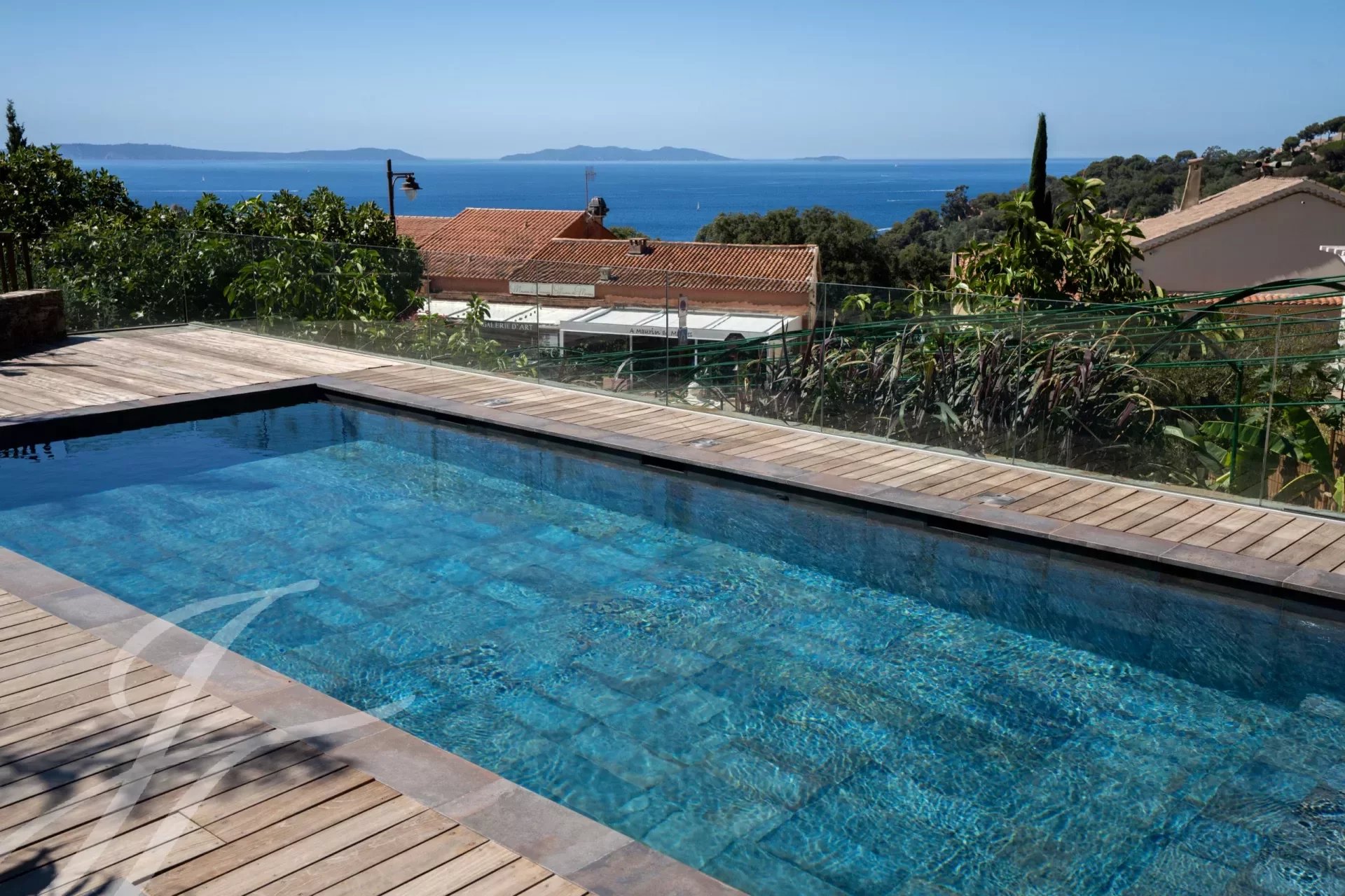 Rayol-Canadel, esta nueva residencia íntima de 10 pisos ofrece un estilo de vida único: vistas panorámicas al mar y acceso a pie a los comercios y a la playa. El piso (chalet en la azotea) de 132 m2 de superficie habitable está situado en la 2ª y última planta (acceso en ascensor desde el sótano y la planta baja) y dispone de 38 m2 de terraza y 25 m2 de terraza cubierta por una pérgola con cocina exterior, todo ello con espléndidas vistas al mar.