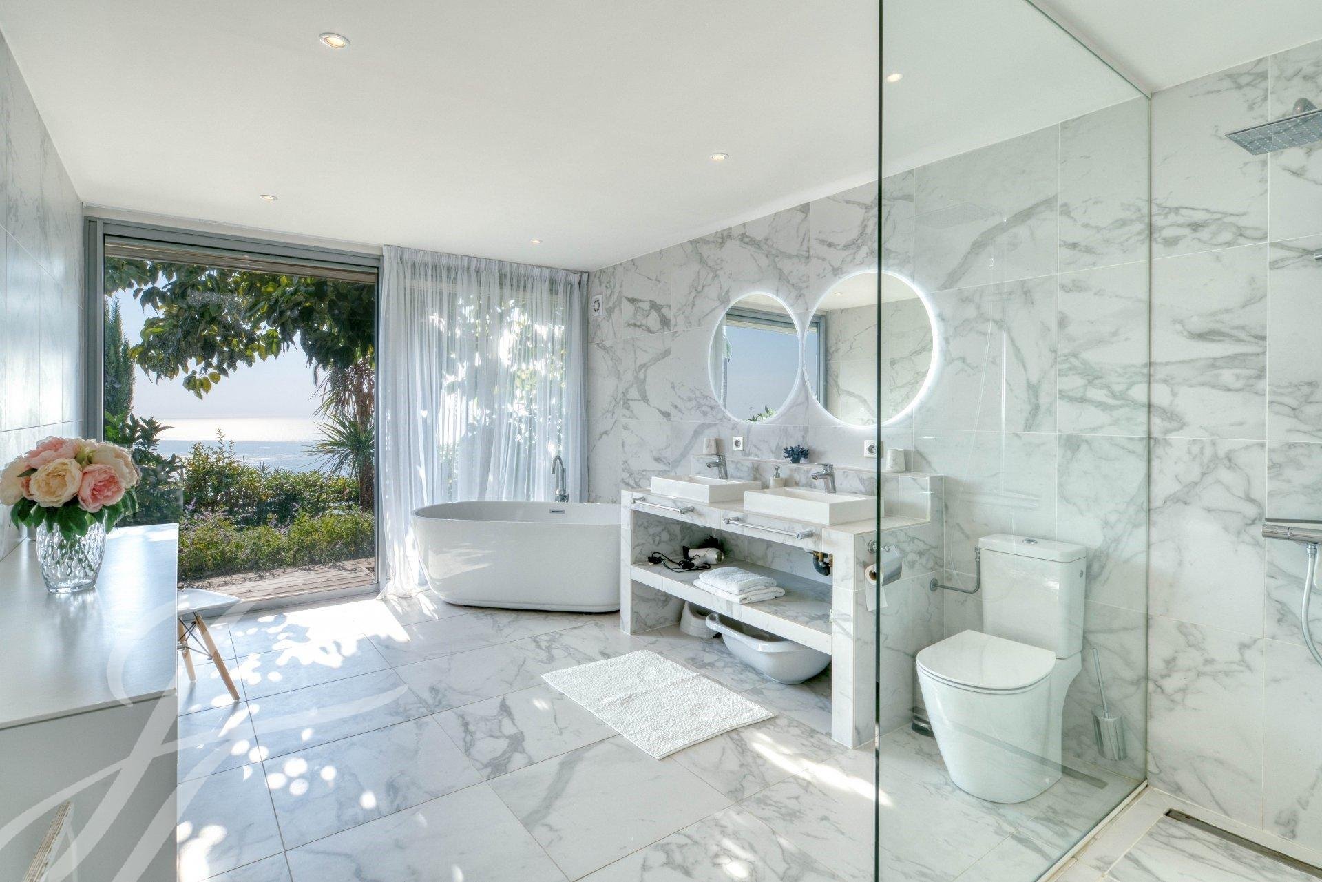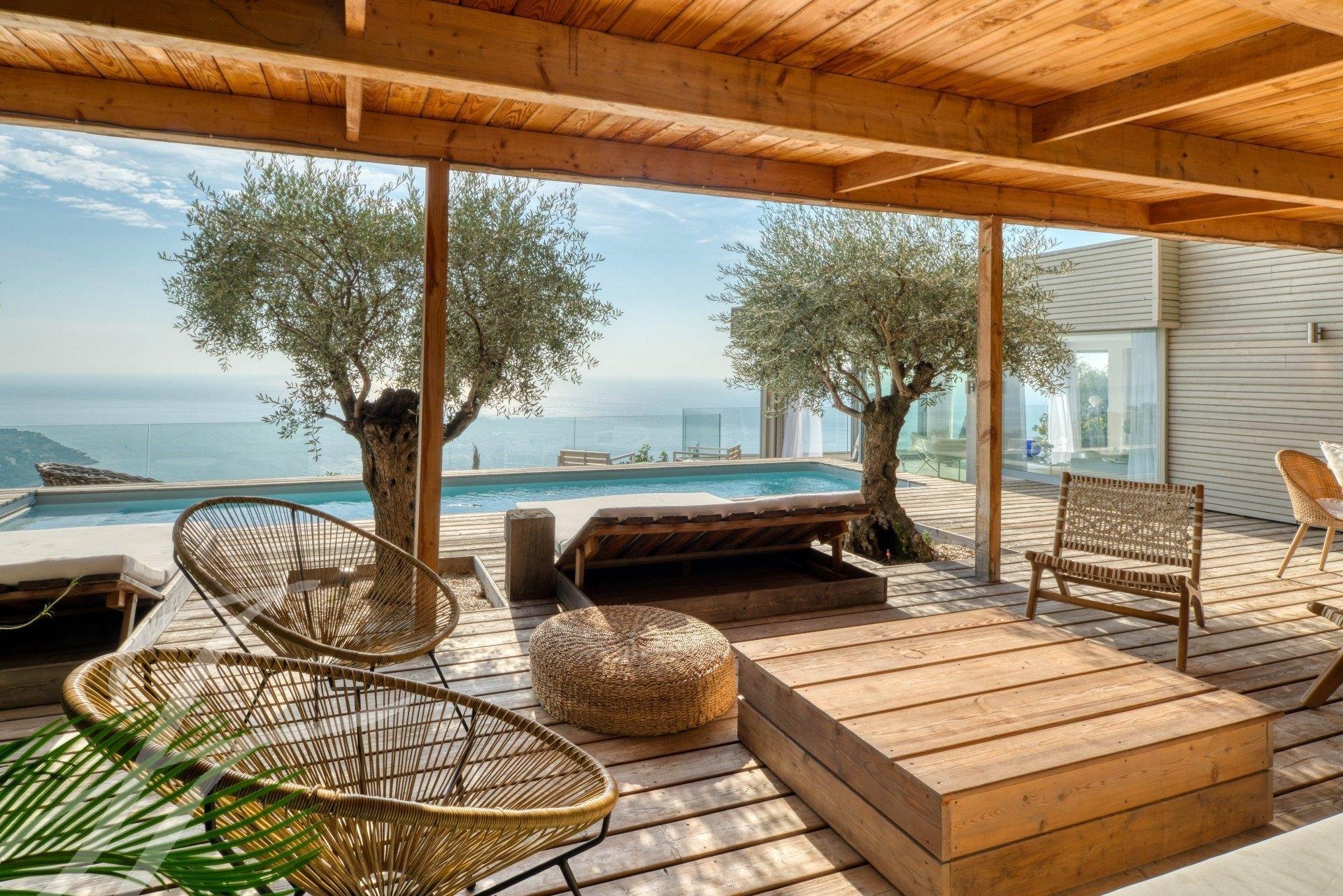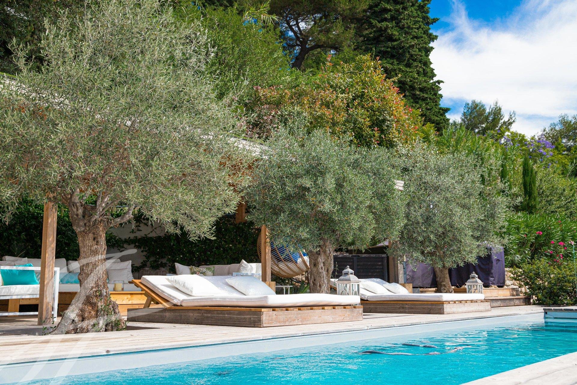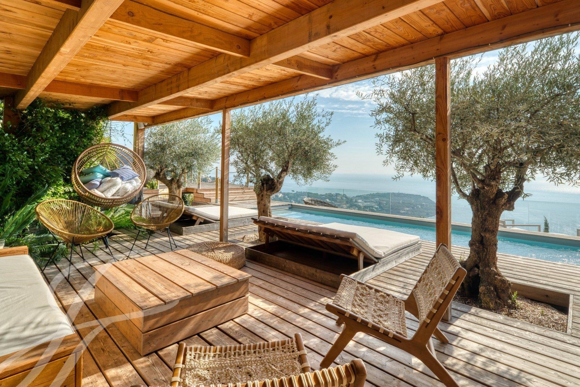 Aprovechando un entorno de vida fuera del tiempo, esta villa dispone de amplias terrazas que incluyen un hermoso espacio con piscina con pool house y salón de verano, una terraza elevada con una vista al mar mágica, un espacio comedor exterior con el encanto de la Provenza con vista panorámica al mar.