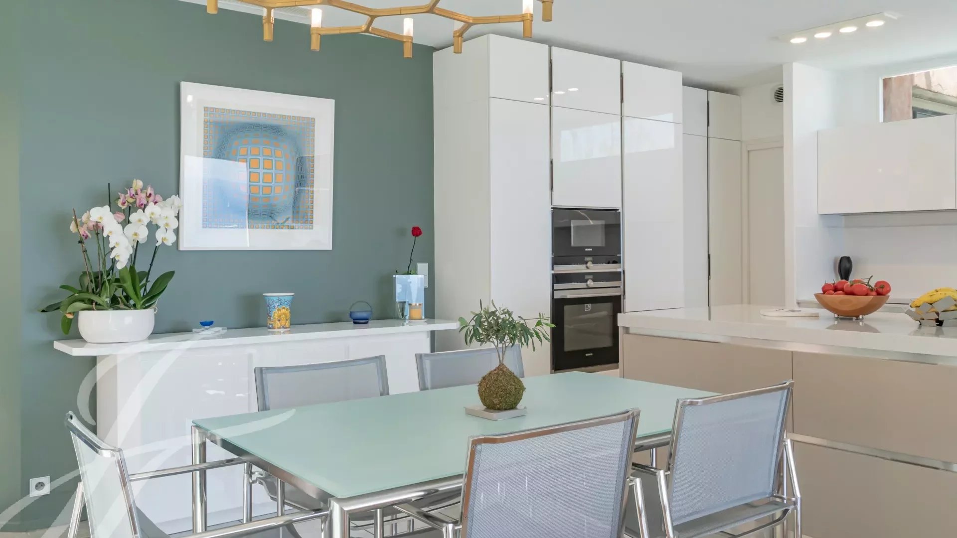 Las ventanas corredizas de aluminio no solo aportan un toque contemporáneo, sino que también permiten una optimización del espacio y una iluminación natural sublime. La villa está equipada con acceso a internet de alta velocidad, fibra óptica y persianas eléctricas para garantizarte la máxima comodidad y conectividad. Además, el sistema de ventanas con sombras y el acceso adaptado para discapacitados hacen de esta propiedad un verdadero oasis accesible para todos.