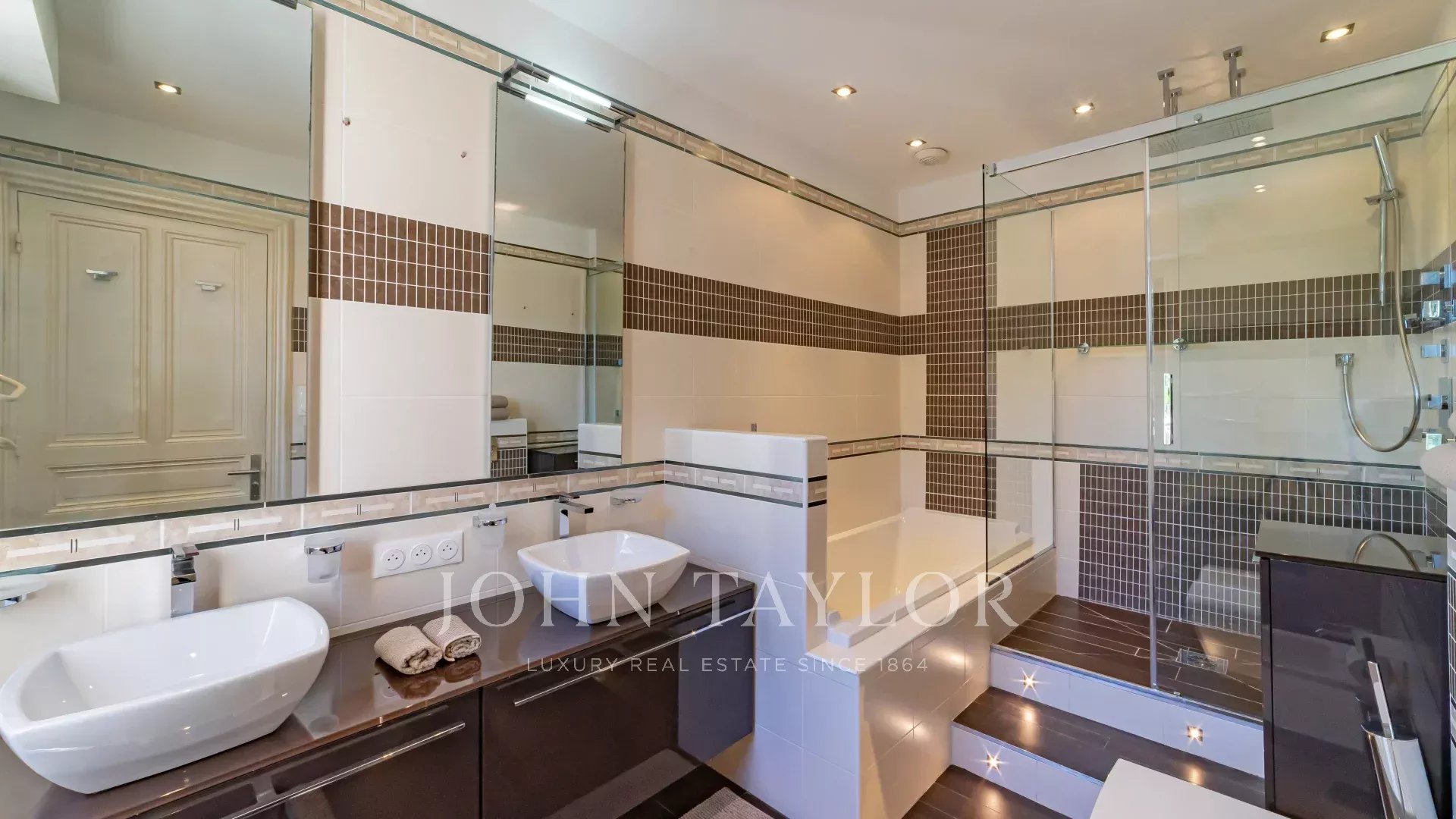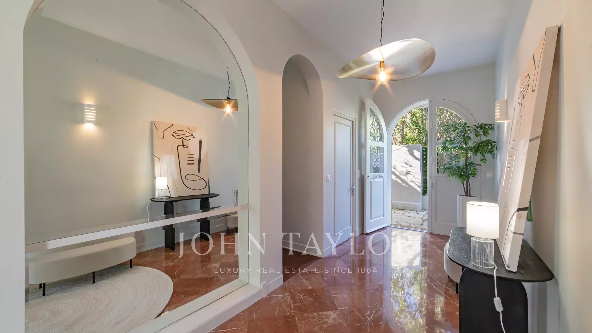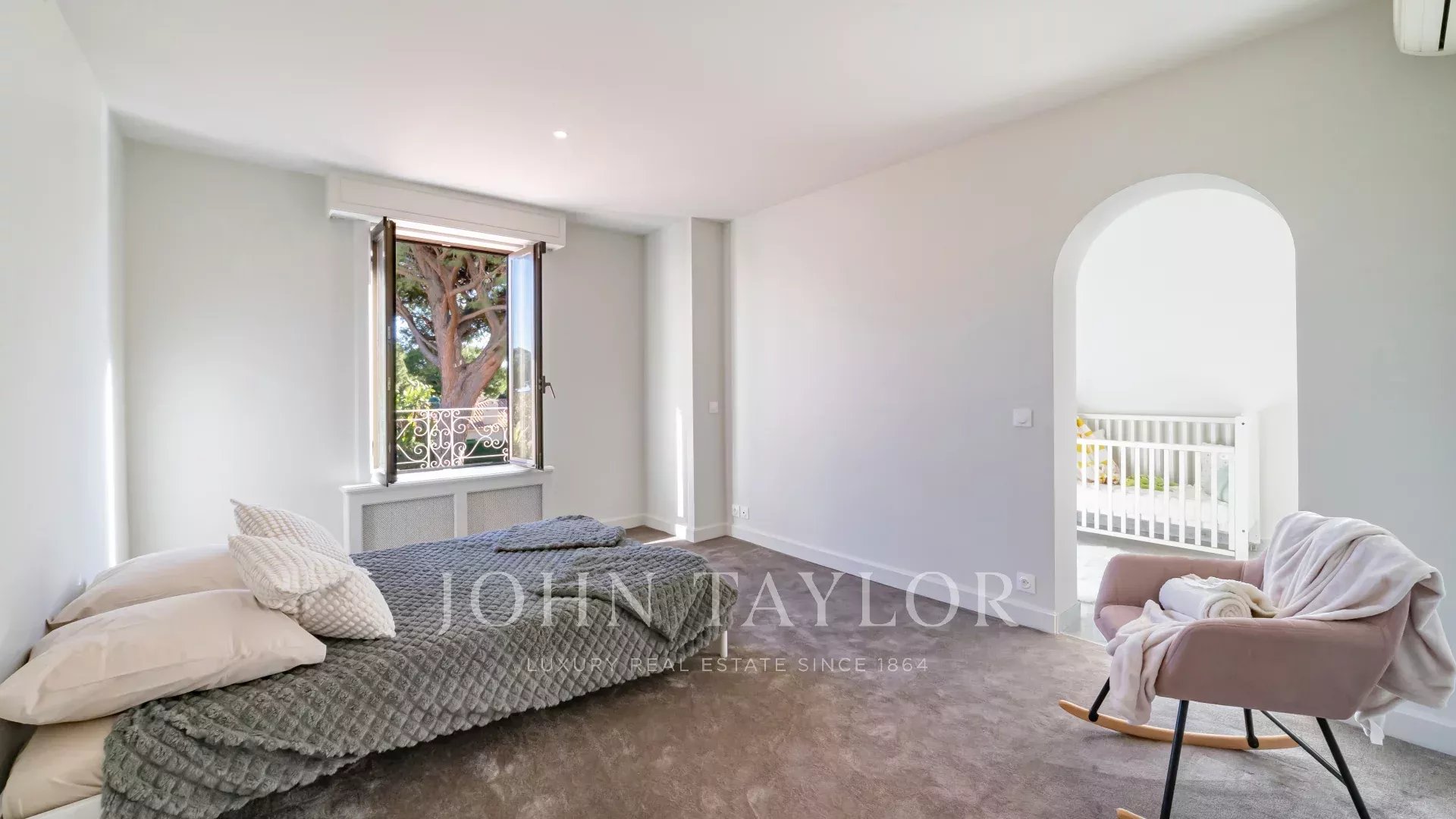 Situada en Saint-Jean-Cap-Ferrat, cerca del «Grand Hôtel Four Seasons *****», en una zona tranquila a pocos minutos a pie del mar, esta hermosa villa de estilo moderno, situada en una parcela llana de unos 1.100 m², ofrece interiores espaciosos con grandes salones y 5 dormitorios.