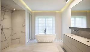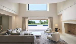 Con una superficie total de unos 1.170 m2, esta residencia se distingue por su amplia distribución en tres partes. El salón principal, con su notable chimenea y sus techos altos, se funde armoniosamente con el comedor. Un segundo salón esquinero, bañado de luz gracias a enormes ventanales, se abre a un encantador jardín. Este suntuoso espacio vital se complementa con la cocina, una auténtica joya, lujosamente equipada con una isla central, y una cocina trasera con cámara frigorífica. La villa también cuenta con cinco suites, incluida una espaciosa suite principal en la planta baja y una sexta suite independiente para invitados.