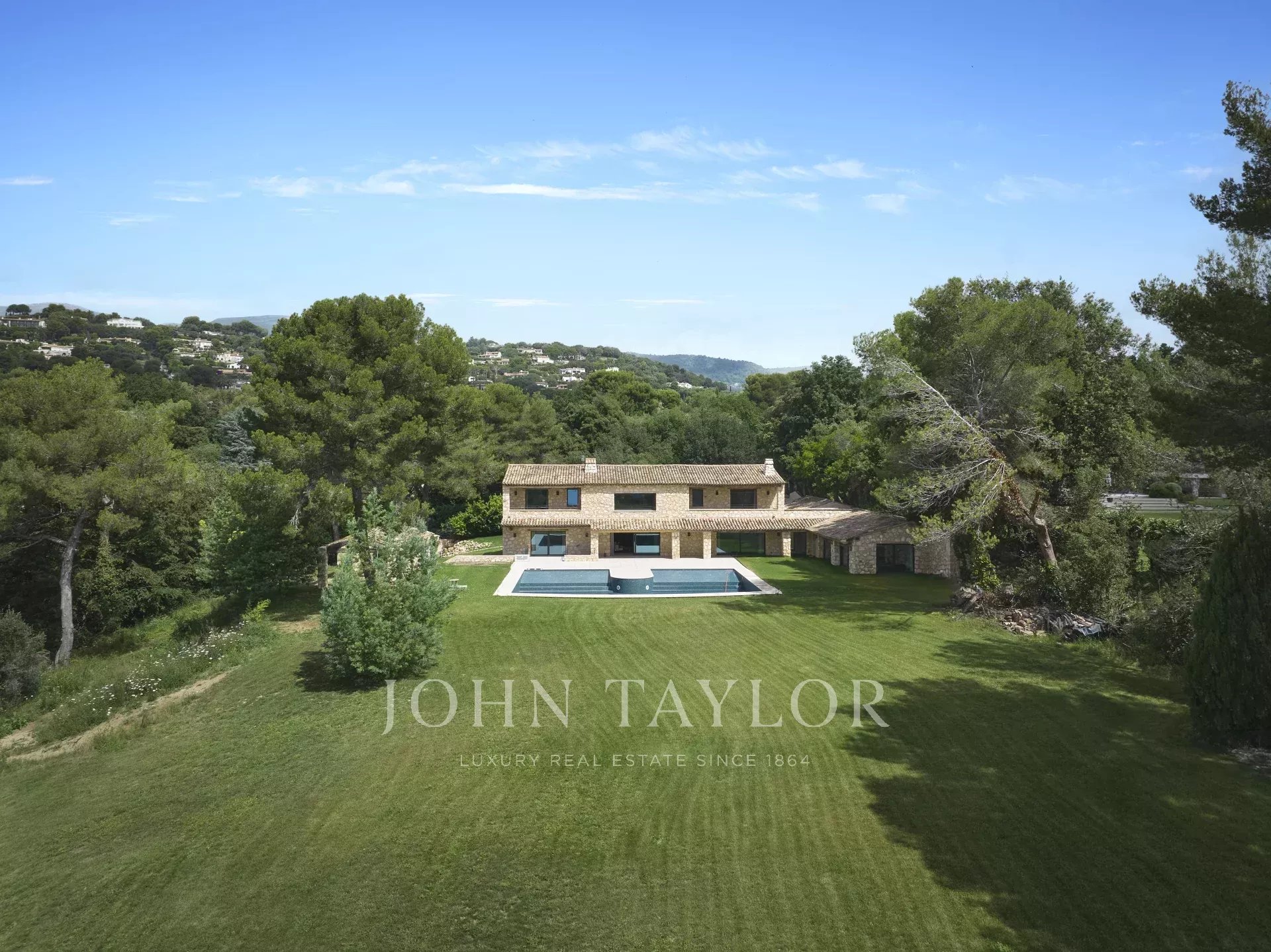 Esta lujosa residencia de piedra encarna la mezcla perfecta de elegancia y encanto. Enclavada cerca del pintoresco pueblo de Saint-Paul de Vence, en el corazón de una discreta finca privada, se encuentra en una posición dominante, ofreciendo majestuosas vistas hasta el mar.