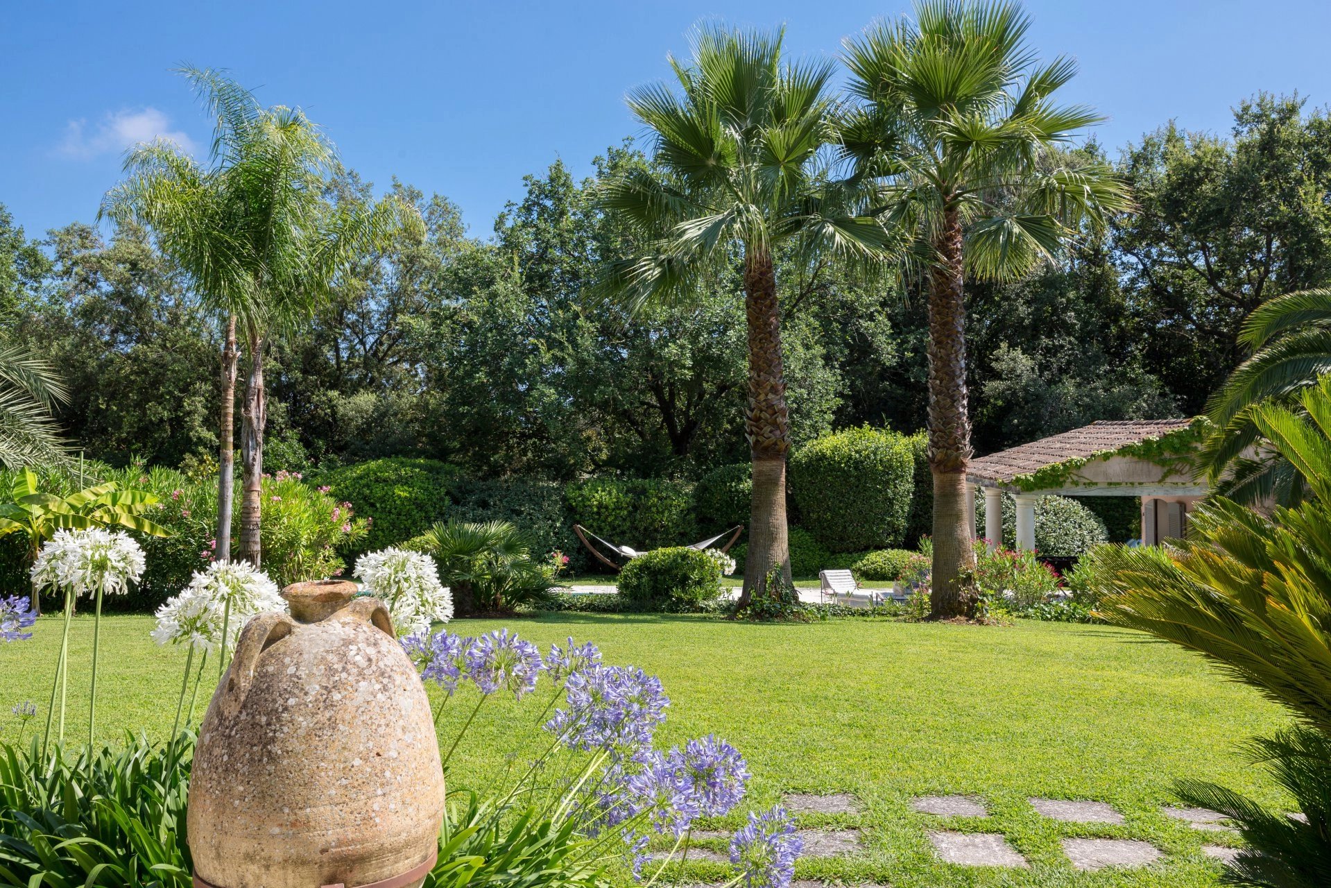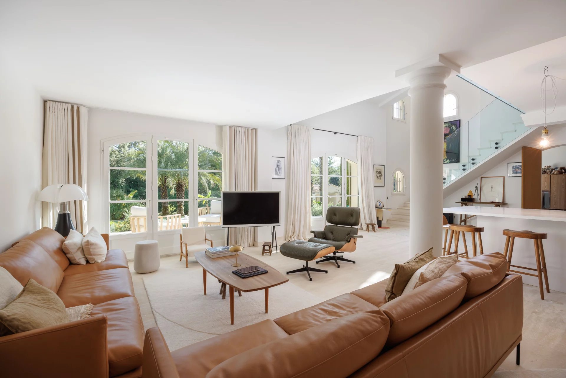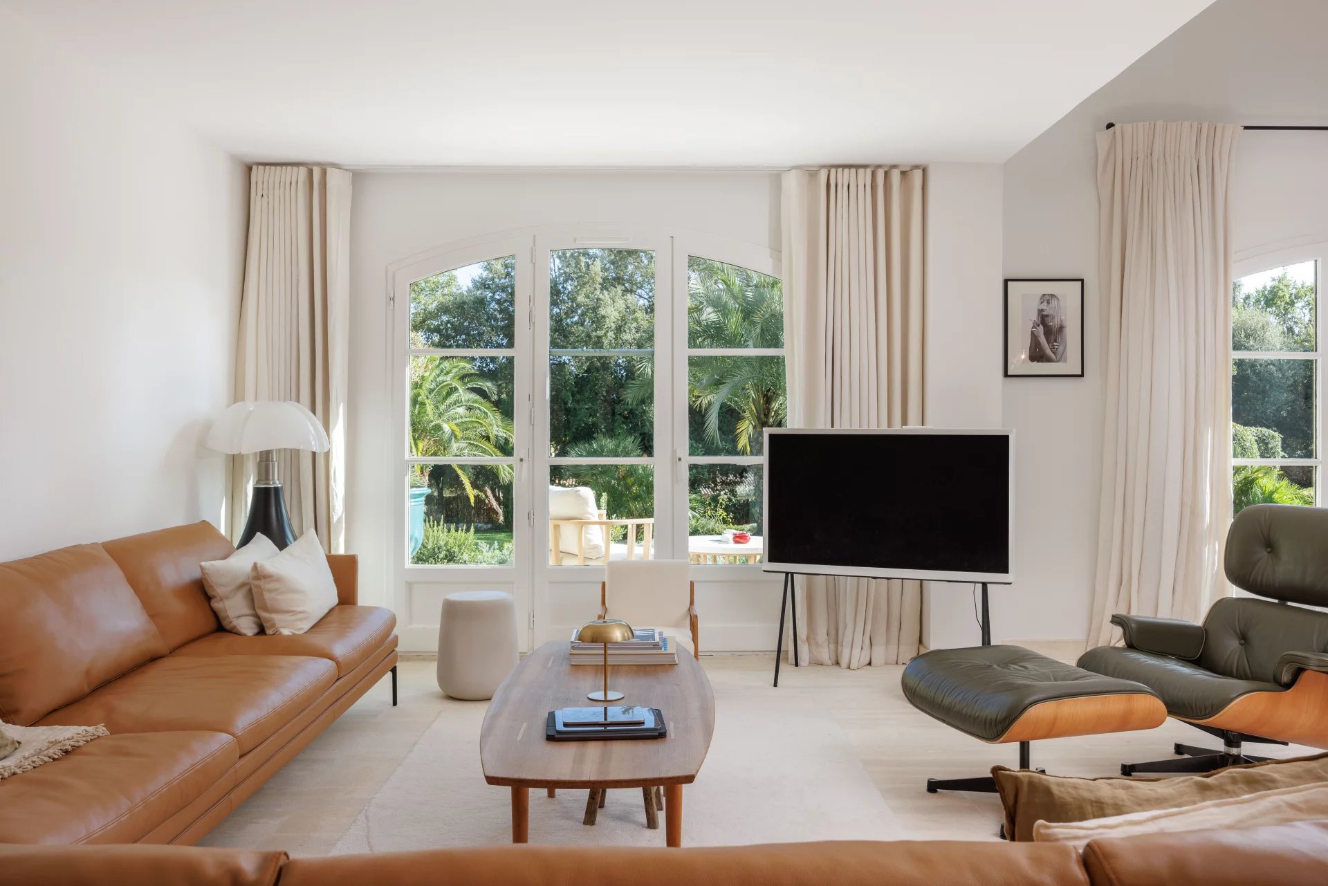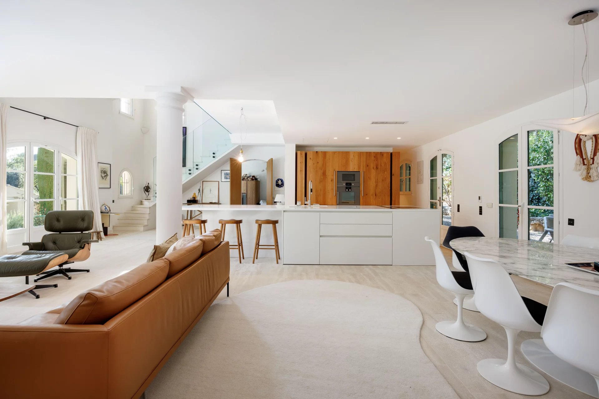 En el interior, el estilo contemporáneo es impresionante, con habitaciones amplias y luminosas, todas abiertas al jardín, en perfecto estado.