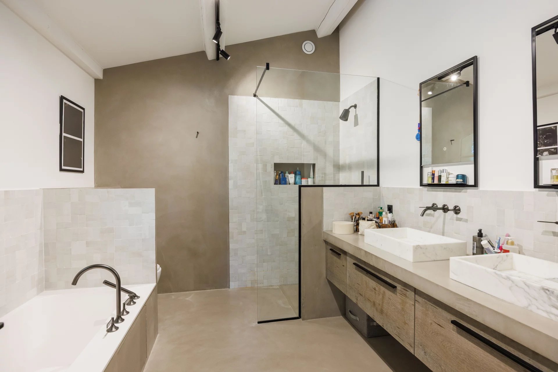 El exterior invita a relajarse y disfrutar: una enorme terraza, una zona de patio de 80 m² ideal para relajarse en las calurosas tardes de verano, y una preciosa zona de piscina con su casa-piscina equipada con cocina y cuarto de ducha.
