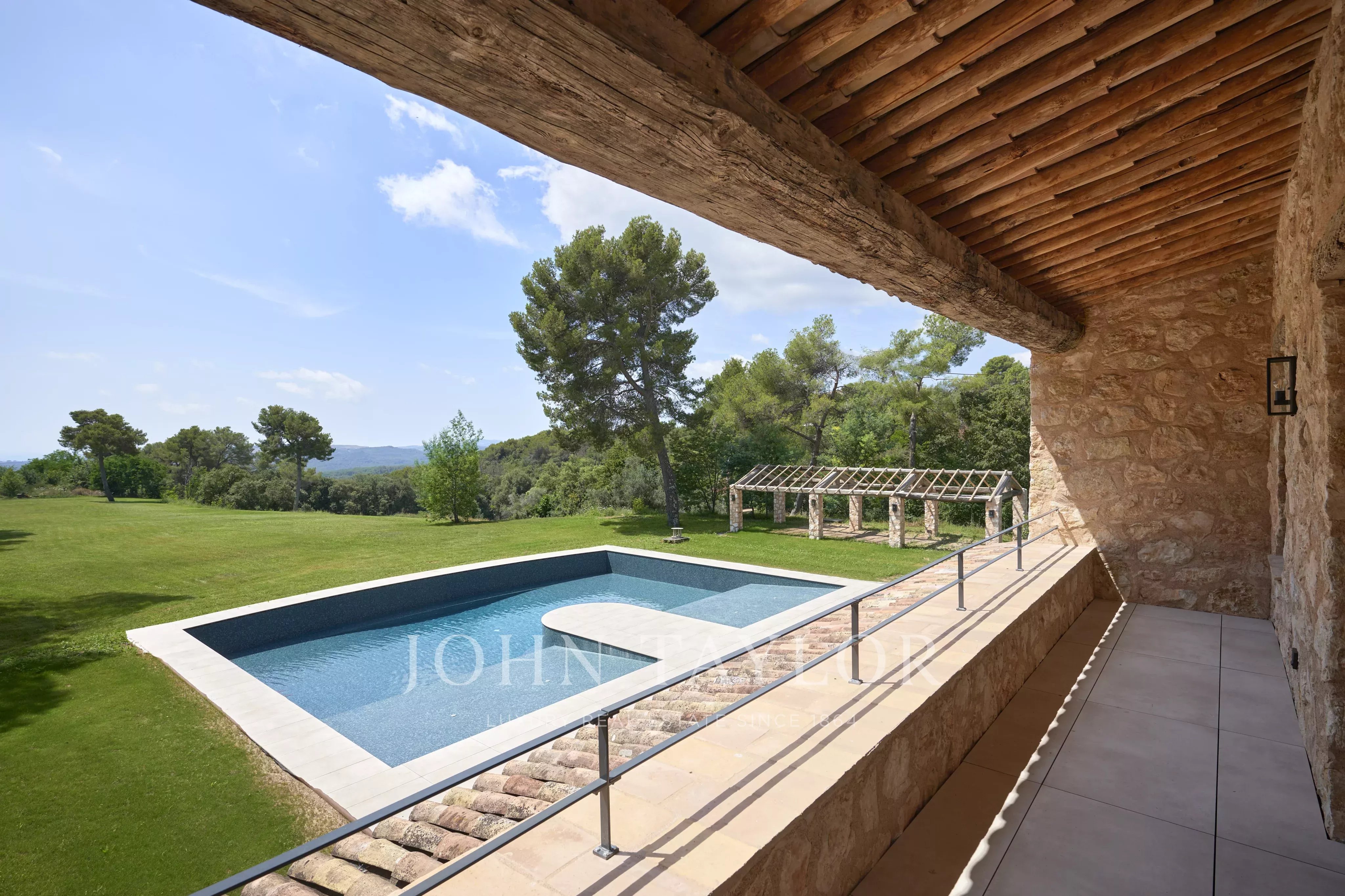 La hectárea de terreno perfectamente distribuido cuenta con una majestuosa piscina, que invita a relajarse en un ambiente de calma absoluta. Un verdadero remanso de paz, donde cada detalle refleja la quintaesencia del refinamiento provenzal.