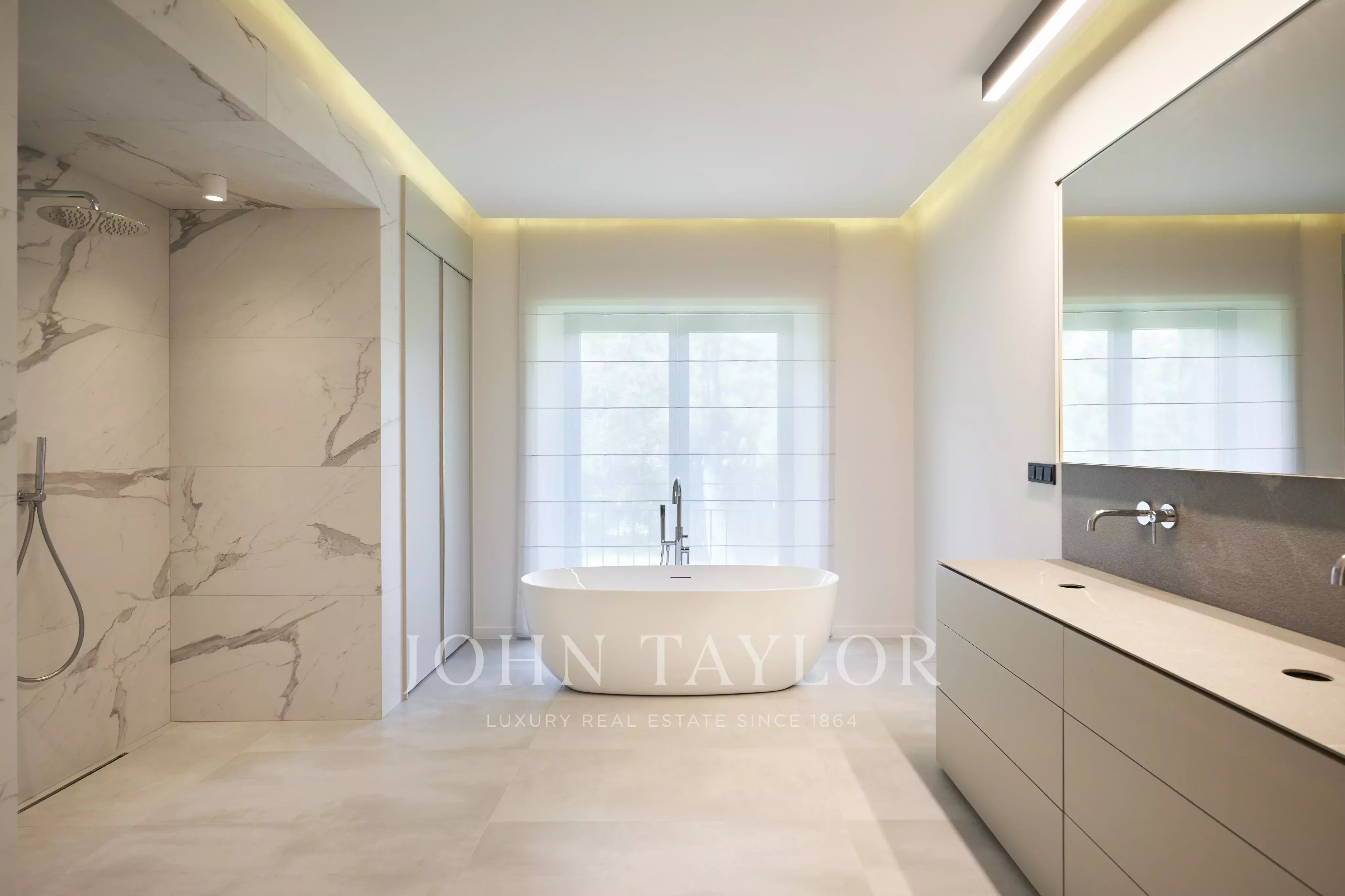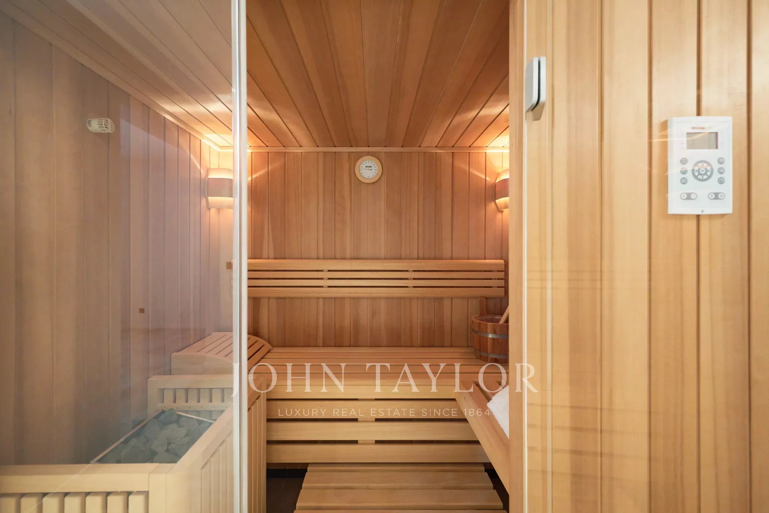 En el nivel inferior, un despacho con cuarto de ducha, un spa con sala de masajes, una bodega bien surtida y varios anexos, entre ellos sótanos y un lavadero, se suman a las posibilidades que ofrece esta propiedad excepcional. Una amplia zona aún por desarrollar ofrece la perspectiva de un cine, bar, discoteca, sala de música e incluso una bolera. Un garaje de 187 m2 con espacio para hasta nueve coches completa esta generosa propiedad.