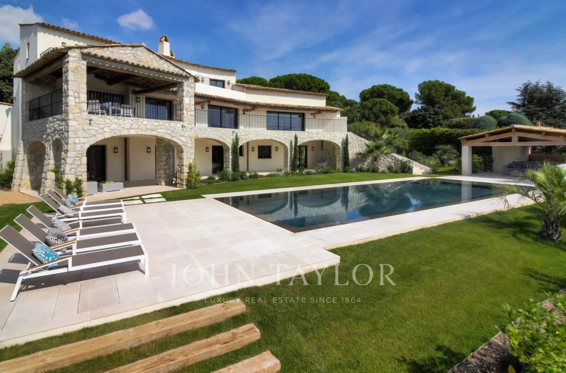 Completamente renovada con un gusto seguro por la sofisticación y la elegancia, esta magnífica realización de aproximadamente 450 m² combina perfectamente el encanto provenzal con las líneas modernas de los interiores. Esta propiedad de lujo, orientada al suroeste, se despliega en un jardín paisajístico de 2.500 m² con especies mediterráneas y disfruta de un panorama impresionante, beneficiándose de la luz brillante de la Costa Azul con su piscina de espejo climatizada, una casa de piscina equipada, una cocina de verano, un espacio lounge cubierto, una ducha y un campo de petanca.