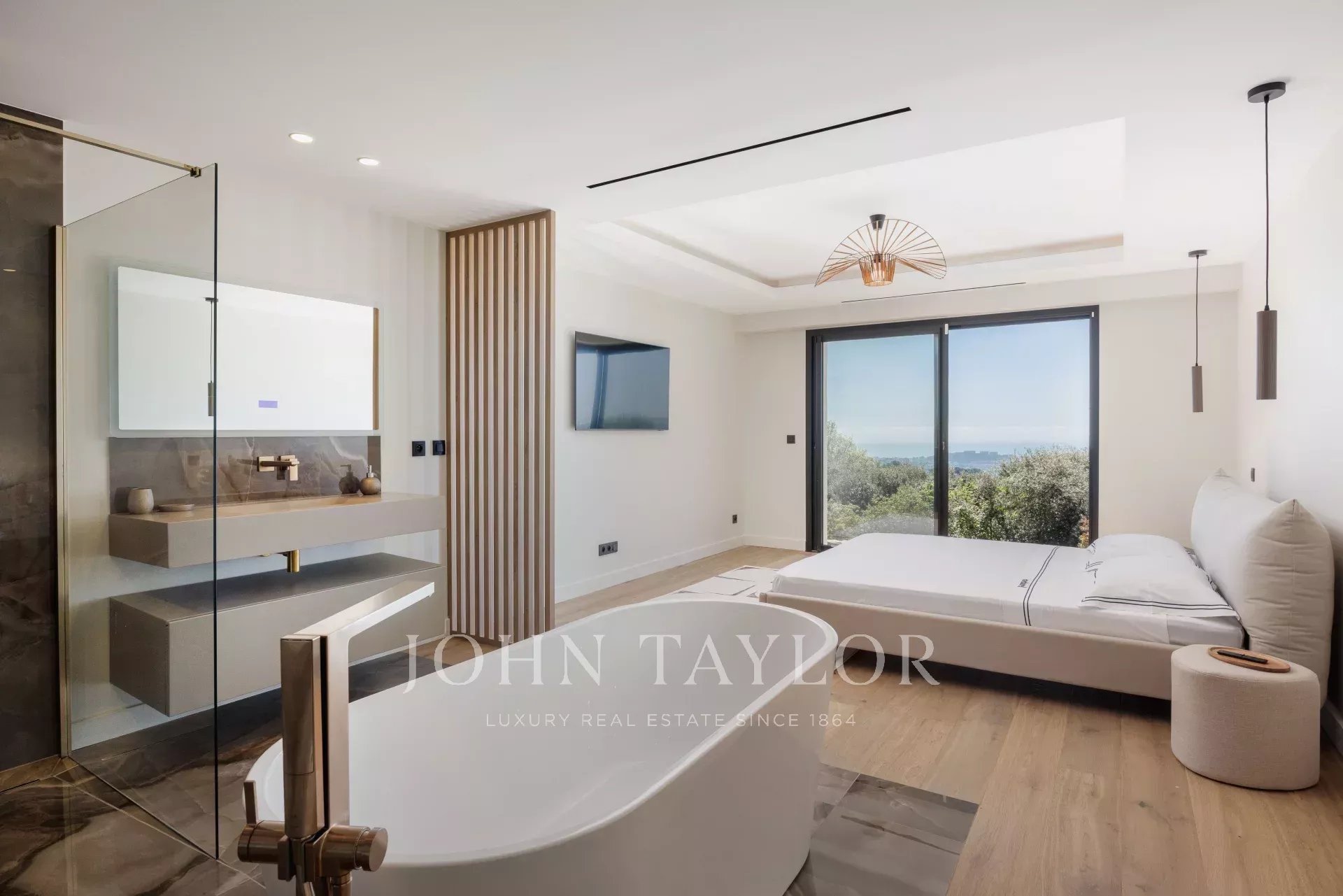 Dispone de domótica, aire acondicionado por conductos, bomba de calor, entrada asfaltada, garaje doble, aparcamiento exterior y, por supuesto, vistas excepcionales al mar y al pueblo de Saint-Paul.