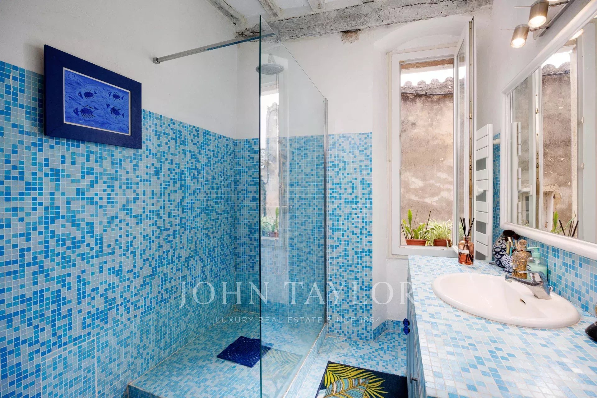 La cálida y acogedora sala de estar cuenta con techos excepcionalmente altos, una gran chimenea de piedra y un doble aspecto, con la cocina orientada al ESTE y la sala de estar orientada al OESTE, lo que proporciona mucha luz natural durante todo el día. Dos dormitorios y un cuarto de ducha completan este pied-à-terre de carácter, ideal para los amantes de la piedra antigua y del alma provenzal de nuestro hermoso pueblo.