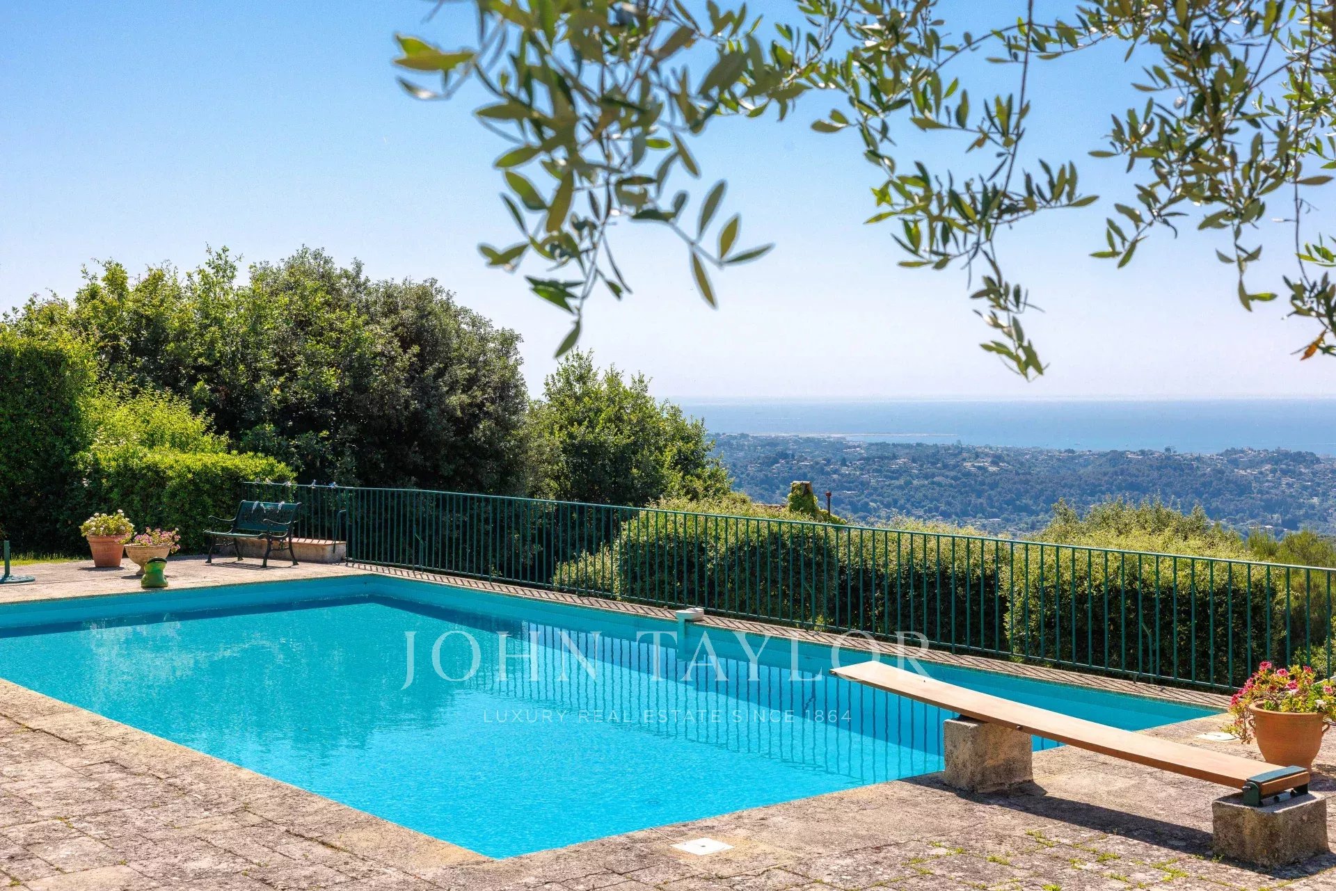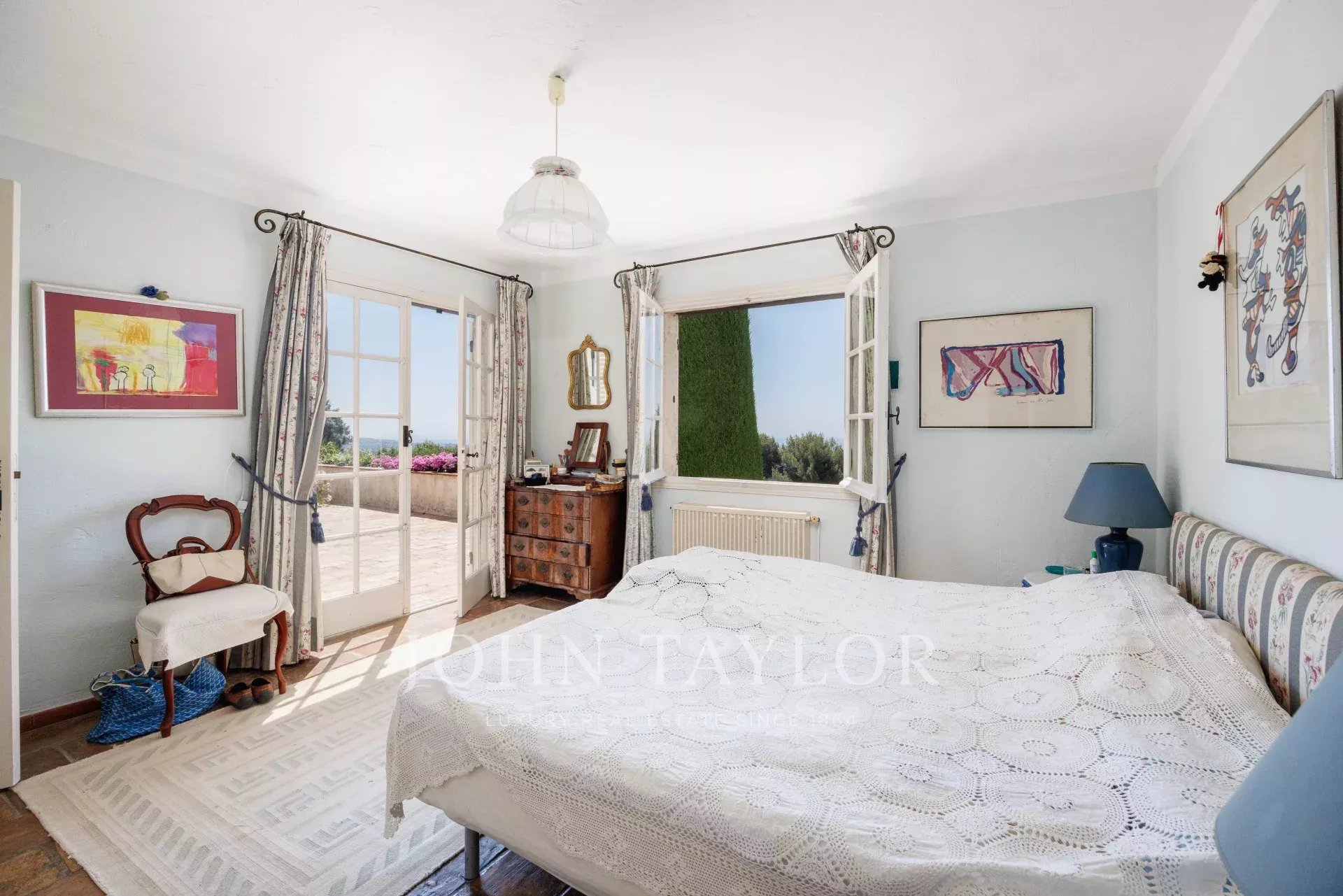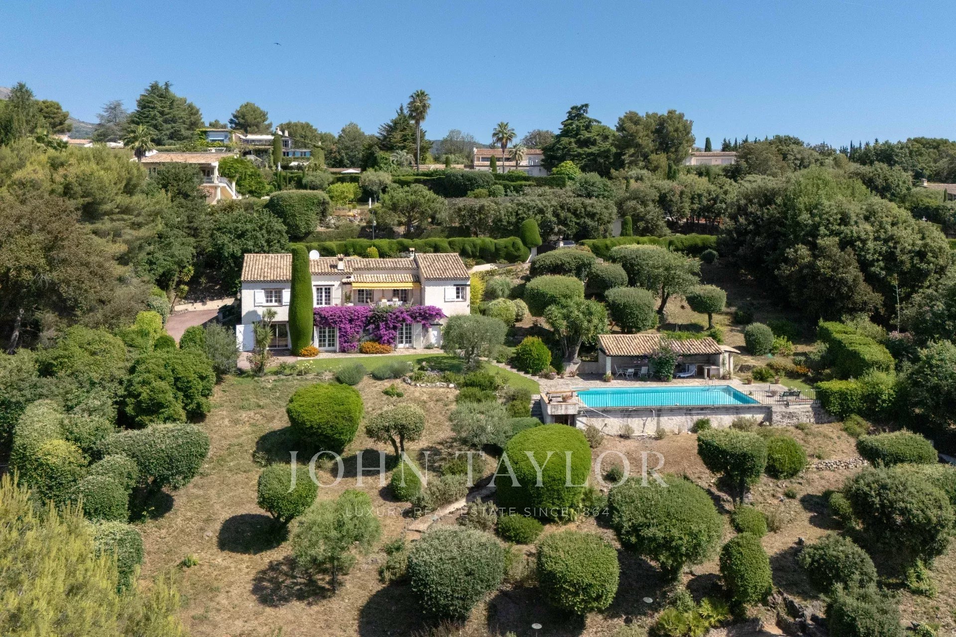 Encantadora casa de unos 238 m² situada en la prestigiosa y segura urbanización Hauts de Saint-Paul, en absoluta tranquilidad, con impresionantes vistas panorámicas al mar y al pueblo de Saint-Paul de Vence. Está enclavada en un magnífico terreno ajardinado de 3.837 m² con piscina, casita de piscina y zona de petanca.