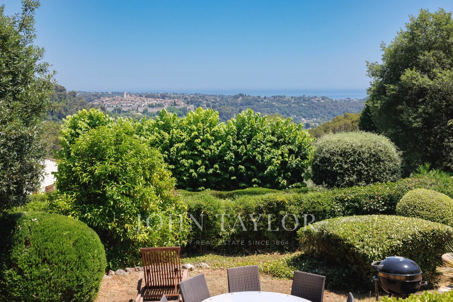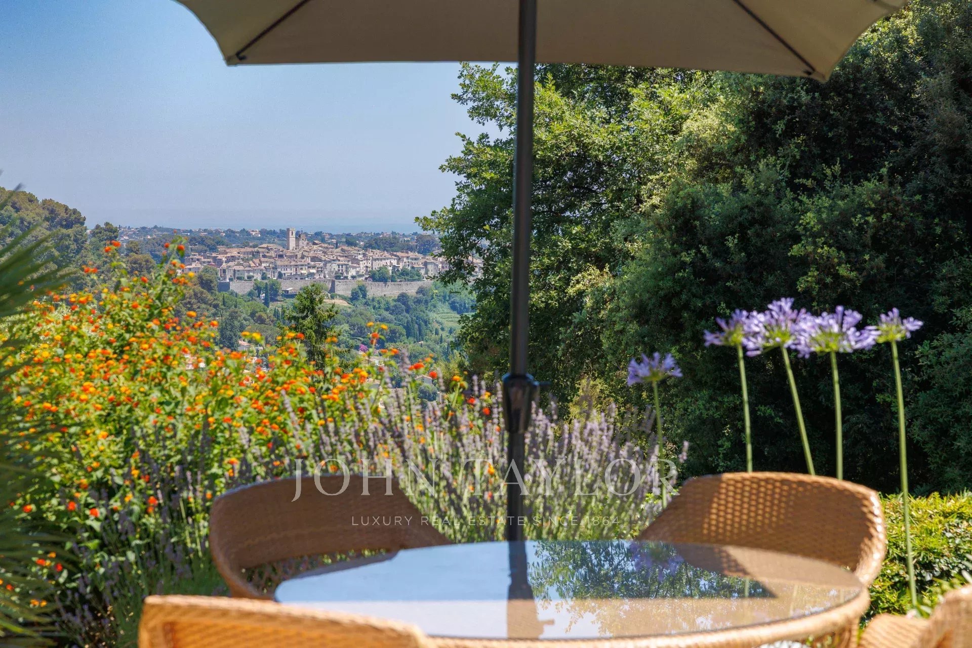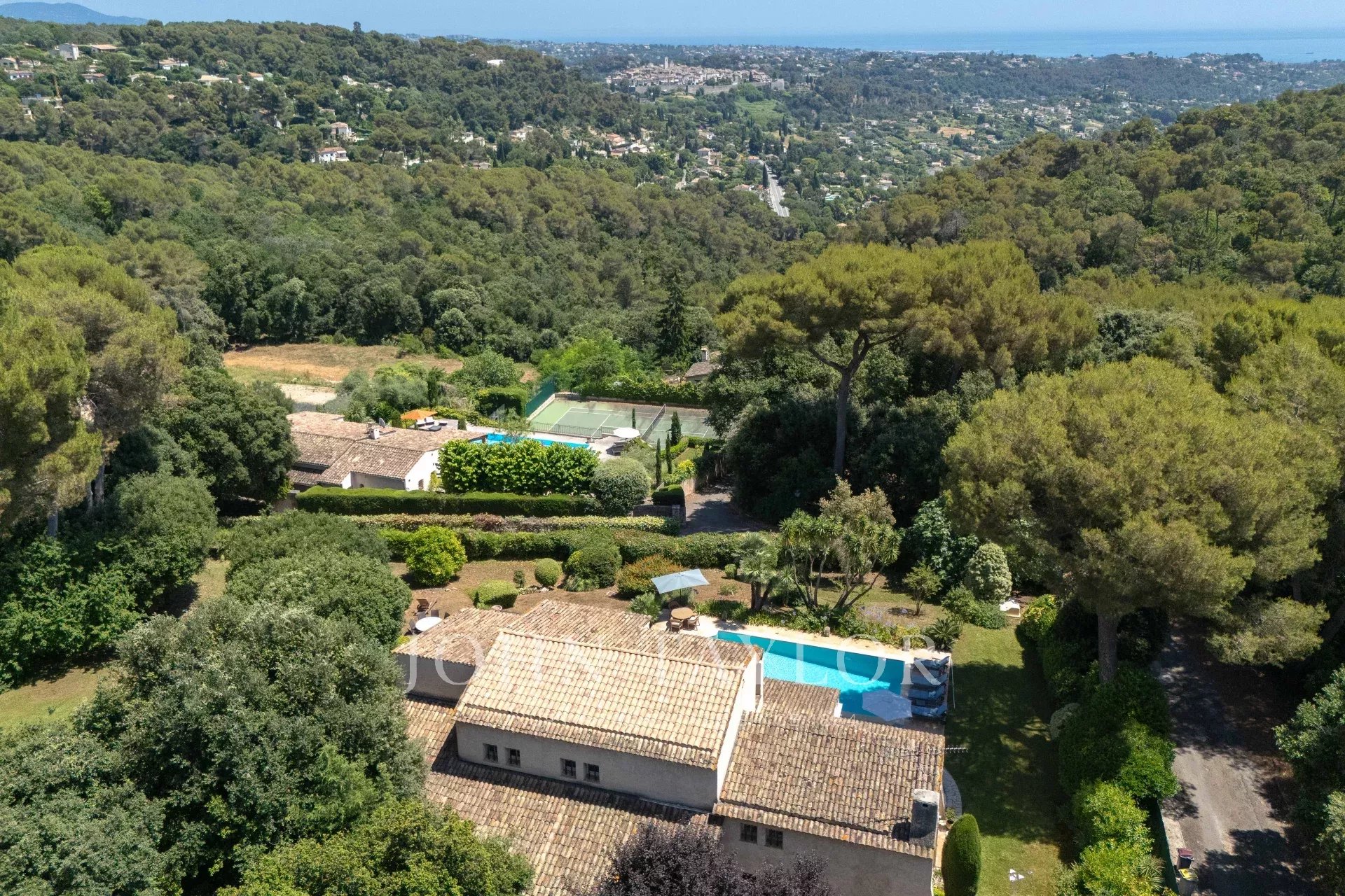 En una de las zonas más solicitadas de nuestra hermosa región, en la tranquilidad de las colinas residenciales, esta propiedad familiar de unos 235 m² ofrece un marco excepcional en un terreno ajardinado de 2.850 m² con piscina. Goza de vistas ininterrumpidas sobre el emblemático pueblo de Saint-Paul de Vence hasta el mar, así como de un sol óptimo durante todo el día.