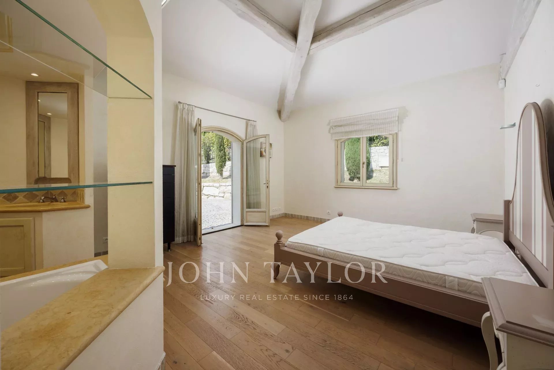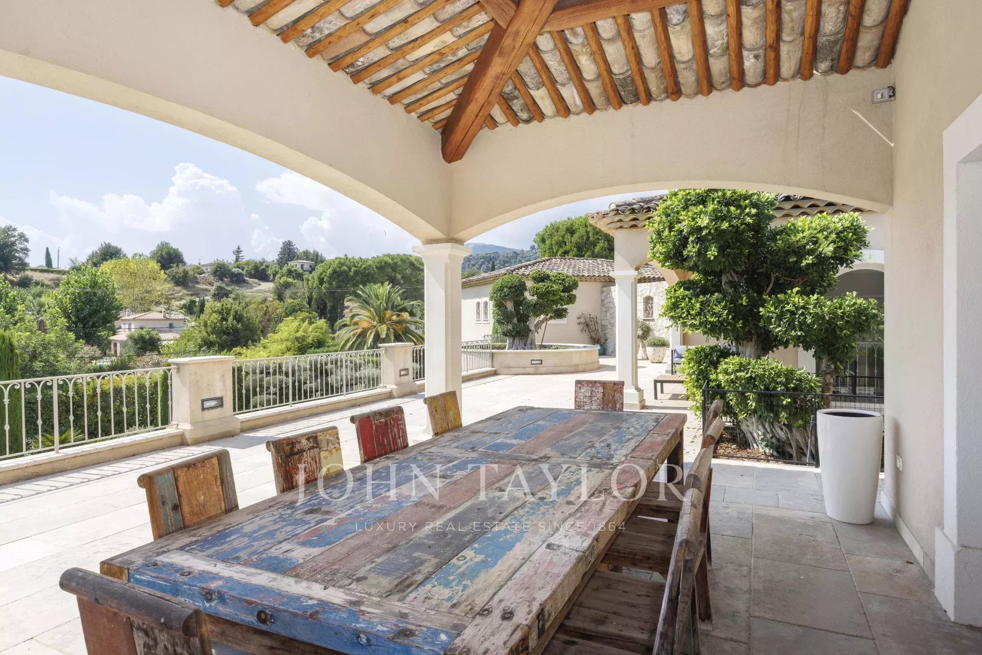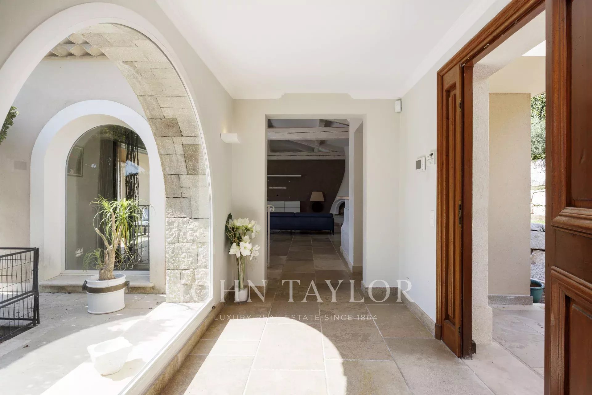 Situada a dos pasos del pueblo de Saint-Paul de Vence, esta opulenta propiedad de unos 285 m² + garaje para 7 coches goza de un entorno tranquilo y residencial y de 2.600 m² de jardines con piscina infinita climatizada.