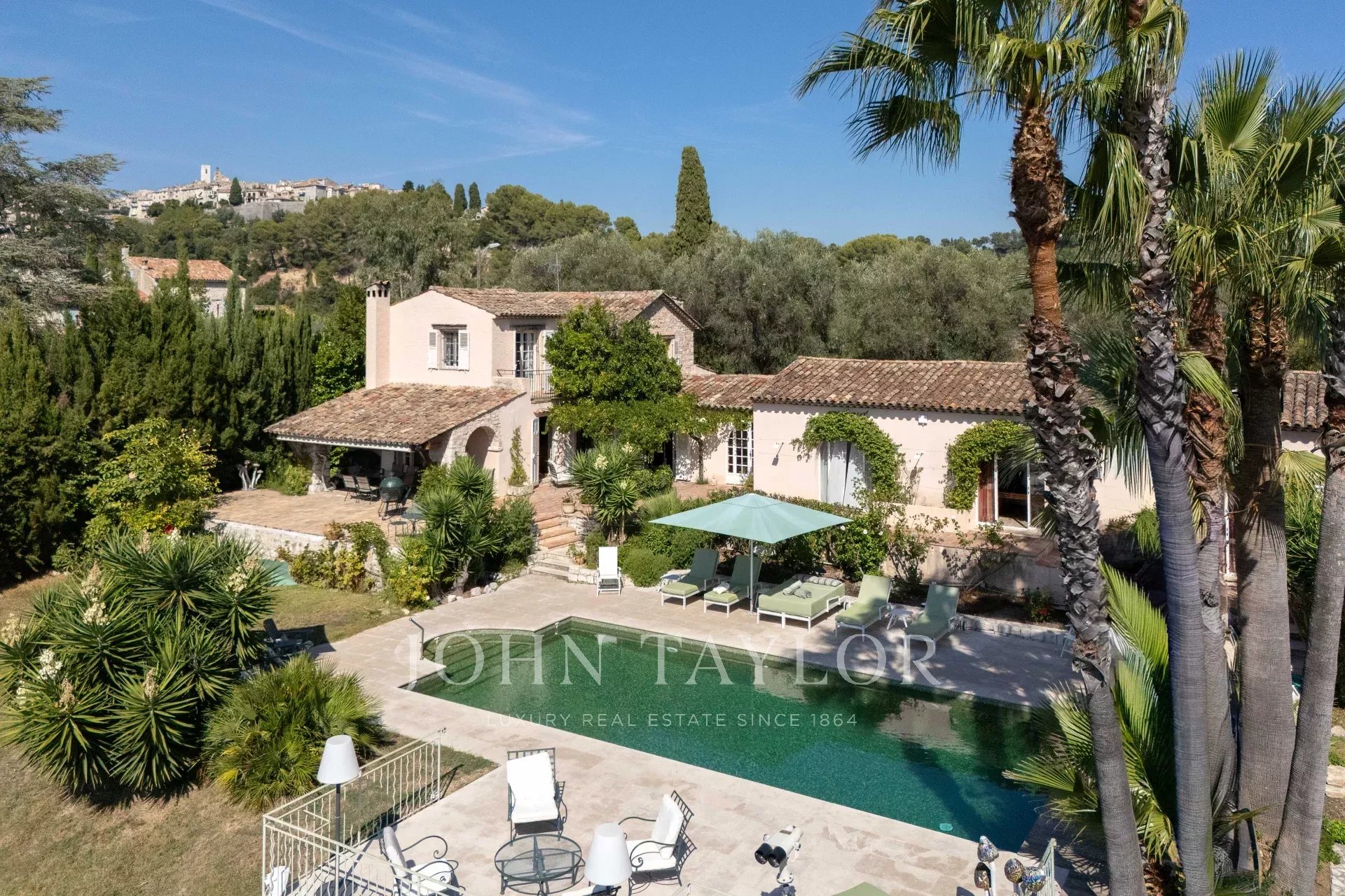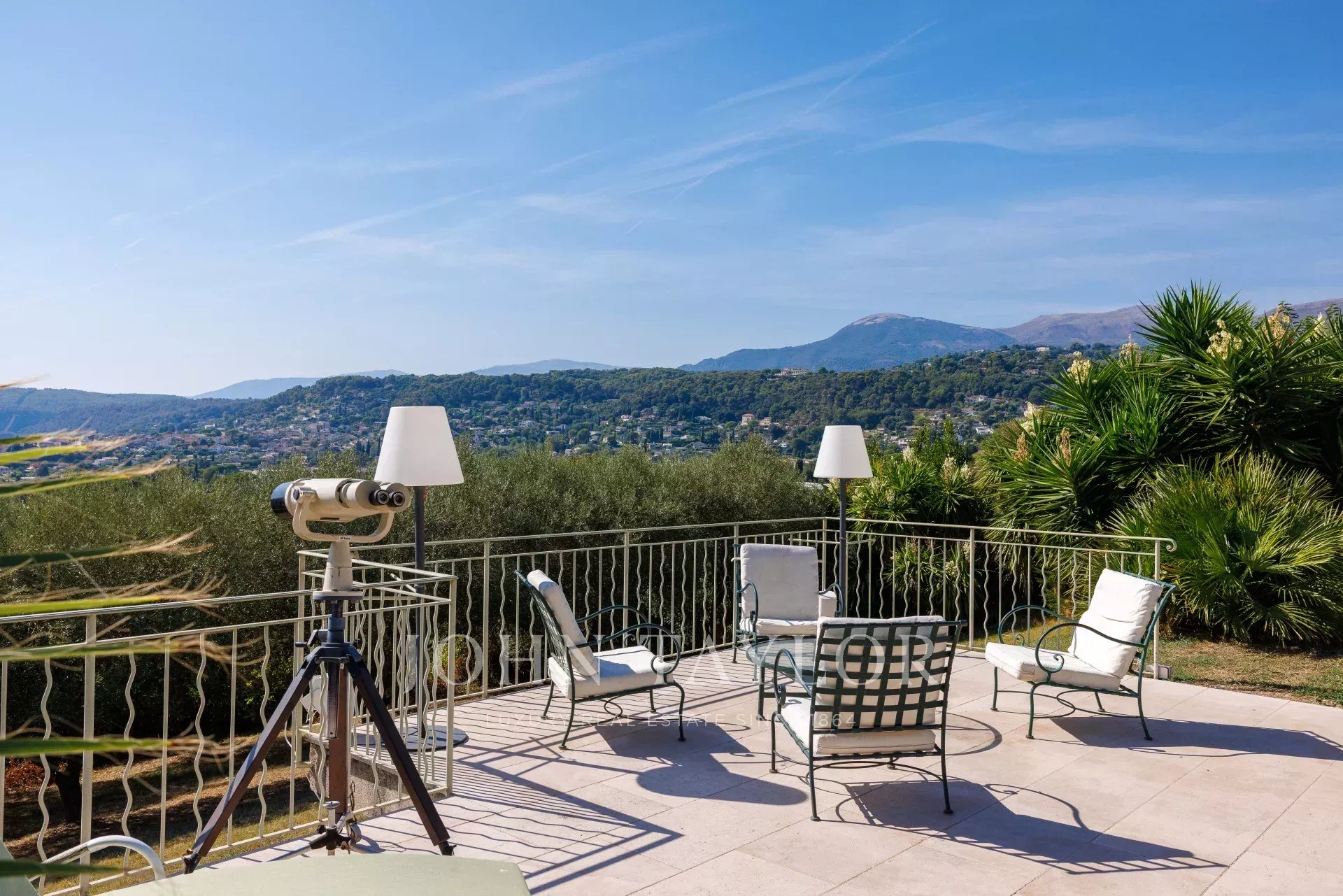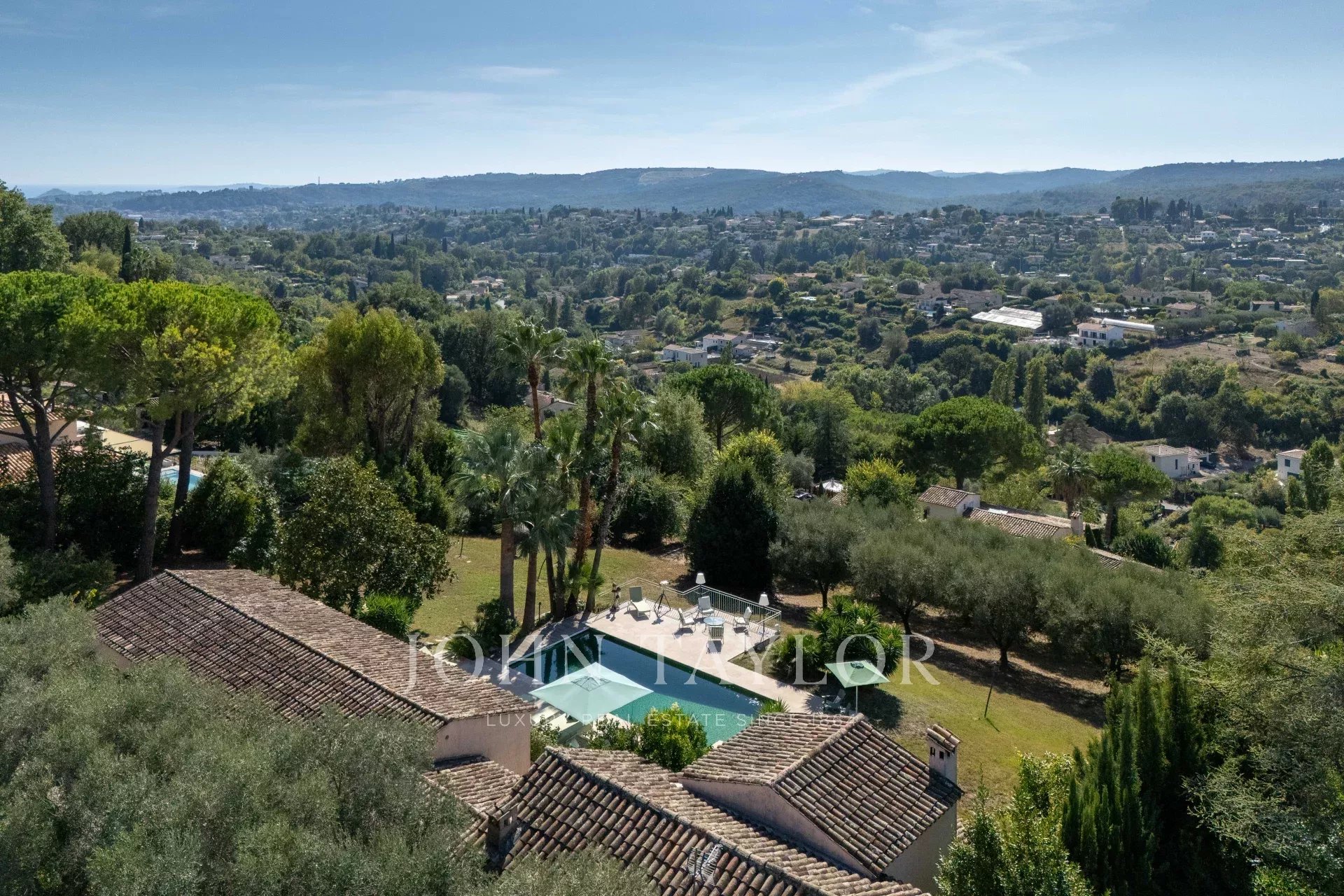 Idealmente situada cerca del pintoresco pueblo de Saint-Paul de Vence, en lo alto de una cresta con orientación suroeste y este, esta suntuosa y encantadora villa de unos 244 m² se encuentra en una generosa parcela de casi 5.000 m², ofreciendo una privacidad inigualable. Goza de una vista panorámica incomparable de las puestas de sol de Saint-Paul.