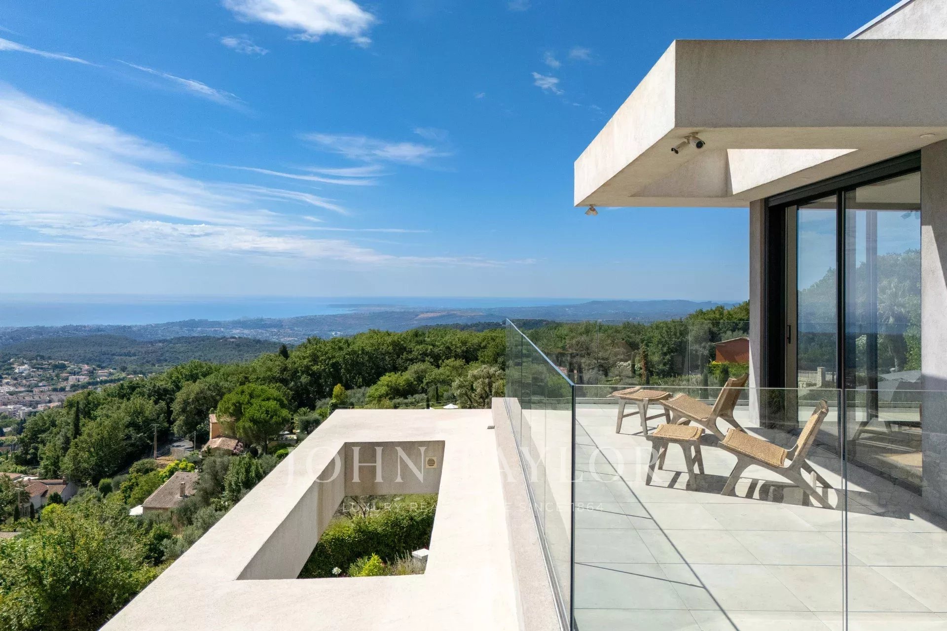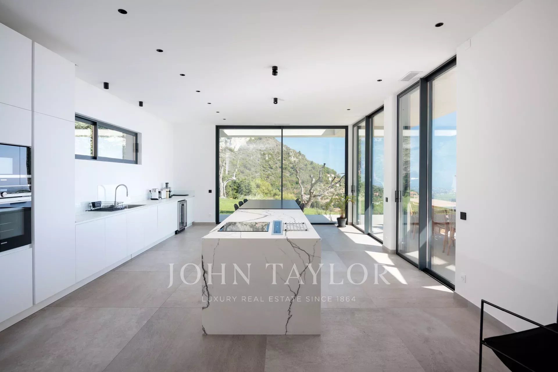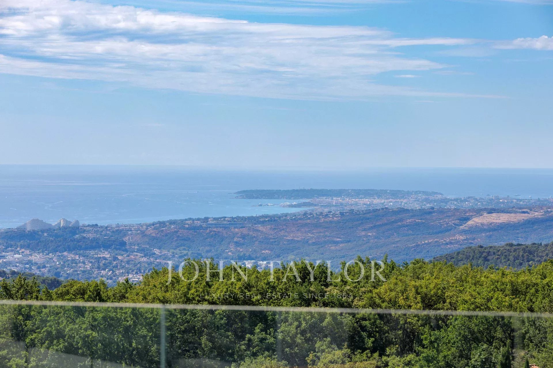 Esta magnífica villa contemporánea de reciente construcción (355 m²) goza de una ubicación ideal en las colinas de Vence, en el corazón de 4.000 m² de terreno ajardinado. Ofrece un marco excepcional con vistas de postal al mar -desde el Cap d'Antibes hasta la Baie des Anges y el Cap Ferrat- y a las montañas circundantes.