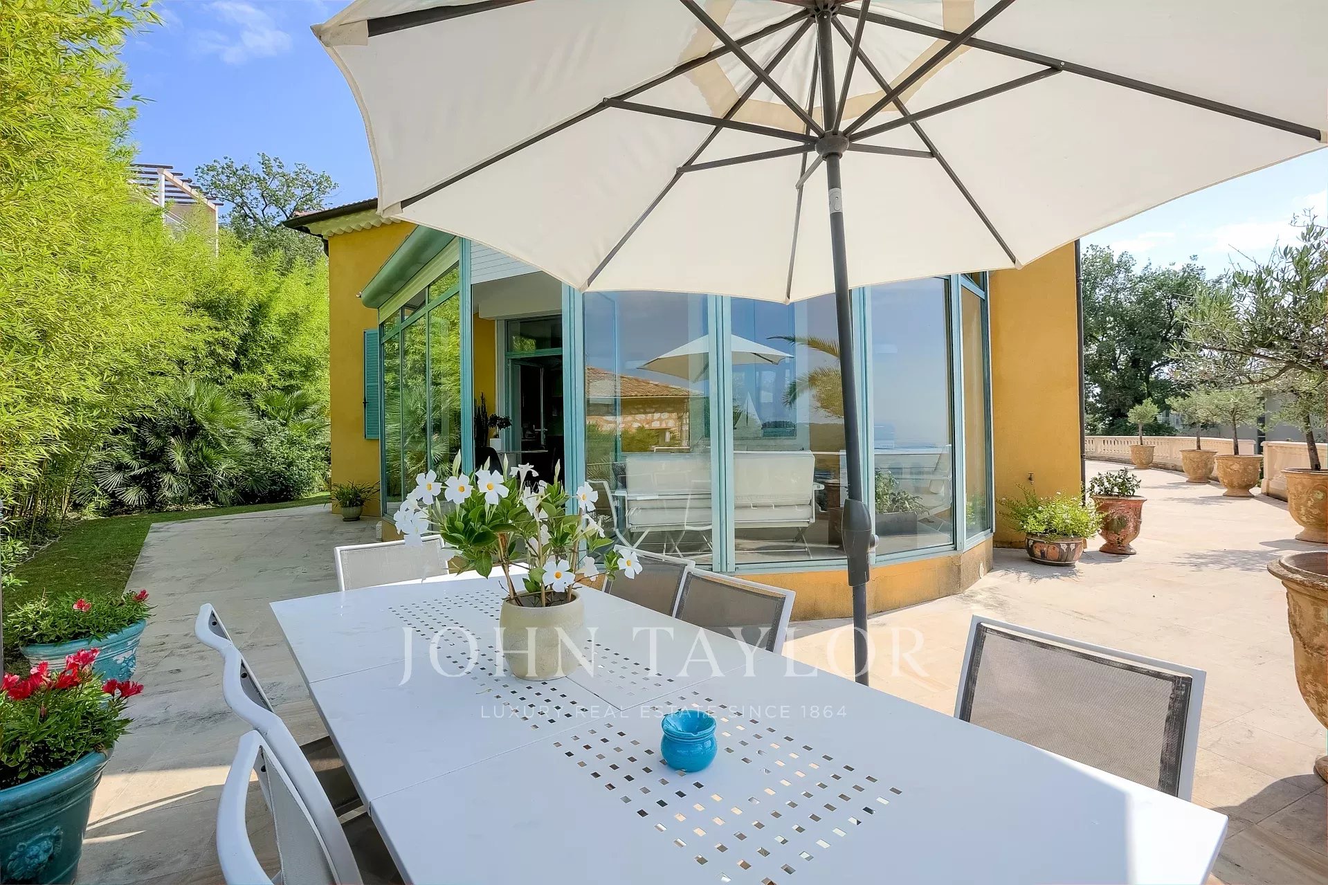 Situado a unos cientos de metros del centro de la ciudad, a poca distancia de las tiendas locales y, sin embargo, en la mayor paz y tranquilidad, esta hermosa propiedad de estilo antiguo de alrededor de 320 m² cuenta con magníficas características y una vista al mar, situado en un extenso terreno ajardinado de alrededor de 2.850 m² con una pista de petanca y una cubierta, piscina climatizada infinito.