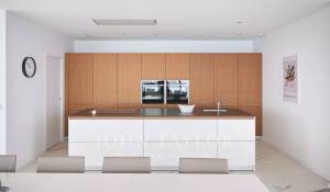 Con una superficie de unos 340 m², la planta baja consta de un amplio salón abierto a la terraza, una cocina americana, un comedor y un dormitorio principal con vestidor. En el nivel inferior hay seis dormitorios con baño, incluido un apartamento independiente.