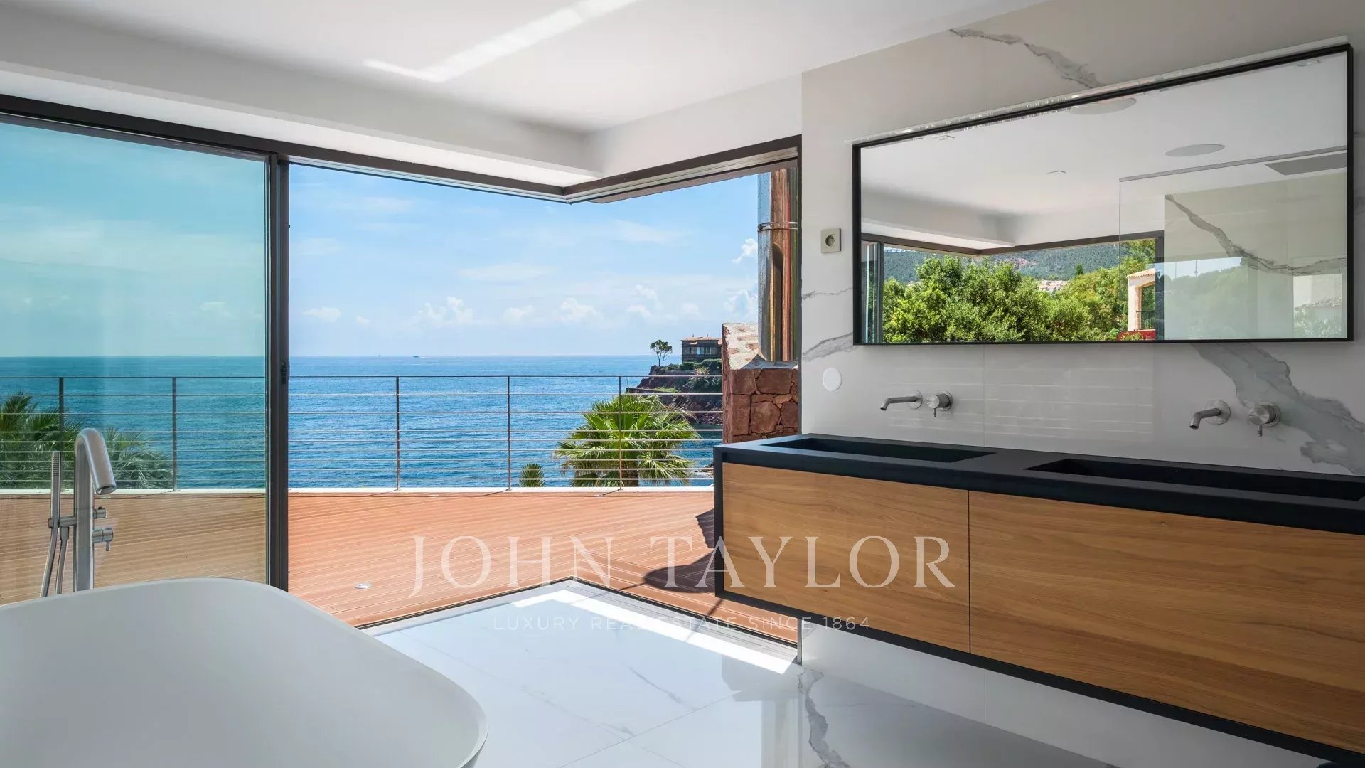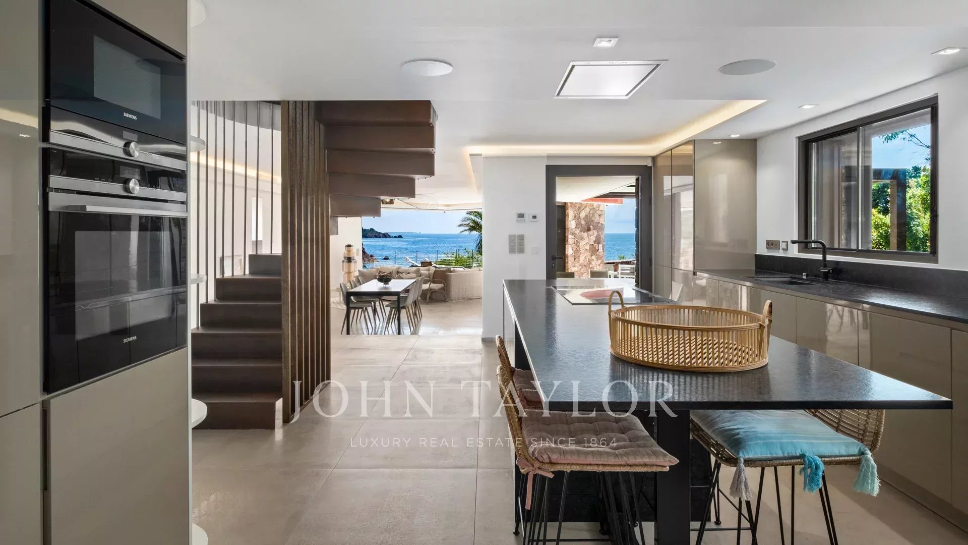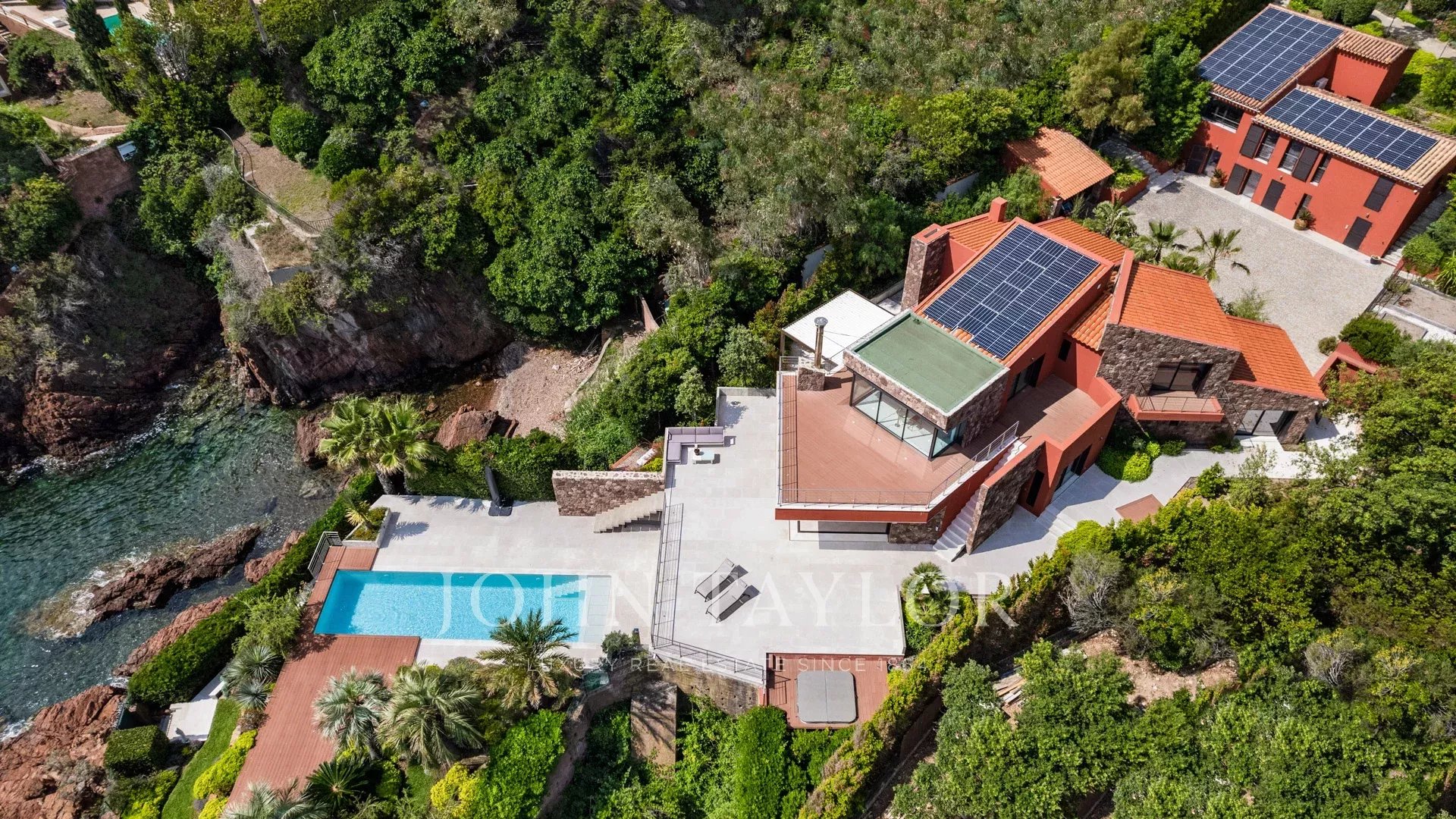 En el corazón de una parcela de 2827 m², sublime propiedad contemporánea frente al mar de 420 m² que comprende una villa principal y una casa de huéspedes, ofreciendo espectaculares vistas y acceso privado al mar.