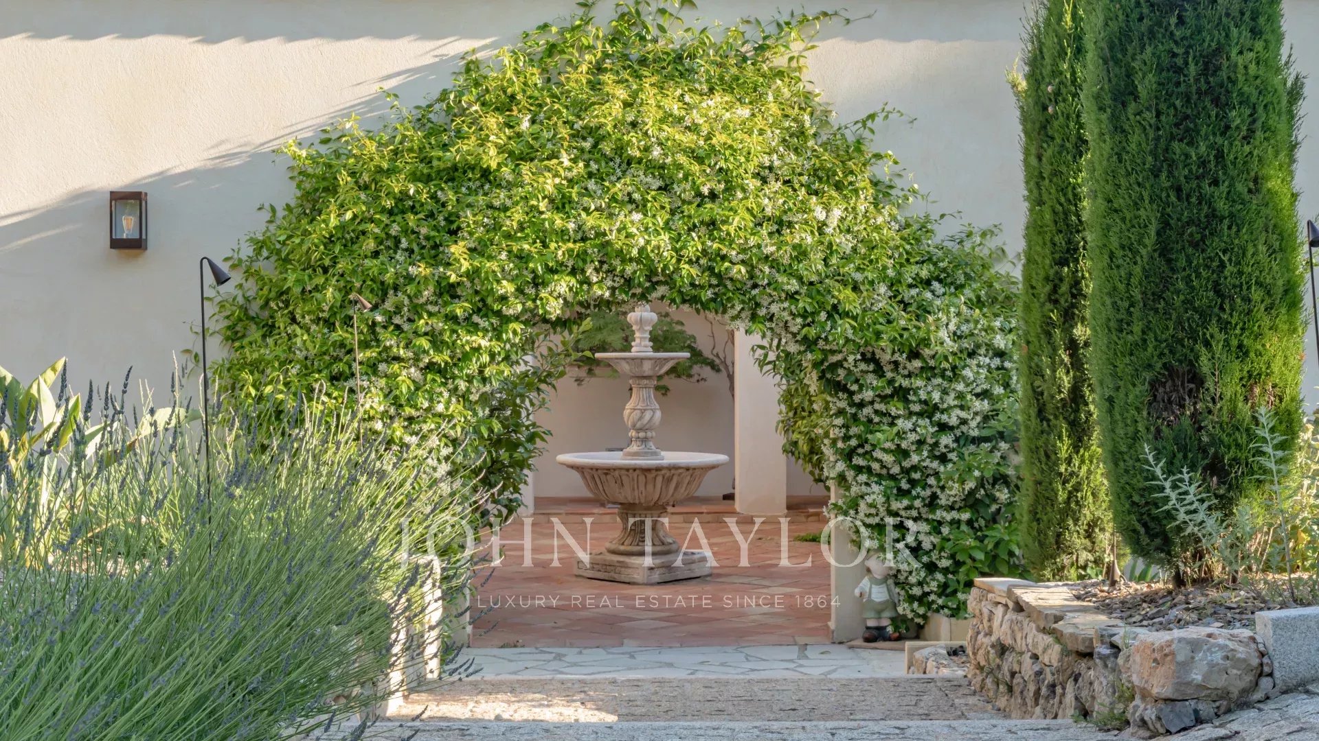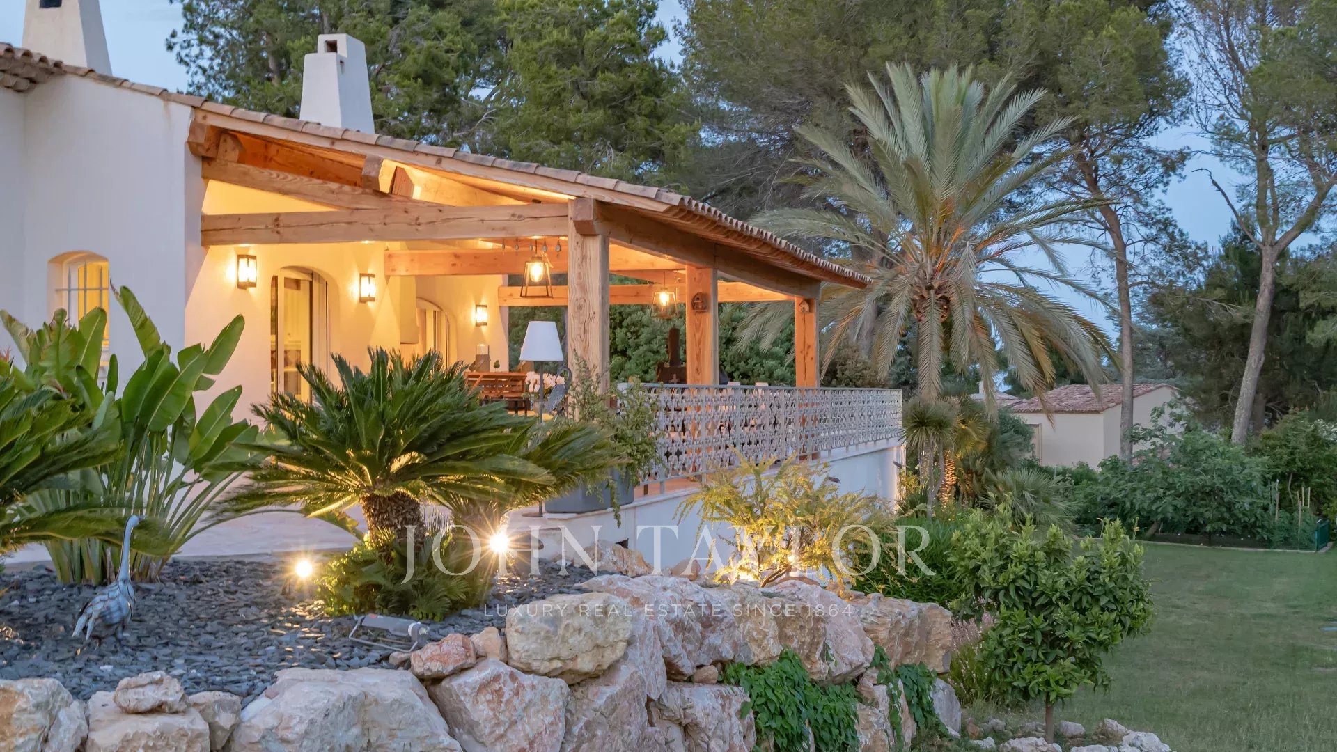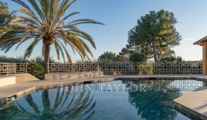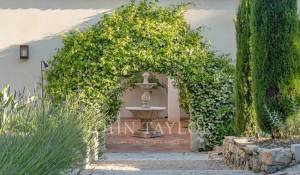 El magnífico terreno vallado y ajardinado, plantado con especies mediterráneas, olivos y un huerto, está equipado con un sofisticado sistema de riego e iluminación, creando un entorno de vida excepcional.