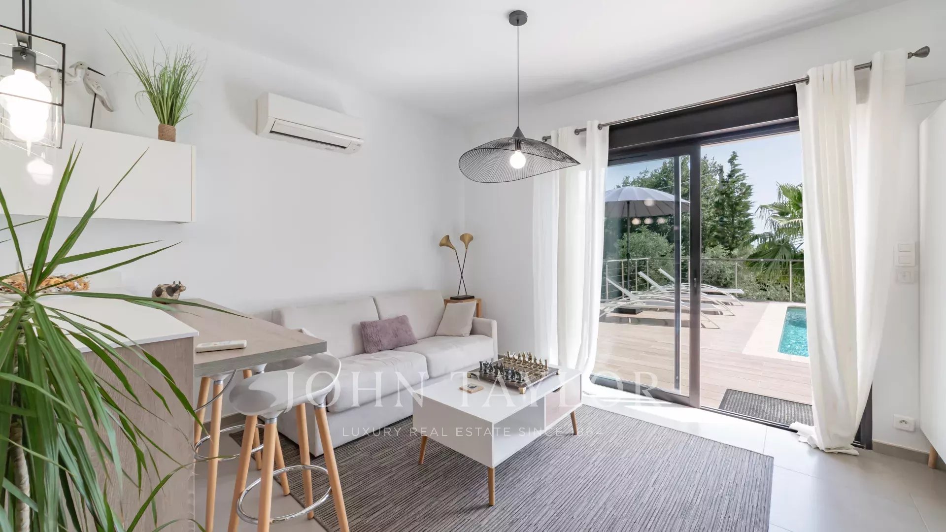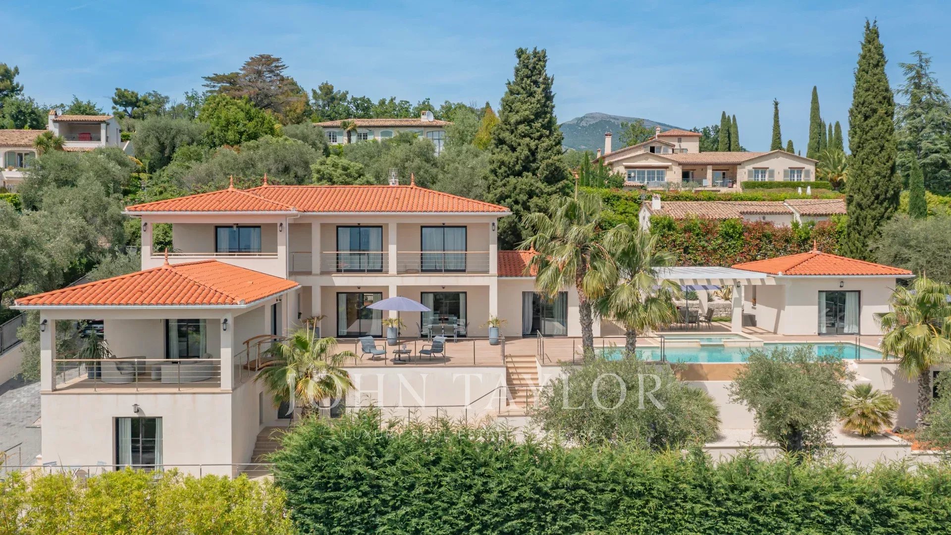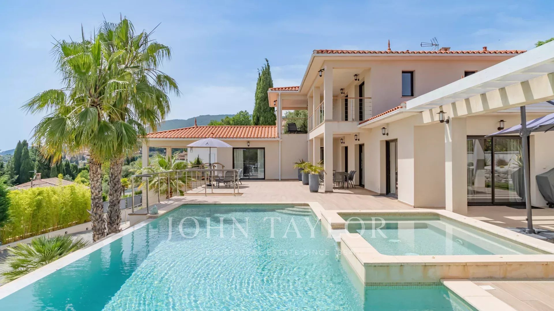 Situado en un terreno de aprox. 1700 m² con magníficas vistas al mar, hermosa nueva villa contemporánea con aprox. 280 m² de espacio habitable en 3 niveles: Hall de entrada con WC, amplio salón amueblado, amplio comedor, cocina contigua totalmente equipada que da a una gran terraza con piscina y jacuzzi. Pool House - Estudio independiente con aseo y ducha, ducha exterior y aseo.
