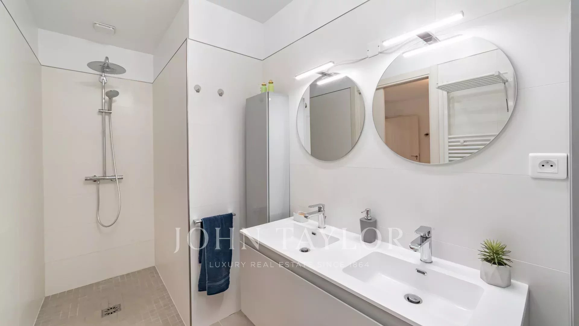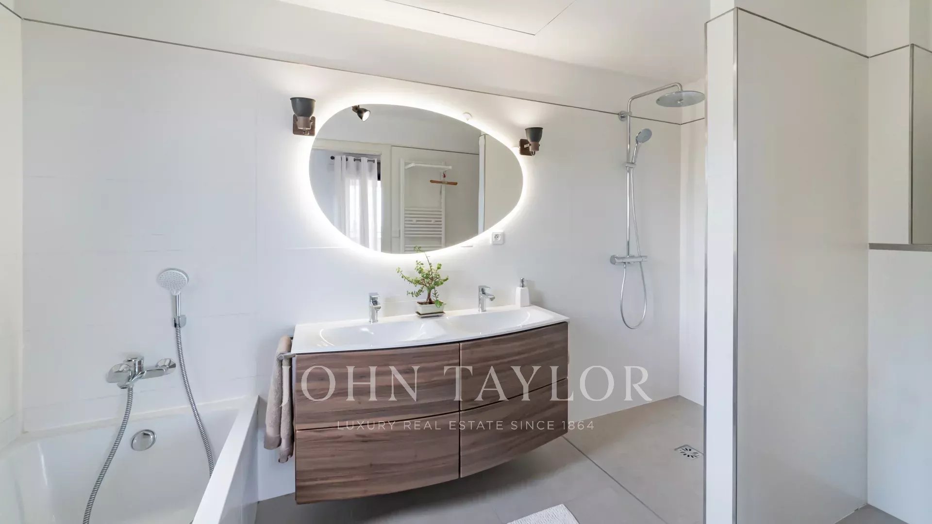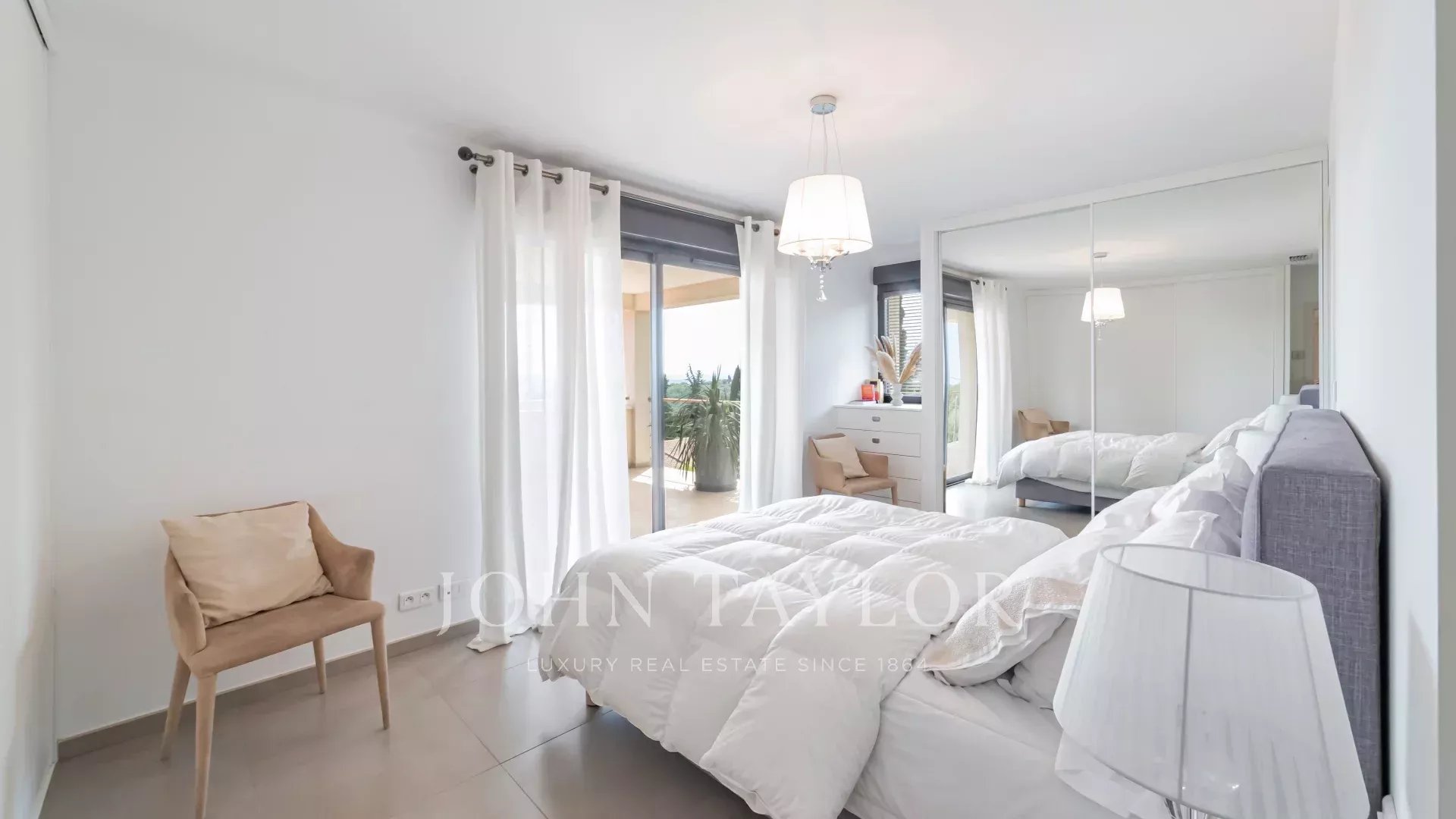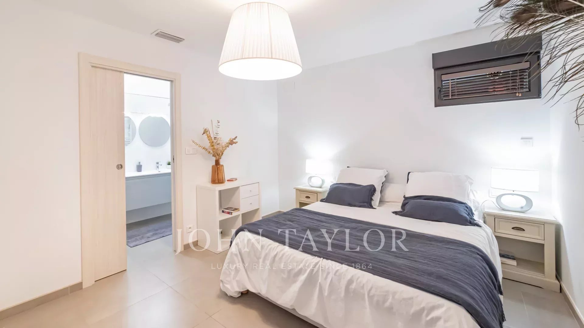 1ª planta: dormitorio principal con acceso a una terraza cubierta con 2 vestidores, 1 cuarto de baño con ducha, WC separado - 1 estudio con acceso a una terraza - 1 dormitorio con cuarto de baño, ducha y WC FR.