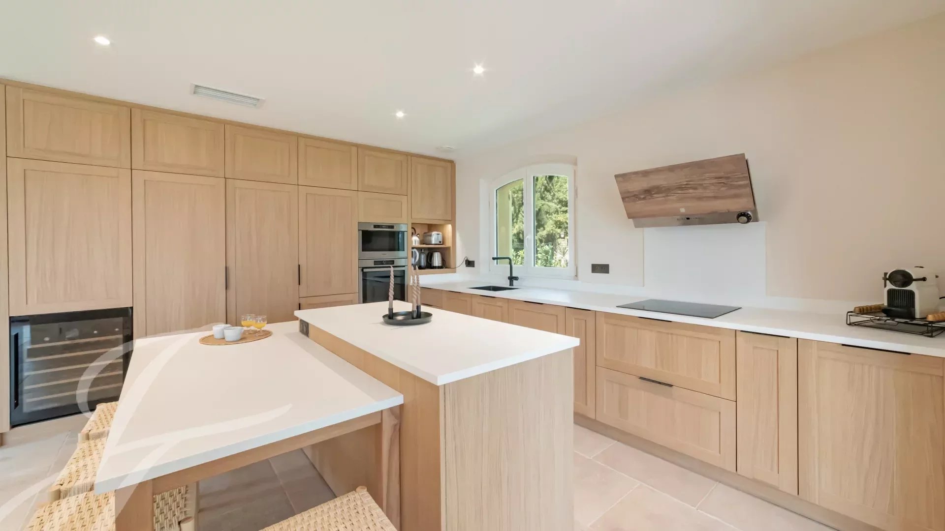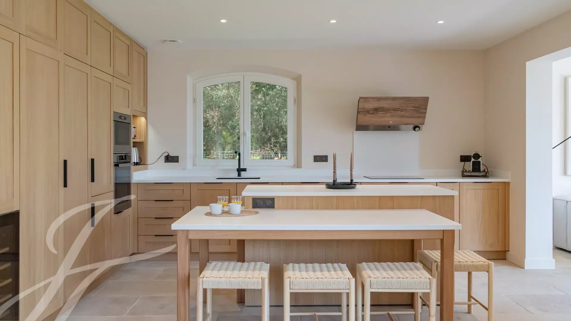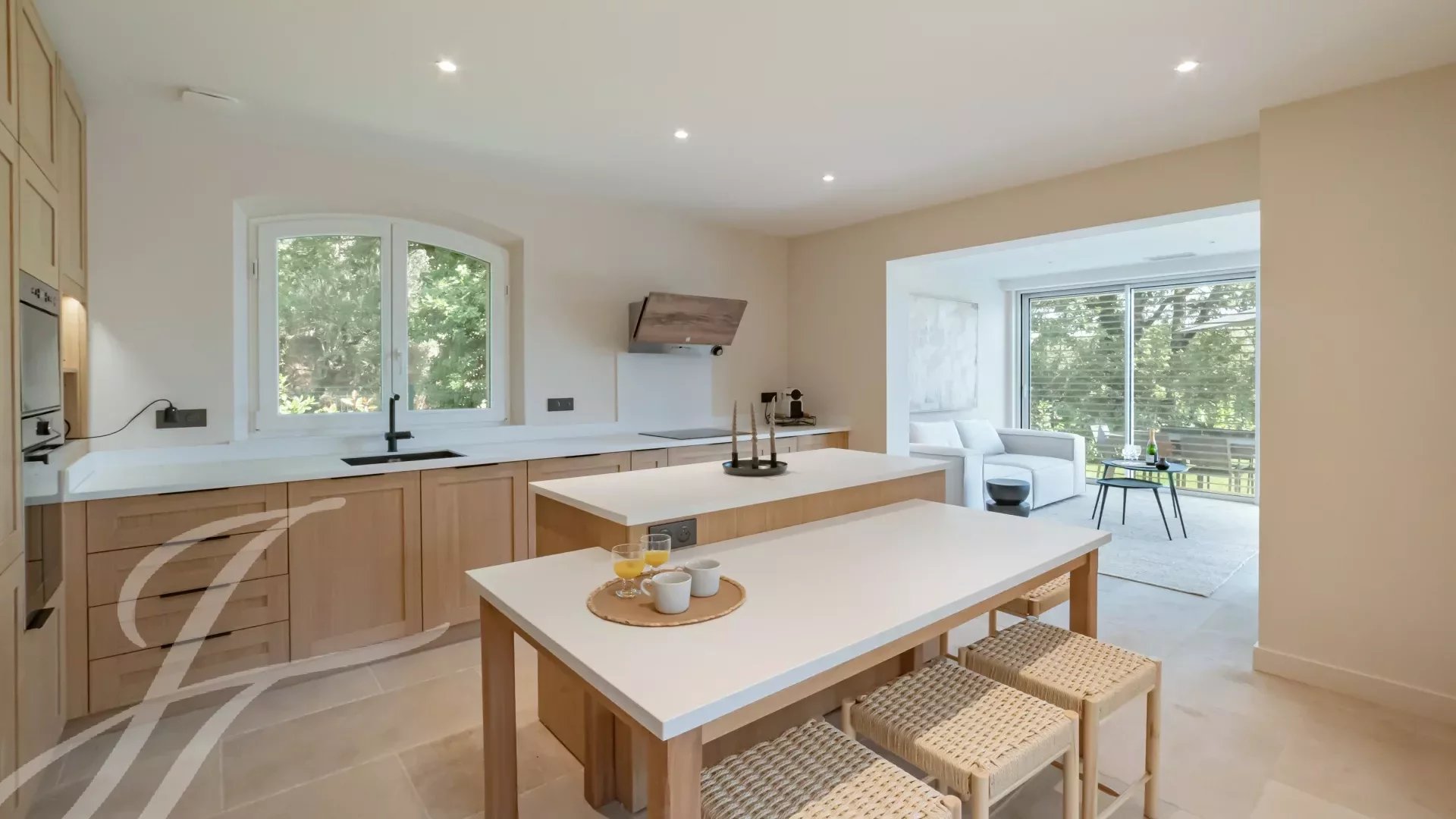 Los materiales utilizados en esta vivienda son naturales y nobles: piedra de Borgoña, suelos de parqué macizo y paredes encaladas. Una sutil armonía de materiales únicos y detalles elegantes que cautivará a los amantes de la estética y el confort refinado.