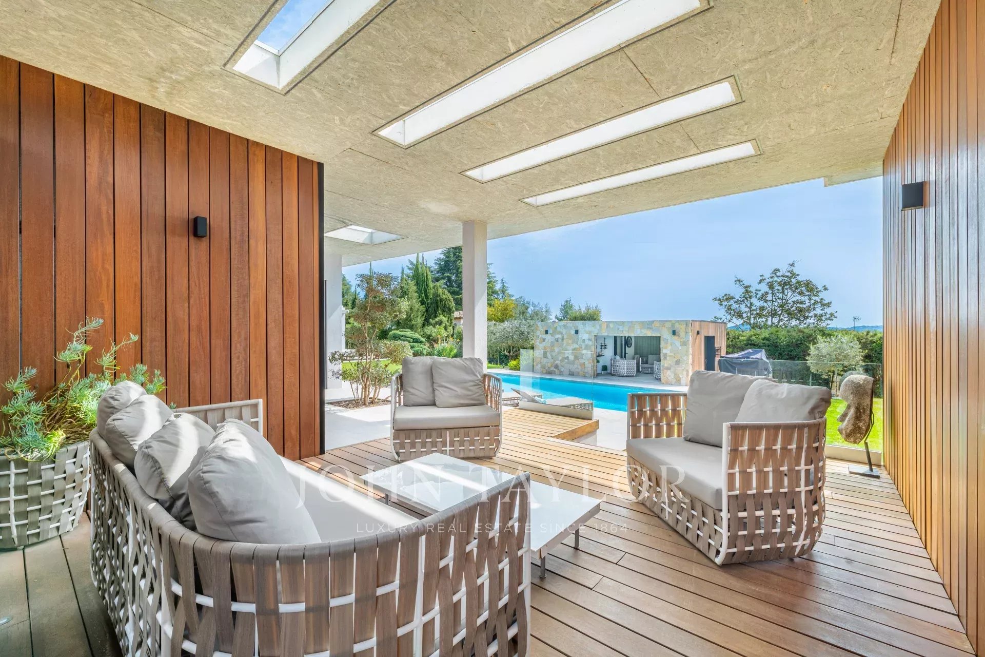 Situado en absoluta calma, y cerca del famoso pueblo medieval de Biot y Valbonne, villa moderna en un barrio tranquilo y seguro.