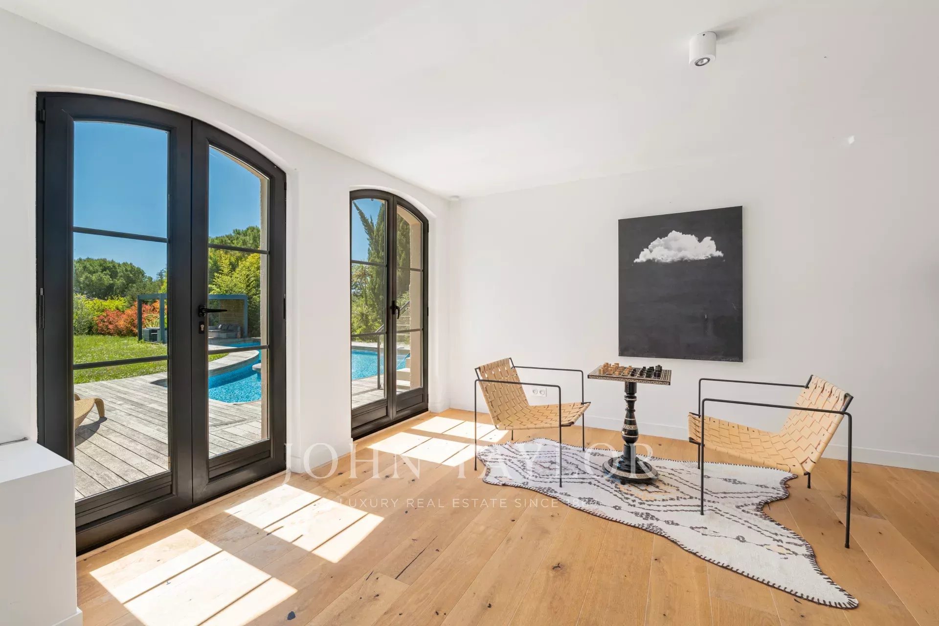 La propiedad también está rodeada de prestigiosos campos de golf, y se encuentra a unos 30 minutos de Cannes y del aeropuerto de Niza, combinando tranquilidad, comodidad y excelente accesibilidad.