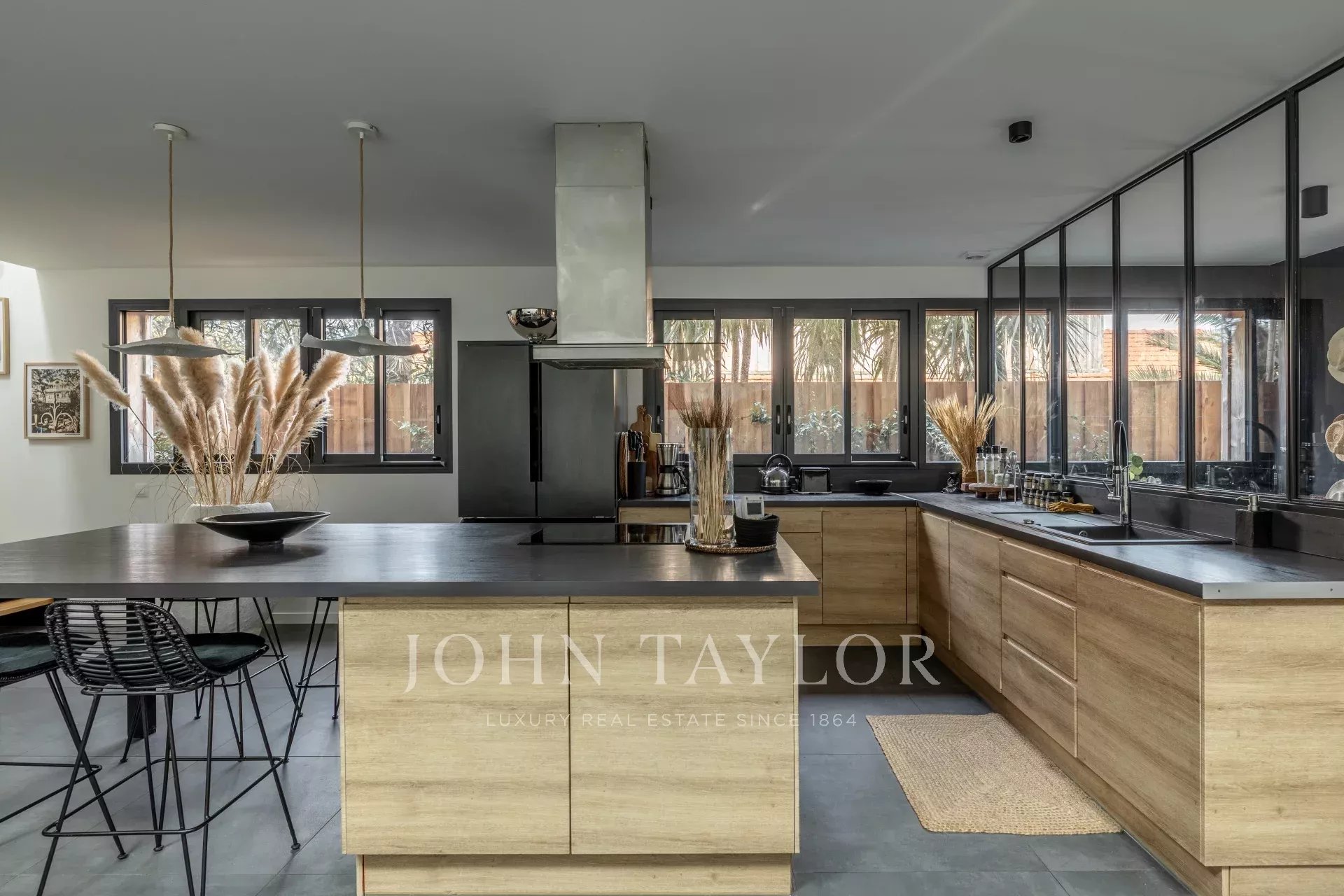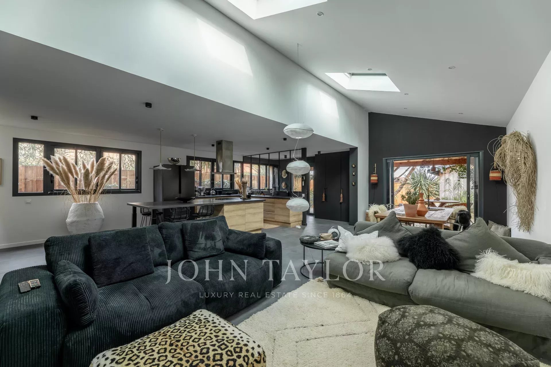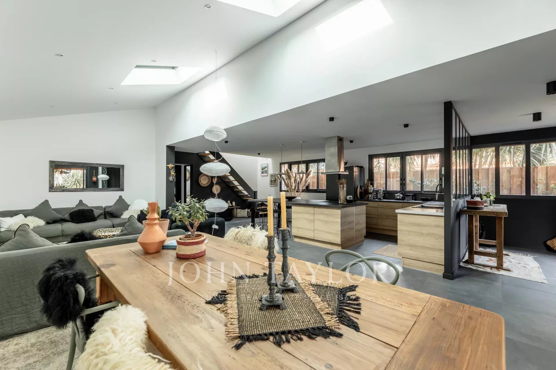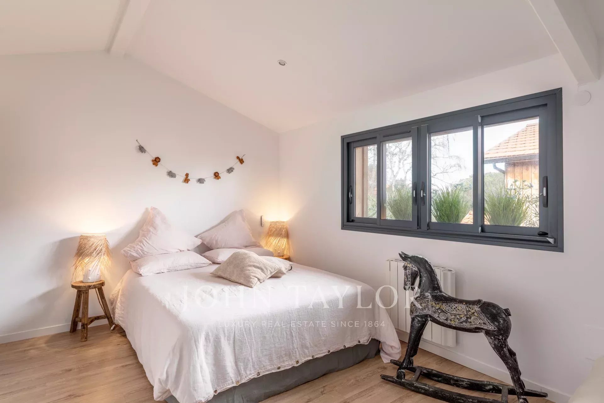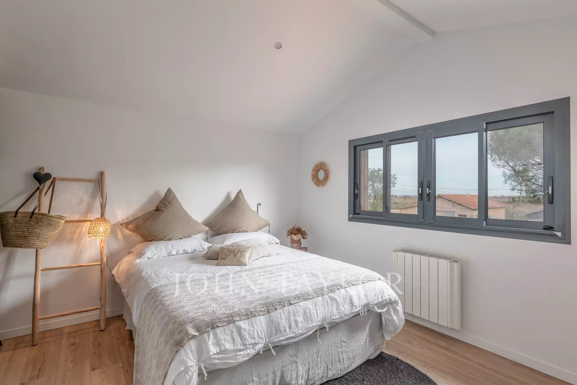 Descubra esta casa de estilo cabaña de pescadores, que combina autenticidad y modernidad. Situada a solo 100 metros del puerto de La Teste y al lado de Les Prés Salés, esta propiedad reciente le conquistará por su revestimiento de madera y su interior decorado con gusto.