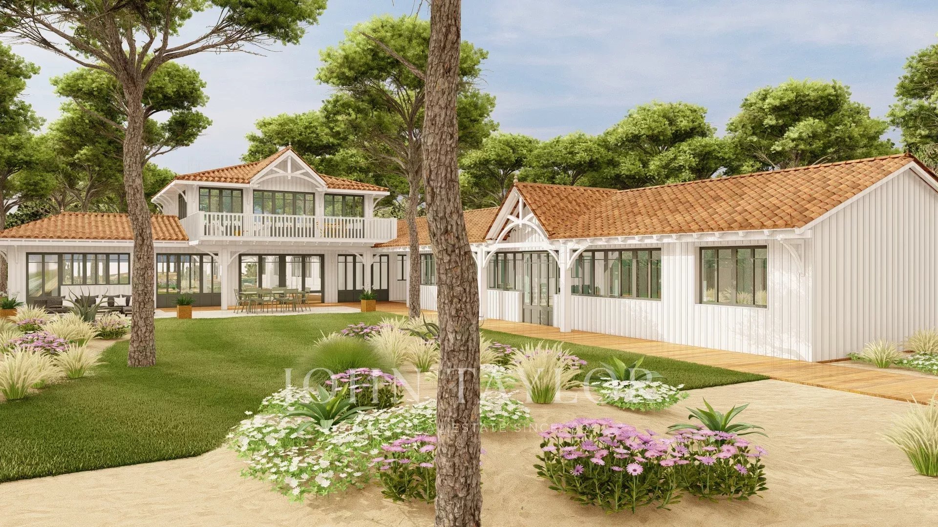 Esta parcela captura el espíritu de Cap Ferret, con su predominio de pinos, su proximidad a la duna y el sonido de las olas que se escucha desde todos los lados.