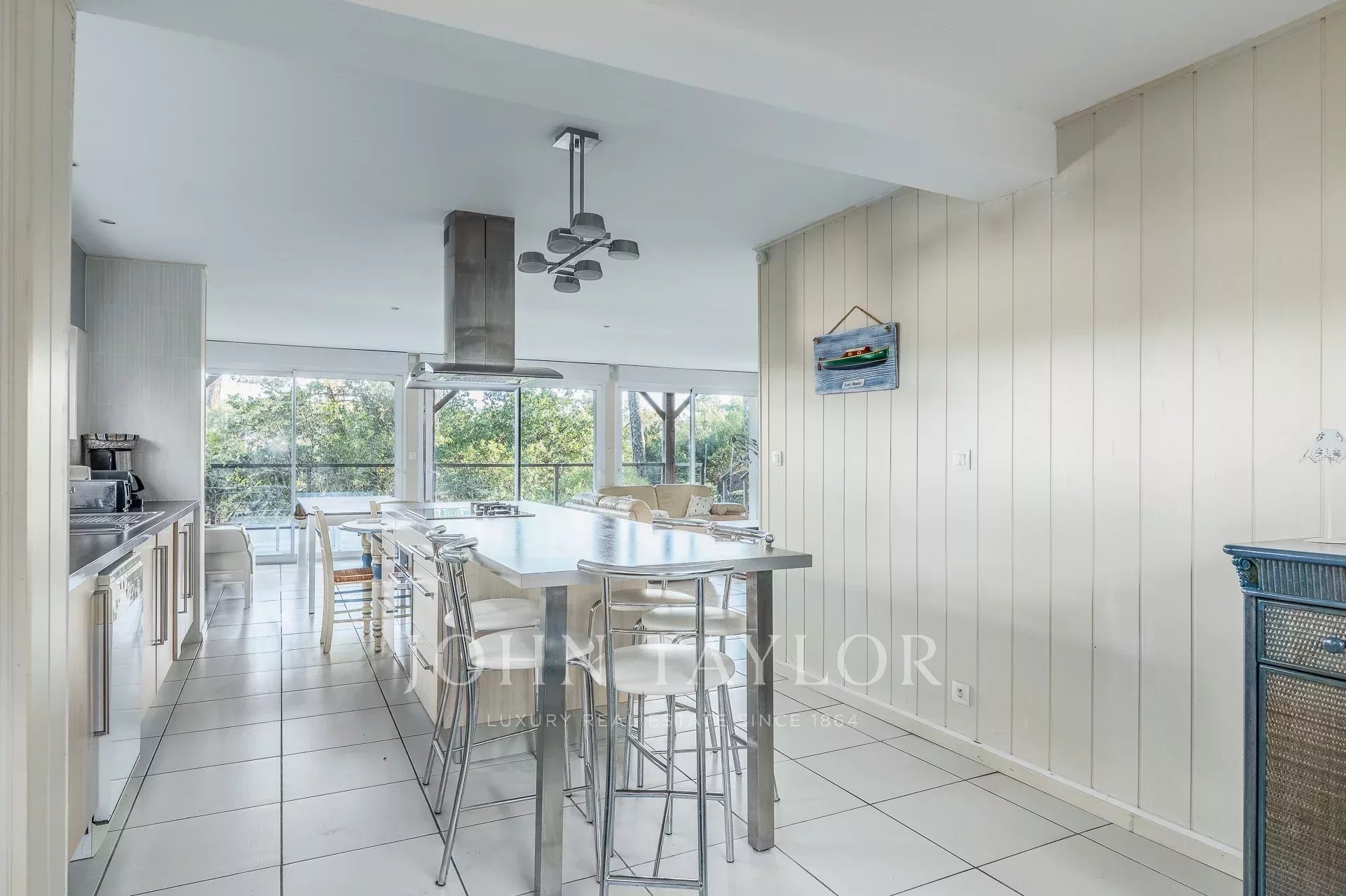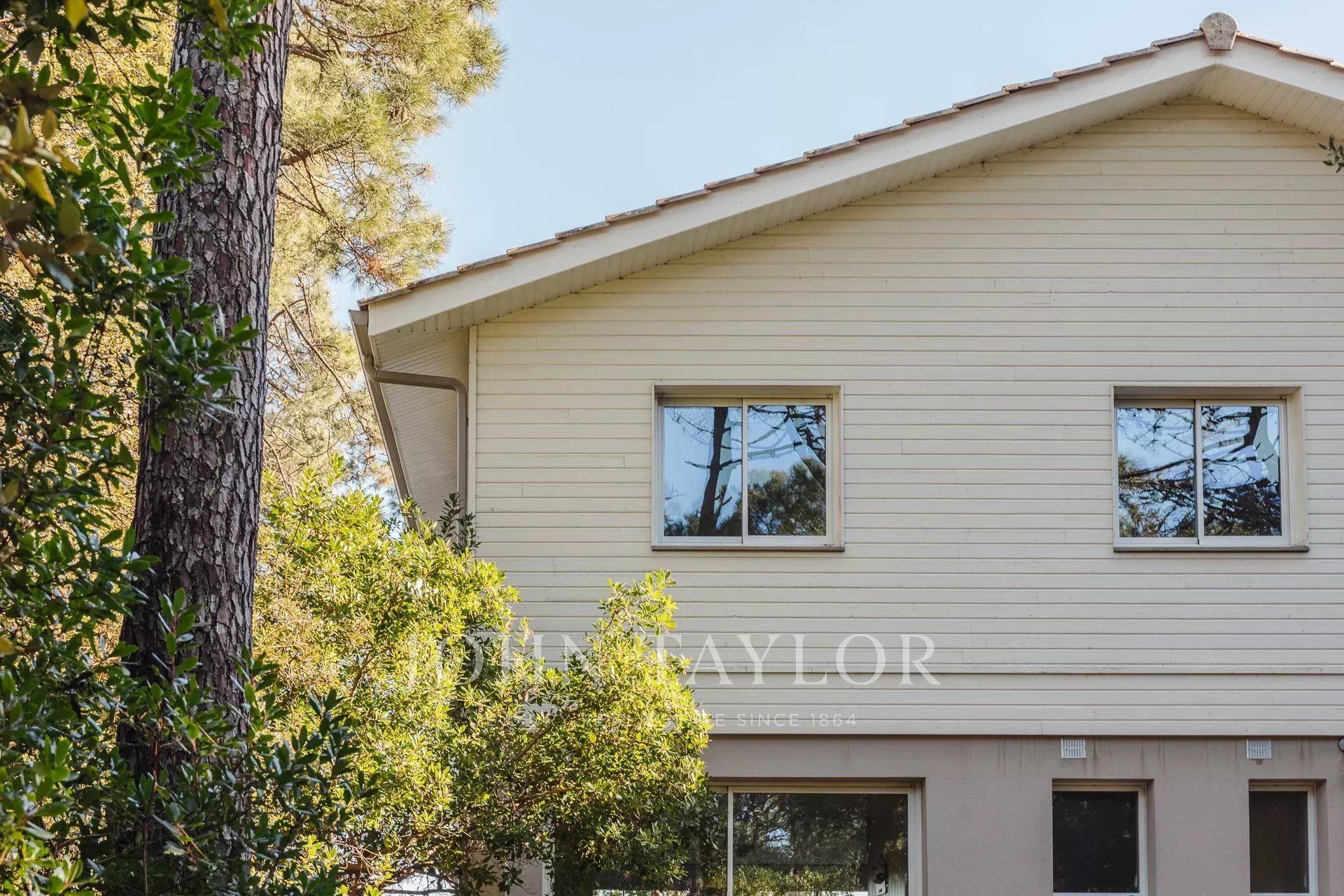 John Taylor Cap Ferret presenta esta magnífica oportunidad. Situada en una tranquila calle residencial con vistas al Port de la Vigne y frente al muelle, esta magnífica villa familiar de 240 m², enclavada en una espléndida parcela de 1.321 m², ofrece unas impresionantes vistas panorámicas de la marquesina. Enclavada en el corazón de un entorno verde y bañada por una luz espléndida, esta villa ofrece un entorno de vida excepcional. Consta de dos niveles separados de 120 m², cada uno con su propia terraza. Cada uno de estos niveles se convierte independientemente en un espacio de vida que comprende salón, sala de estar, cocina, 3 dormitorios, baño y aseo con ducha. Ideal para una familia grande o como una inversión de alquiler parcial, la villa también se puede volver a desarrollar para ofrecer amplias viviendas en dos niveles.