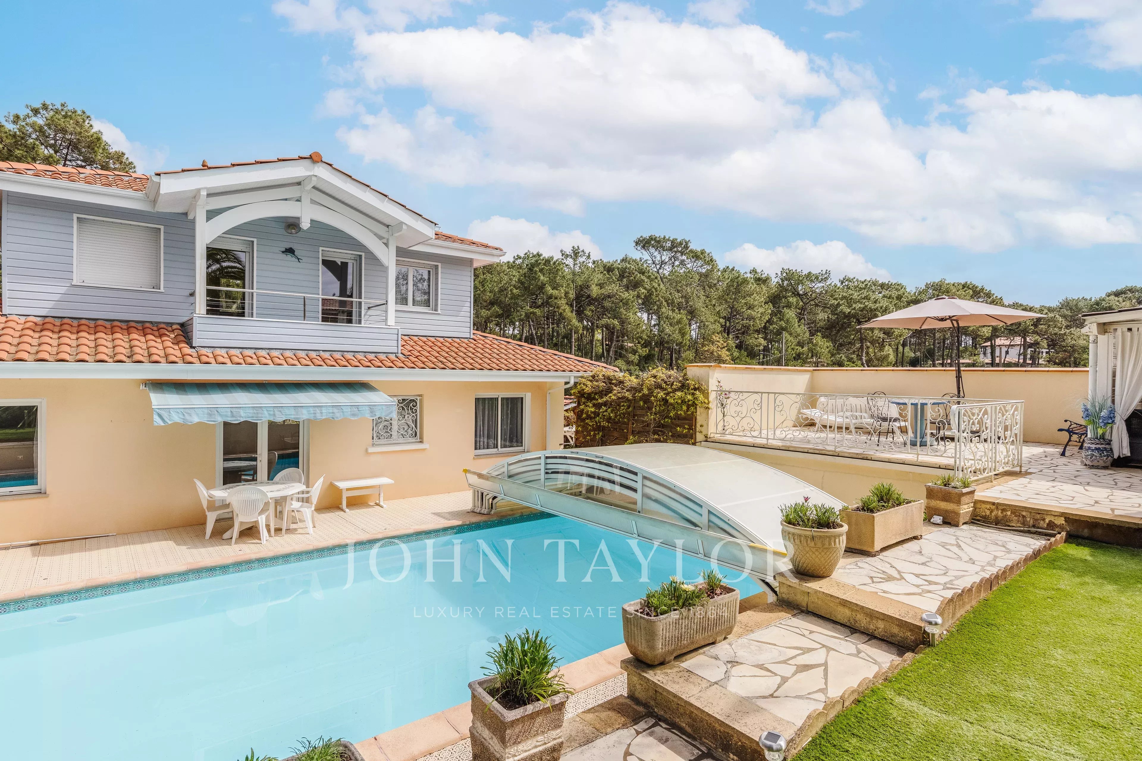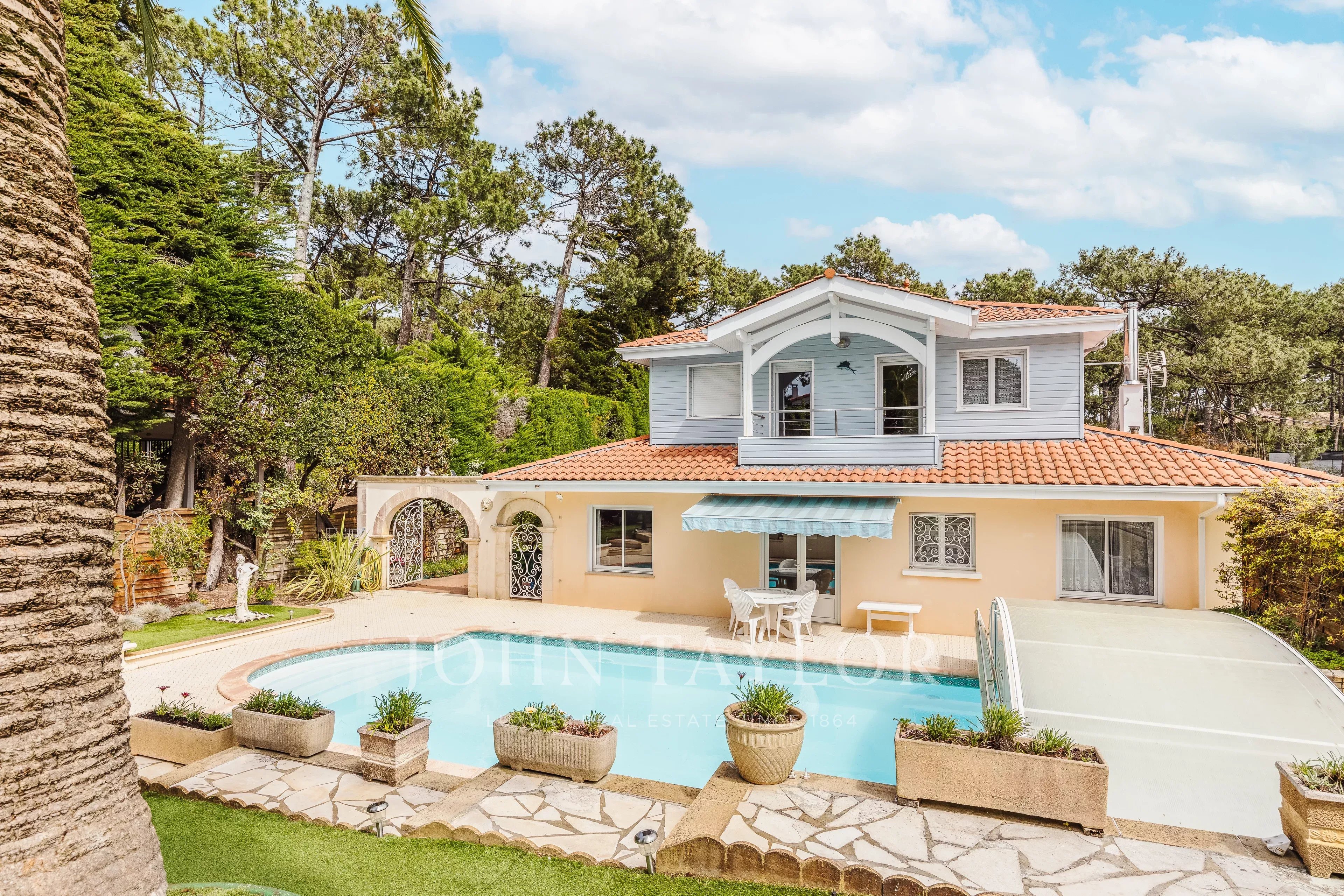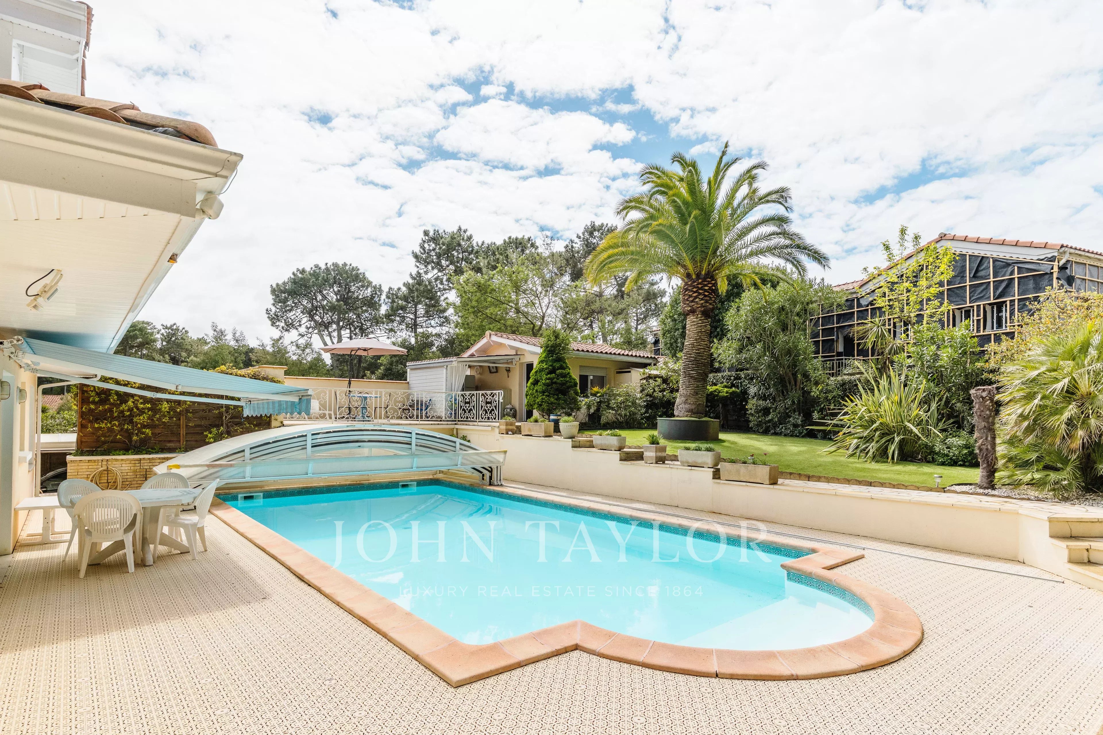 En el exterior, el entorno se presta completamente al arte de vivir del Bassin: una gran piscina para los largos días de verano, un jardín propicio para momentos compartidos, y un almacén que ofrece múltiples posibilidades — casa de huéspedes, taller o espacio independiente. Un amplio garaje completa este conjunto con muchas ventajas.