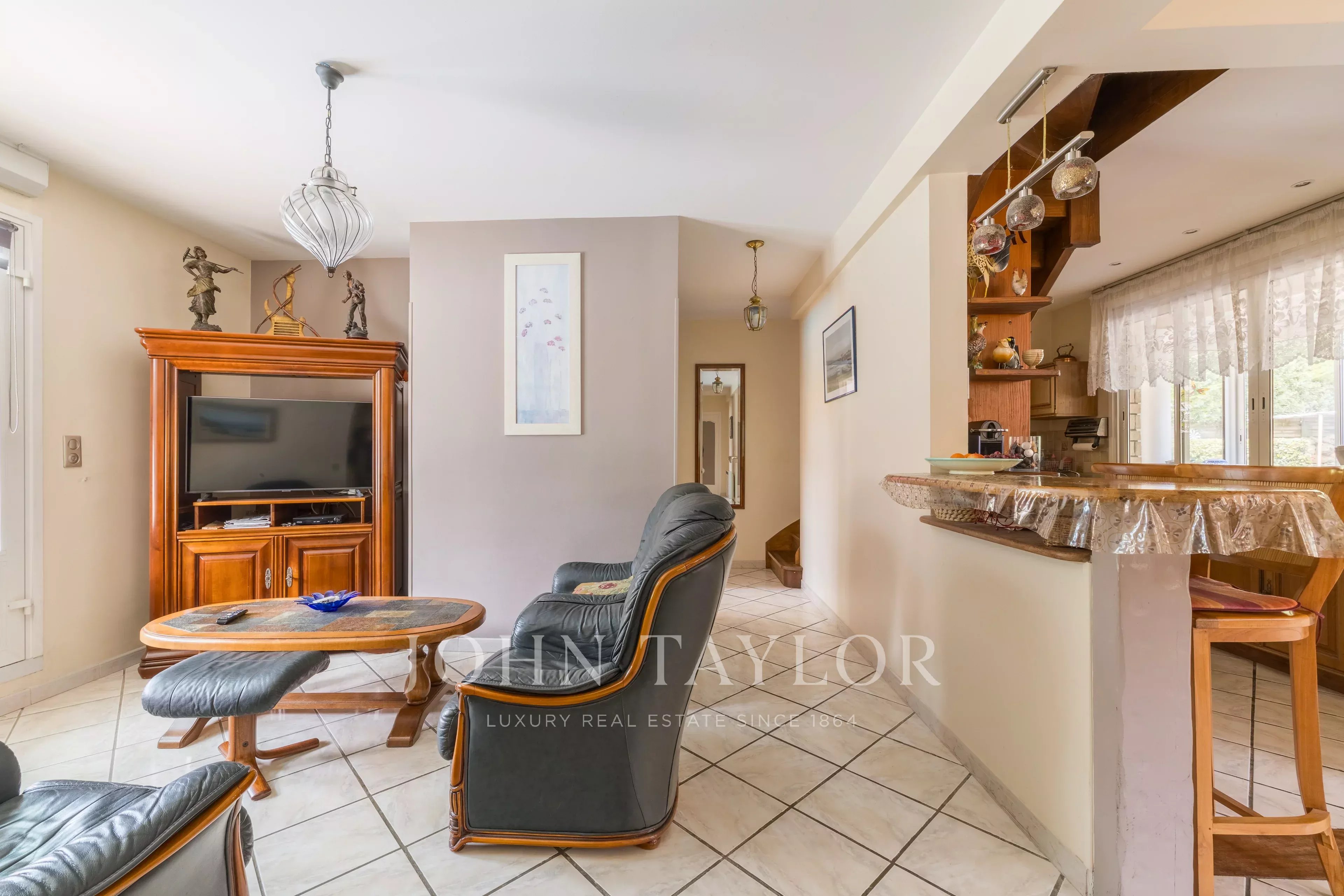 Desde la entrada, se revela el potencial del lugar. Con aproximadamente 140 m², la casa ofrece hoy cuatro habitaciones y espacios que invitan a una renovación elegante, pensada como un verdadero proyecto de vida. Cada espacio invita a imaginar una atmósfera cálida, entre el espíritu de una casa familiar y espacios de vida luminosos orientados hacia el jardín.