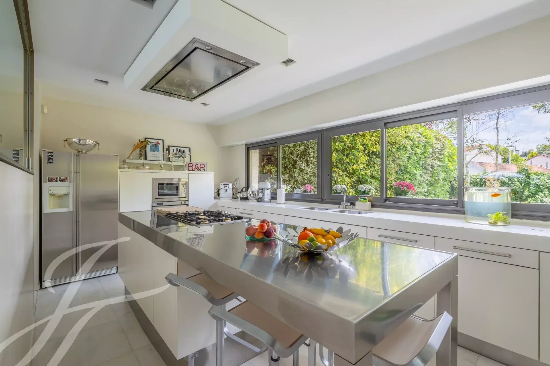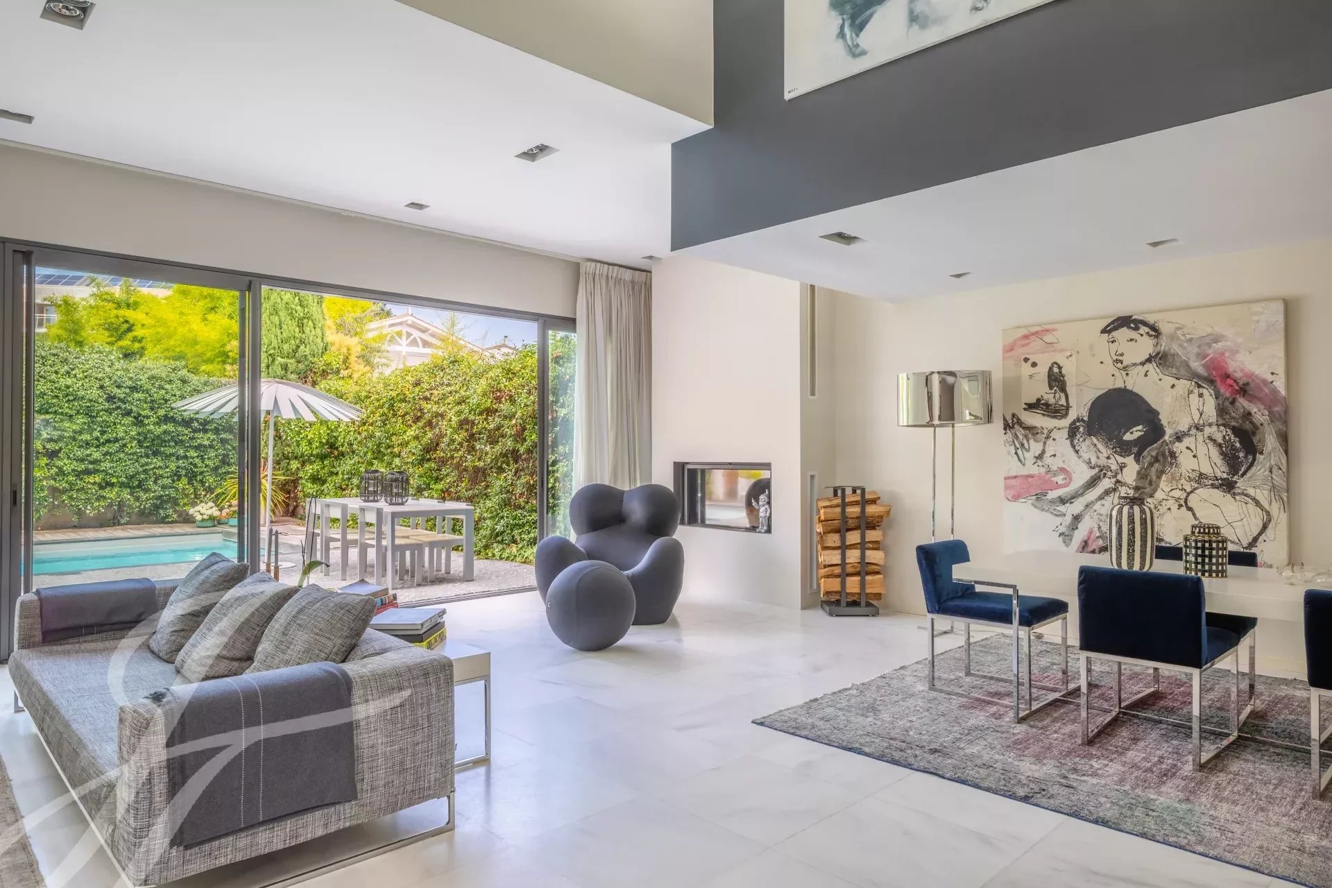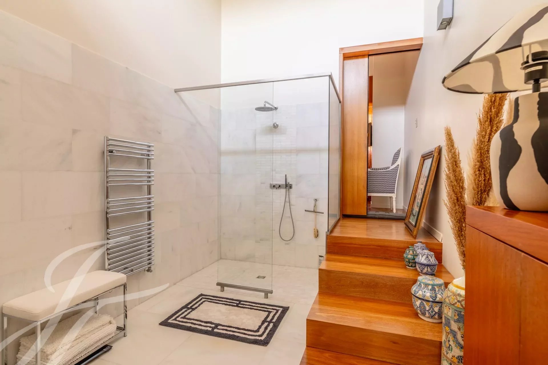 El interior es el resultado de una sutil mezcla de elegancia y sobriedad, con materiales nobles como el mármol y la madera, y presenta volúmenes impactantes como el amplio salón de 90 m2. Una gran cocina equipada completa este primer nivel. El salón catedral ofrece una vista increíble de la primera planta, donde se encuentran los dormitorios, con 4 habitaciones y una generosa suite principal. Esta última cuenta con un hermoso vestidor, donde la carpintería de calidad ha sido diseñada a medida. Un estudio, un cuarto de baño, 2 aseos con ducha y una sala de juegos o de cine aumentan el confort cotidiano.