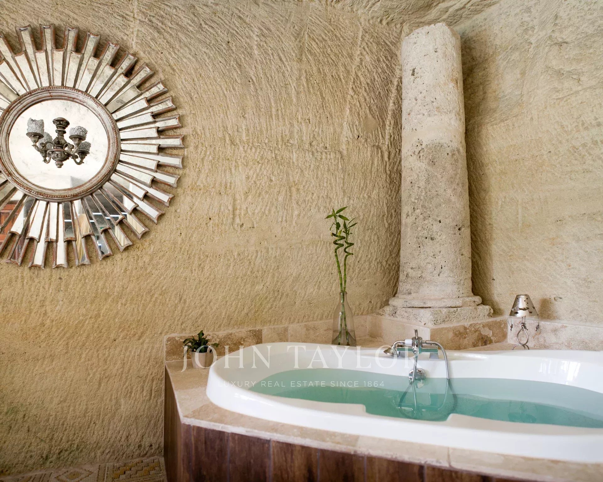 La antigua capilla se ha transformado en una sala de recepción, con una superficie de más de 100 m, y se encuentra junto a un spa profesional ubicado en un anfiteatro. Este remanso de paz incluye 3 salas de masajes, un jacuzzi, un hammam y una piscina exterior climatizada, todo excavado en la roca, que ofrece una experiencia inolvidable.