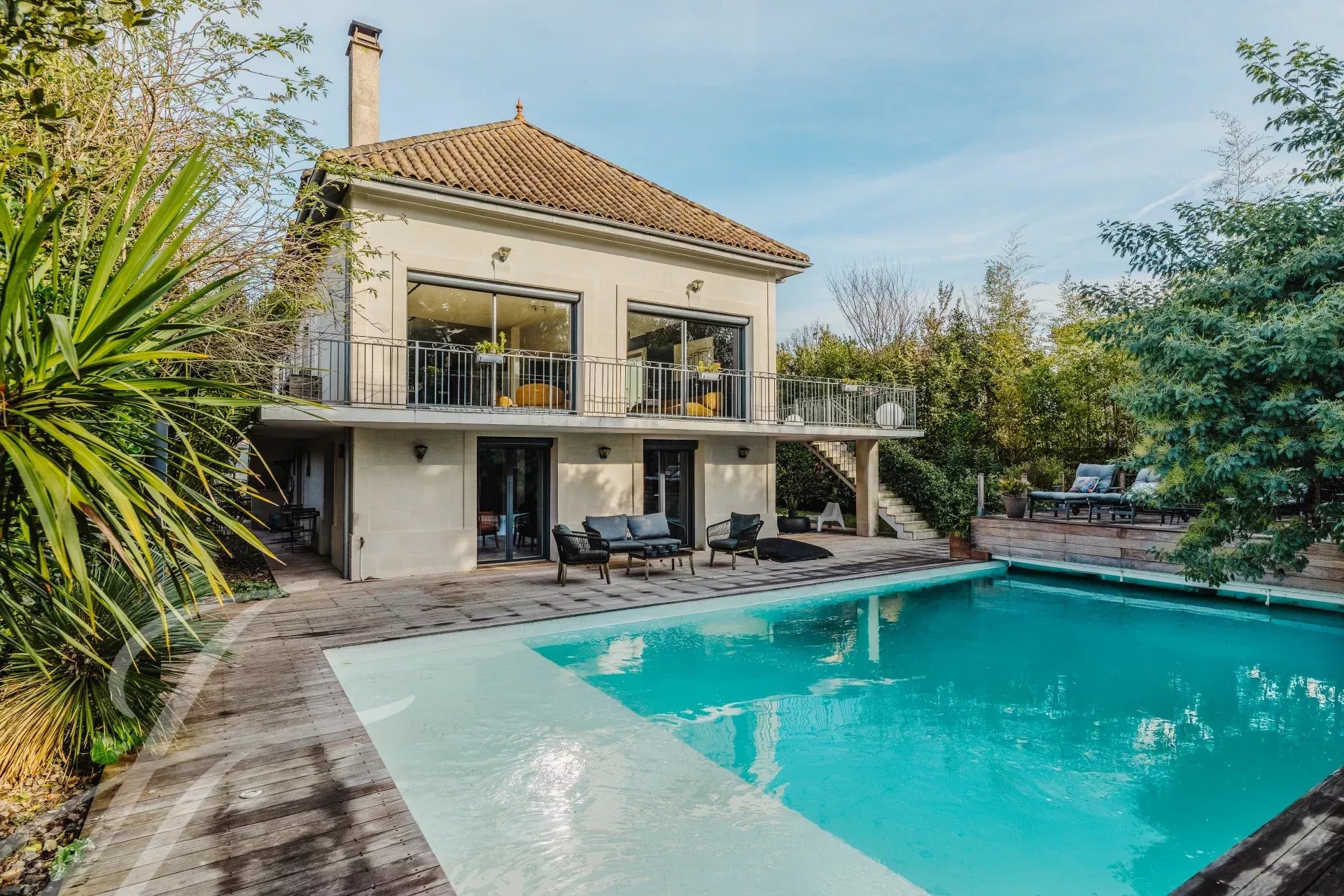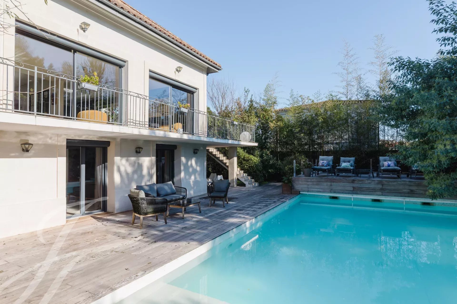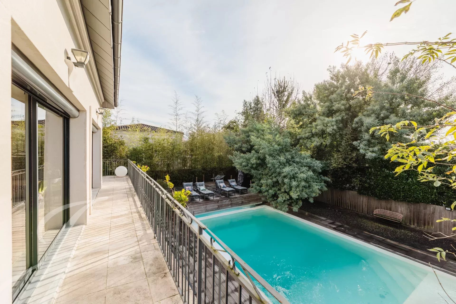En el exterior, la casa presenta una hermosa piscina y un spa, perfectos para relajarse o entretener a los invitados. Estos espacios permiten disfrutar del verano en un entorno tranquilo y confortable. Esta propiedad es una joya en Mérignac, ofreciendo un estilo de vida lujoso en la región de Aquitania.
