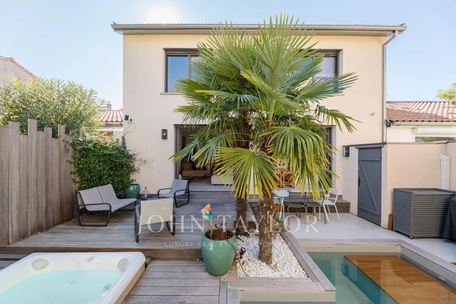 En la esquina de la Place Nansouty, en una calle discreta, esta magnífica tienda doble ha sido completamente renovado con gran cuidado. Dispone de un bonito jardín paisajista sin vecinos, piscina climatizada y jacuzzi. Aparcamiento para coches y motos en un parking vigilado a 150 metros a pie.