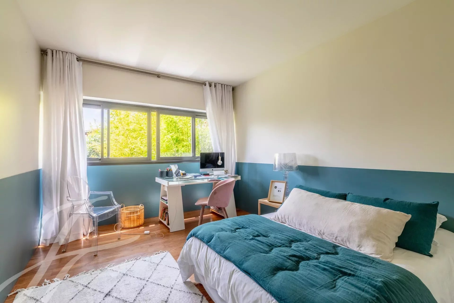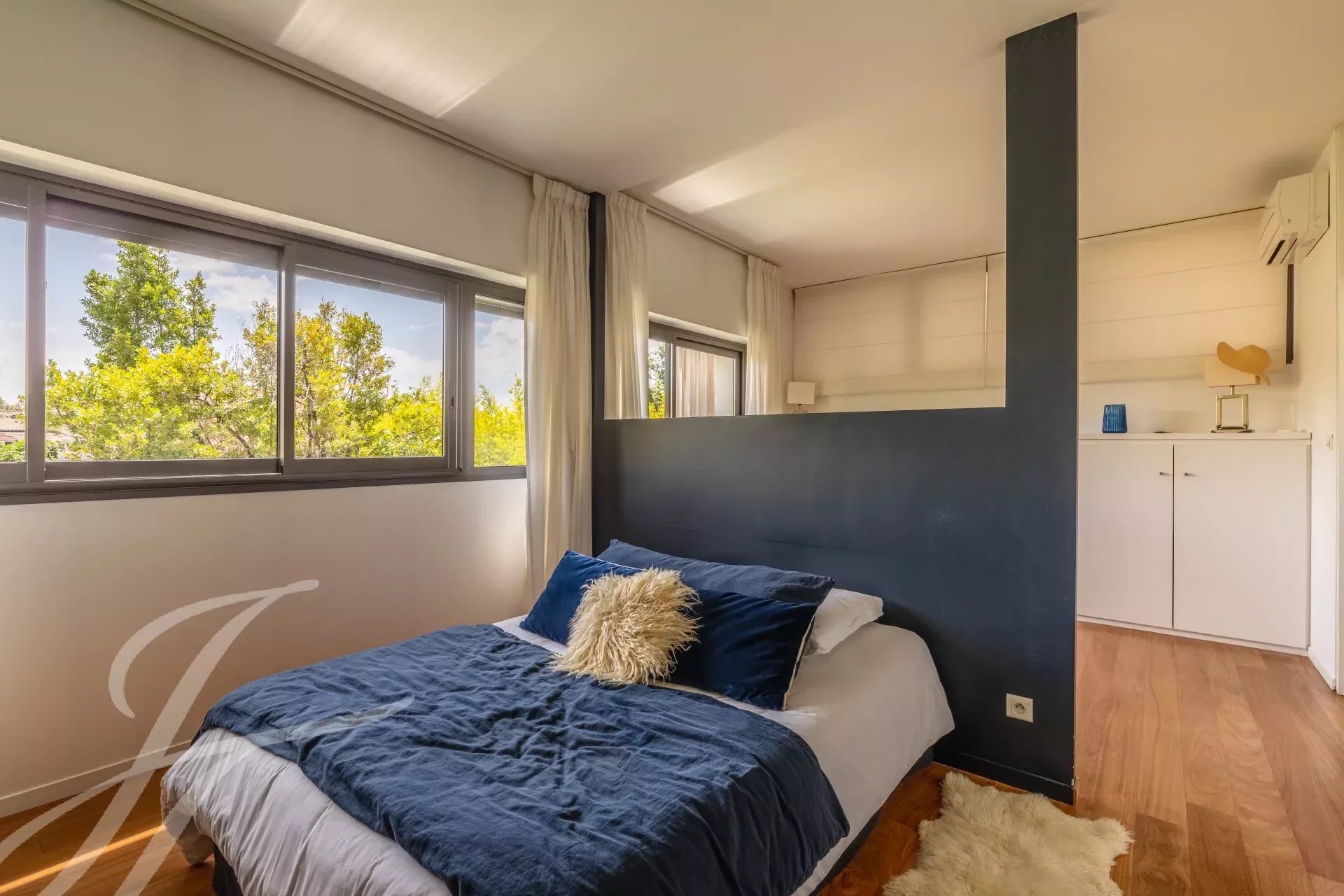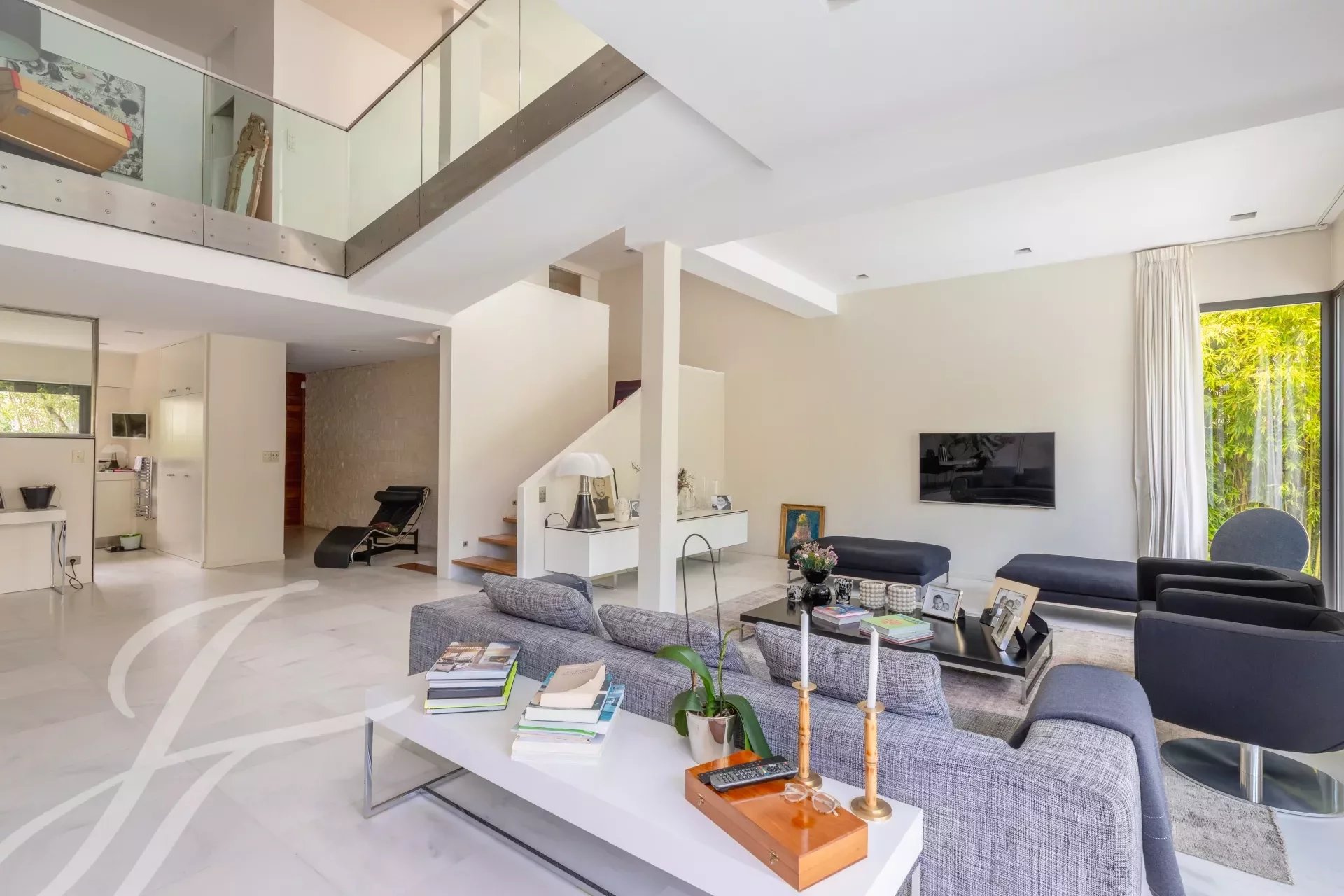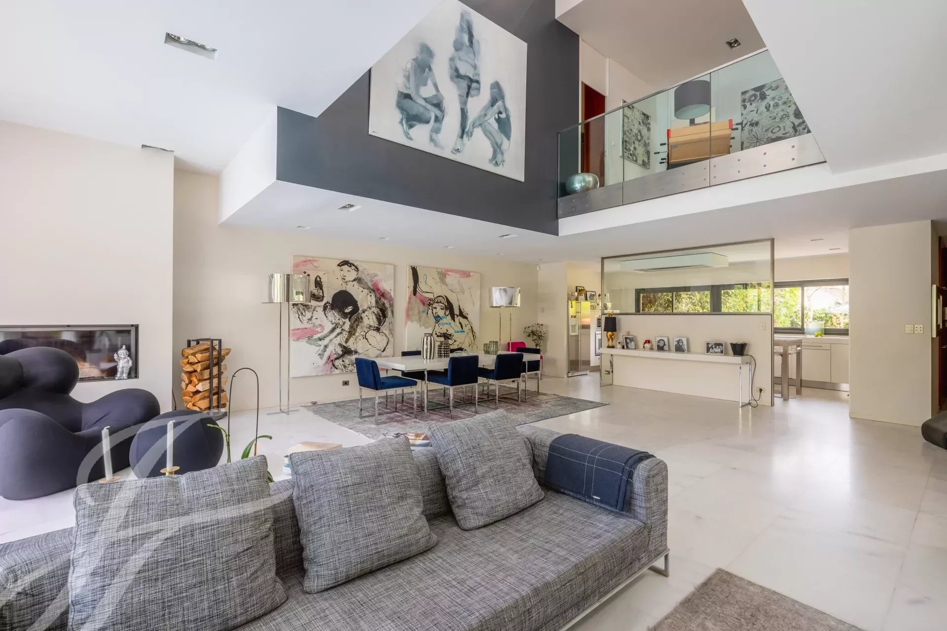 El interior es el resultado de una sutil mezcla de elegancia y sobriedad, con materiales nobles como el mármol y la madera, y presenta volúmenes impactantes como el amplio salón de 90 m2. Una gran cocina equipada completa este primer nivel. El salón catedral ofrece una vista increíble de la primera planta, donde se encuentran los dormitorios, con 4 habitaciones y una generosa suite principal. Esta última cuenta con un hermoso vestidor, donde la carpintería de calidad ha sido diseñada a medida. Un estudio, un cuarto de baño, 2 aseos con ducha y una sala de juegos o de cine aumentan el confort cotidiano.