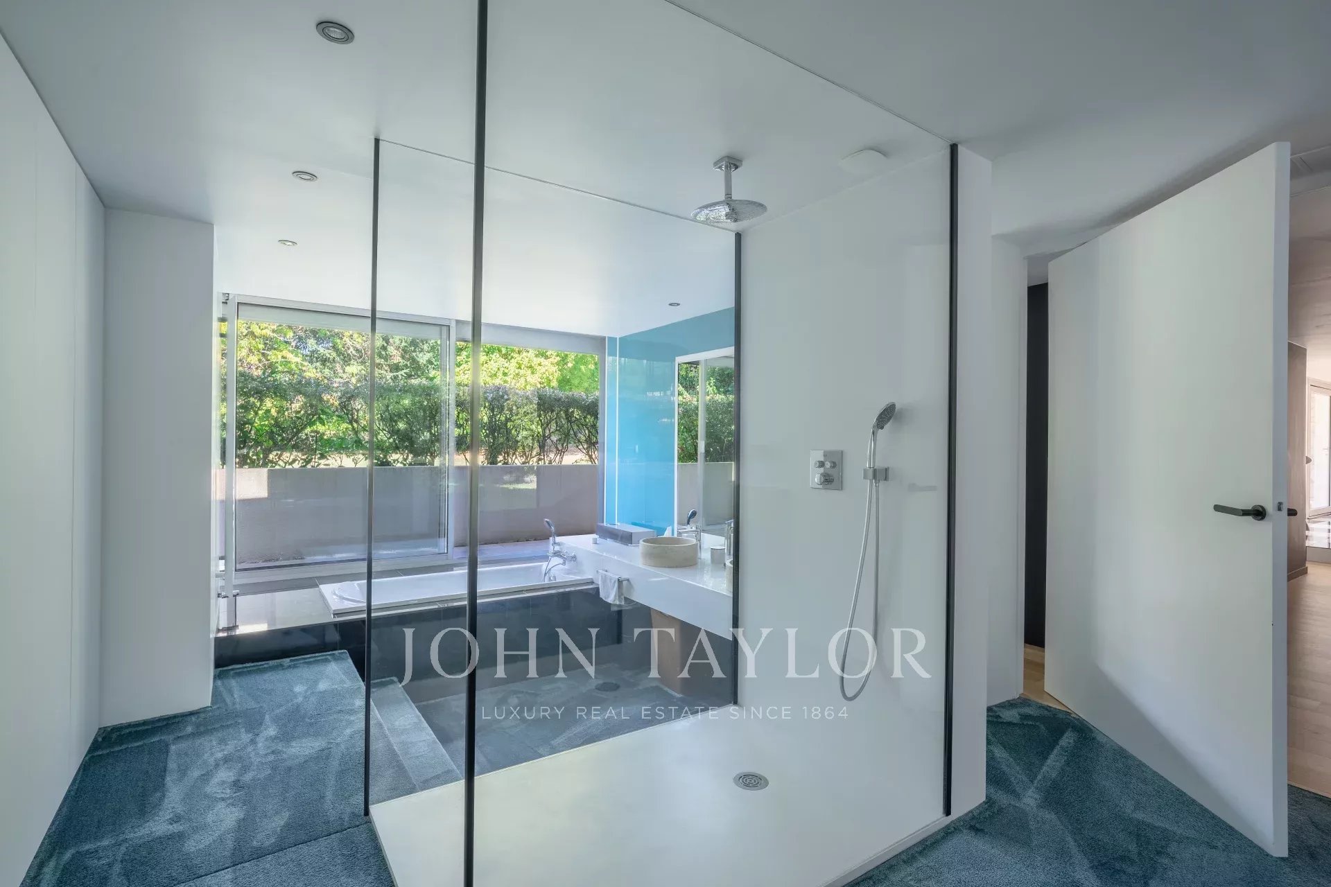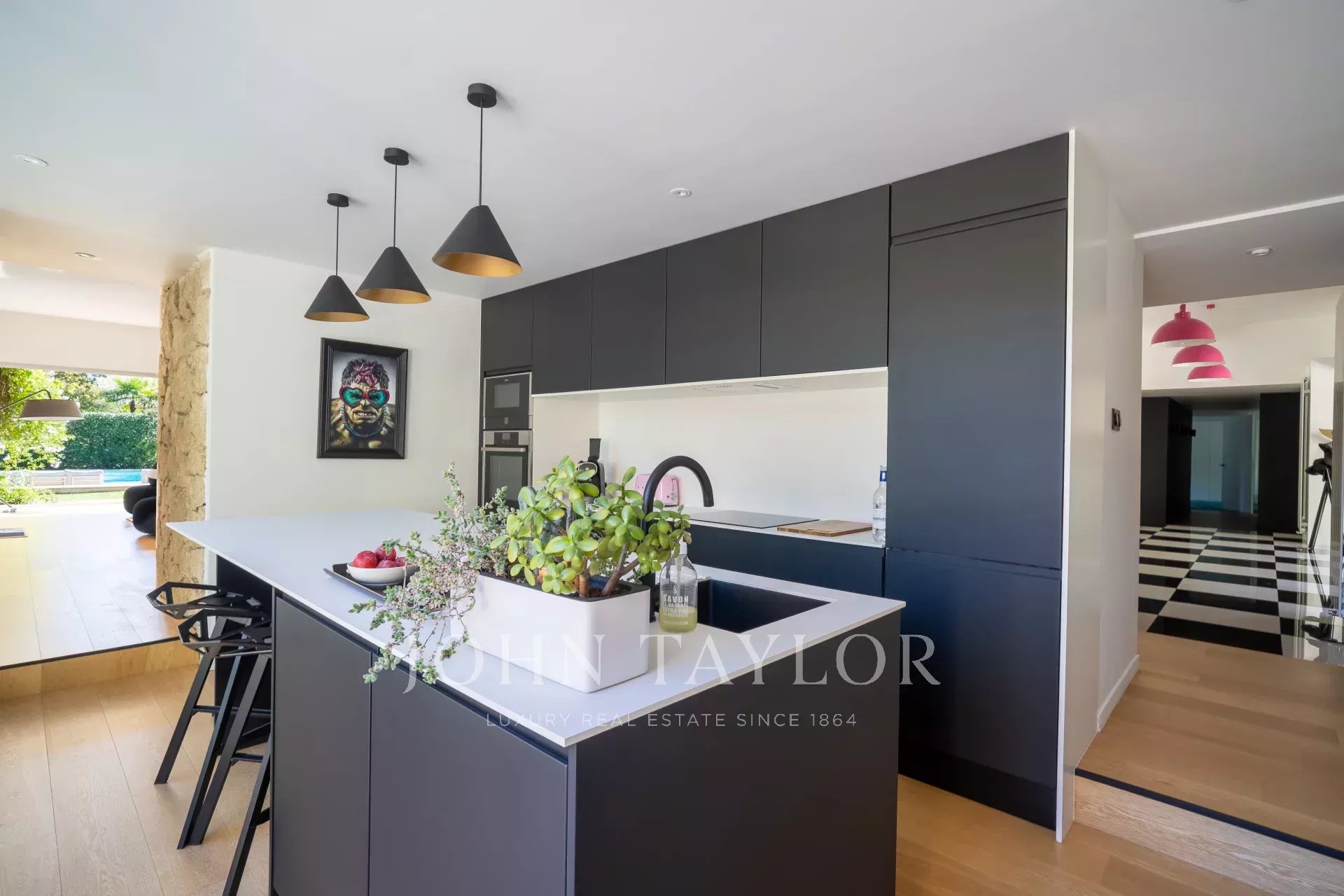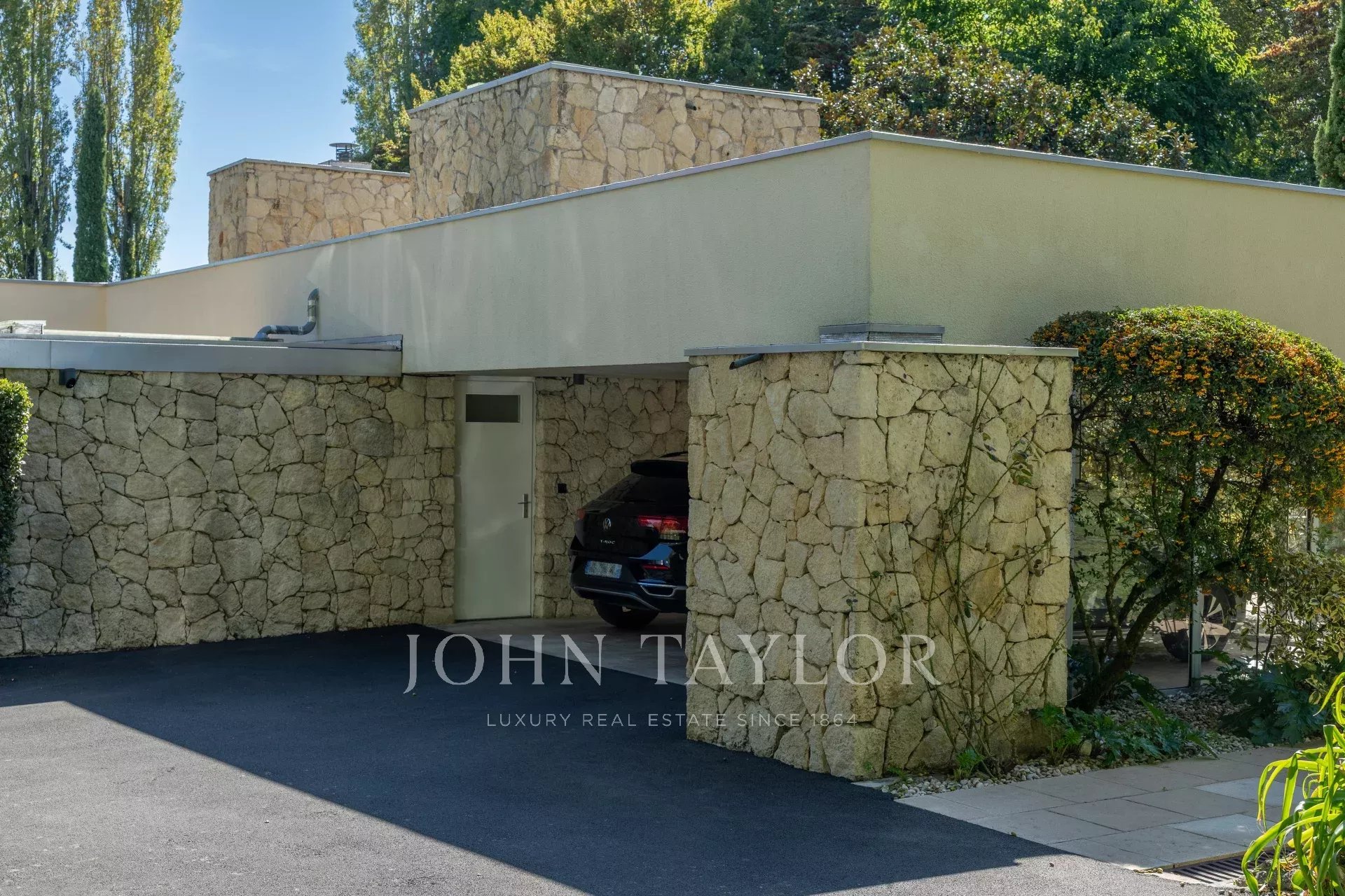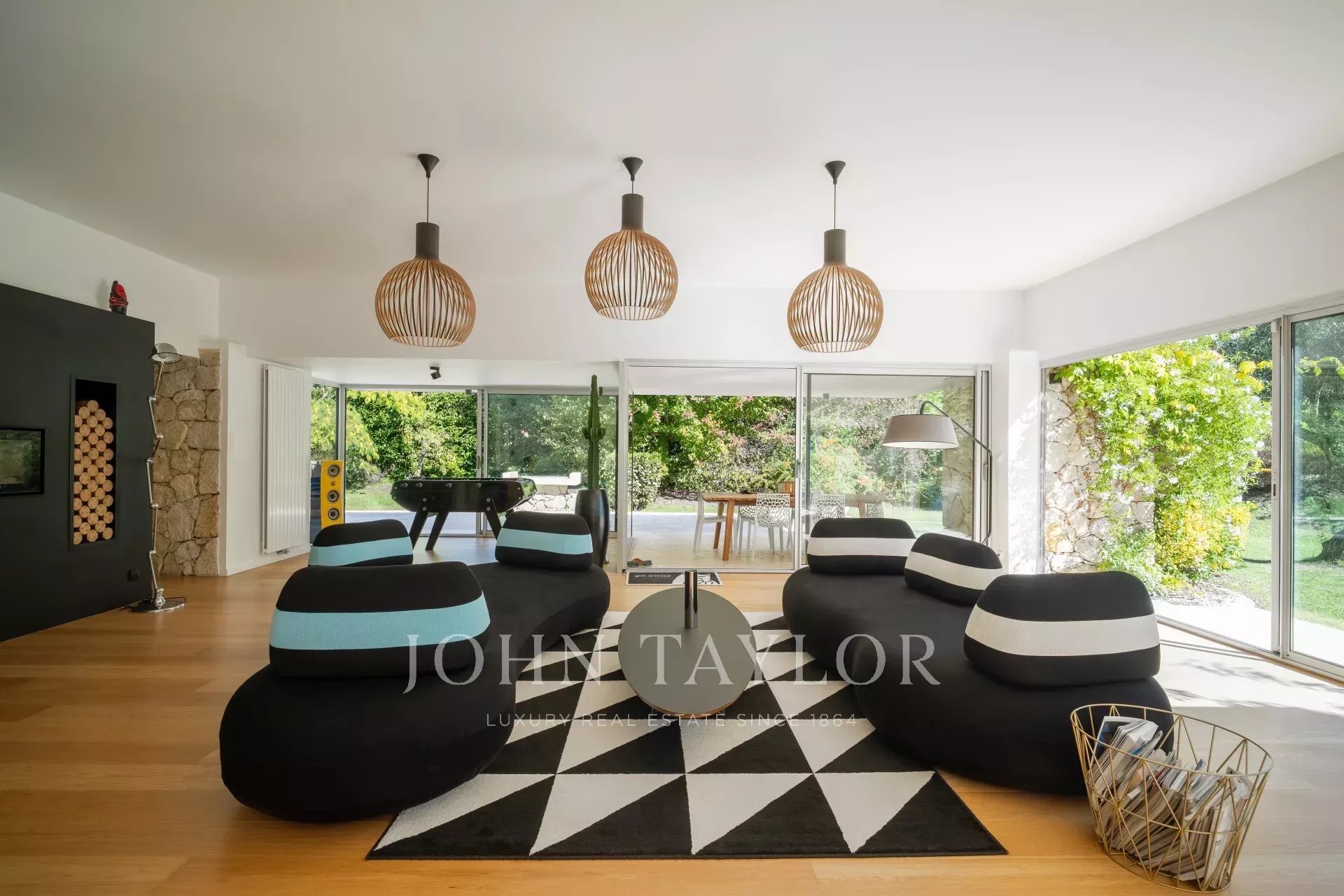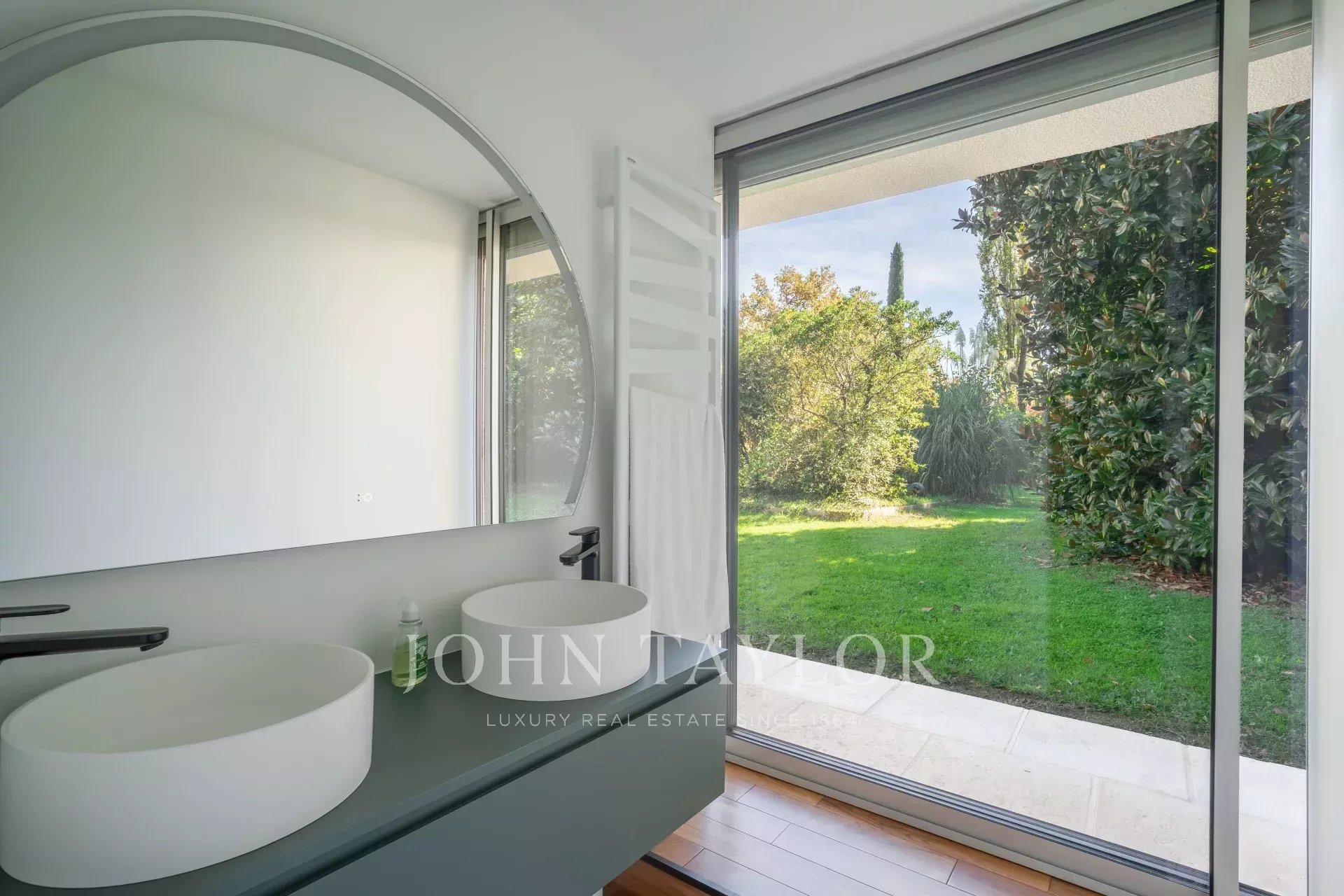 Ubicada en un entorno verde y exuberante en Gradignan, esta residencia contemporánea de los años 70 ofrece una superficie habitable de 270 m². Fue completamente renovada en 2022 con acabados de alta gama, combinando diseño moderno y materiales nobles de manera armoniosa.
