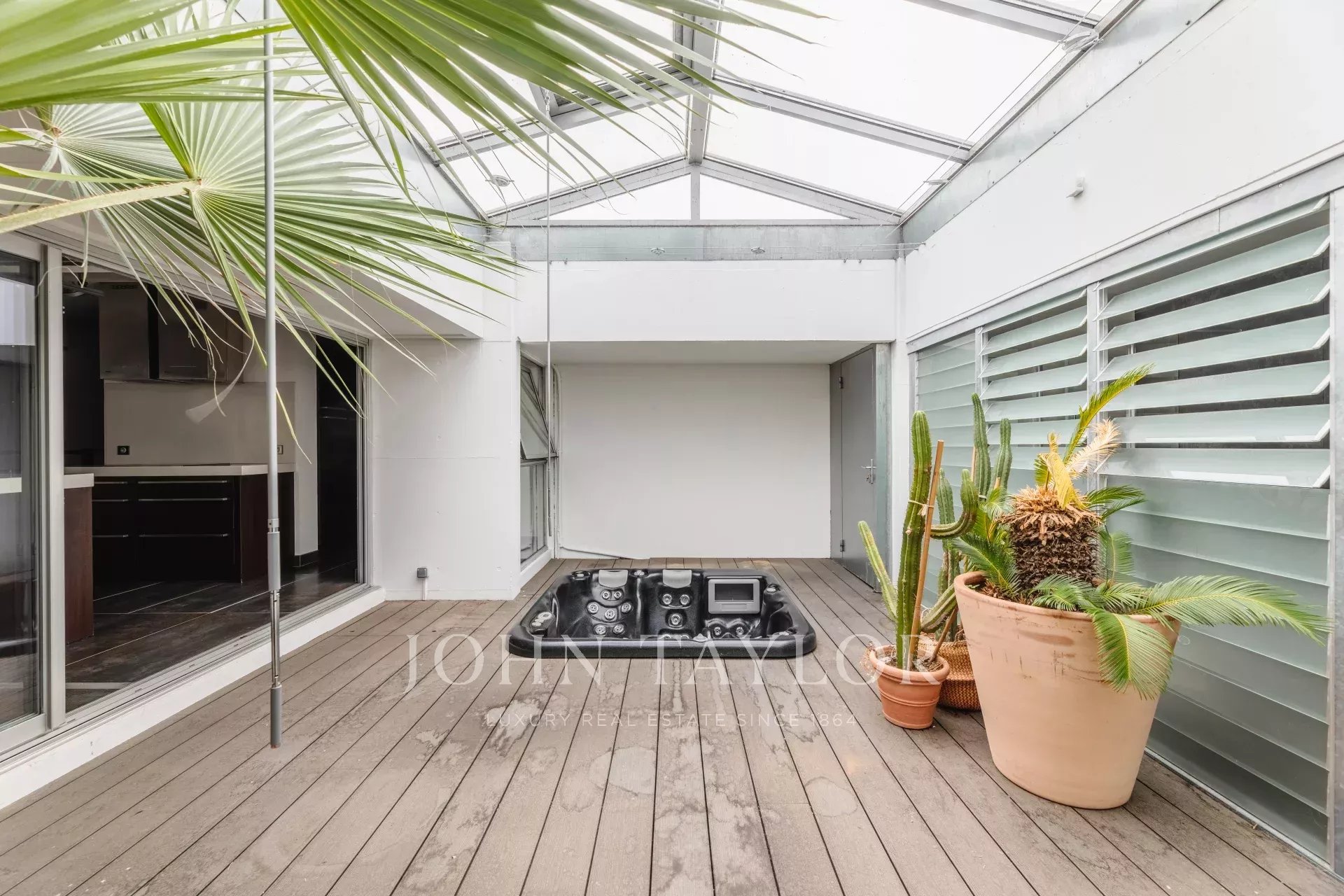 Los grandes ventanales que enmarcan todas las habitaciones de la planta baja fusionan a la perfección el interior con el exterior, mientras que un patio privado con jacuzzi añade un toque de lujo y privacidad a su rutina diaria. Un gimnasio dedicado ofrece un espacio para cultivar el bienestar y la vitalidad.