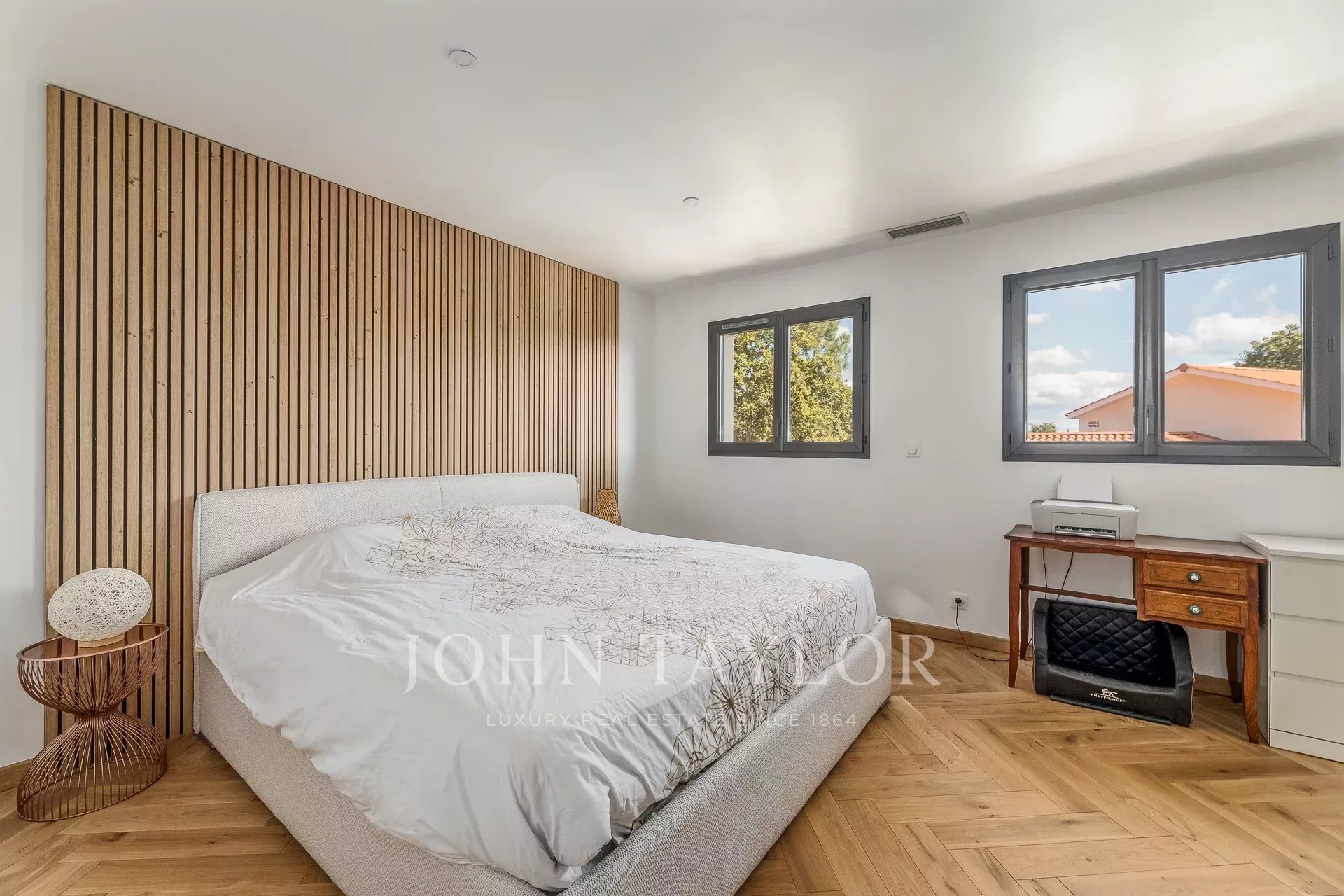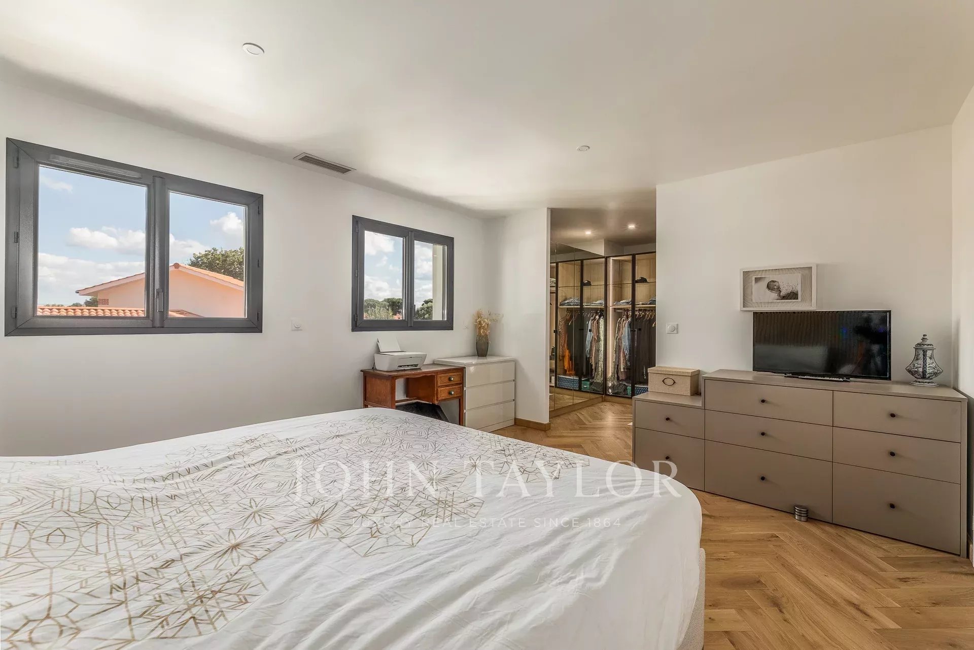 El exterior ha sido meticulosamente ajardinado e iluminado, con riego automático y un sistema de recuperación de agua. El jardín de recepción tiene espacio para tres coches. La piscina de agua salada, equipada con bañeras de hidromasaje, balneoterapia, sistema de filtración y ducha solar, invita a relajarse. Un cobertizo de jardín y una cocina de verano completan este espacio excepcional, ideal para una vida refinada y de convivencia.